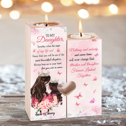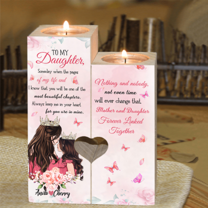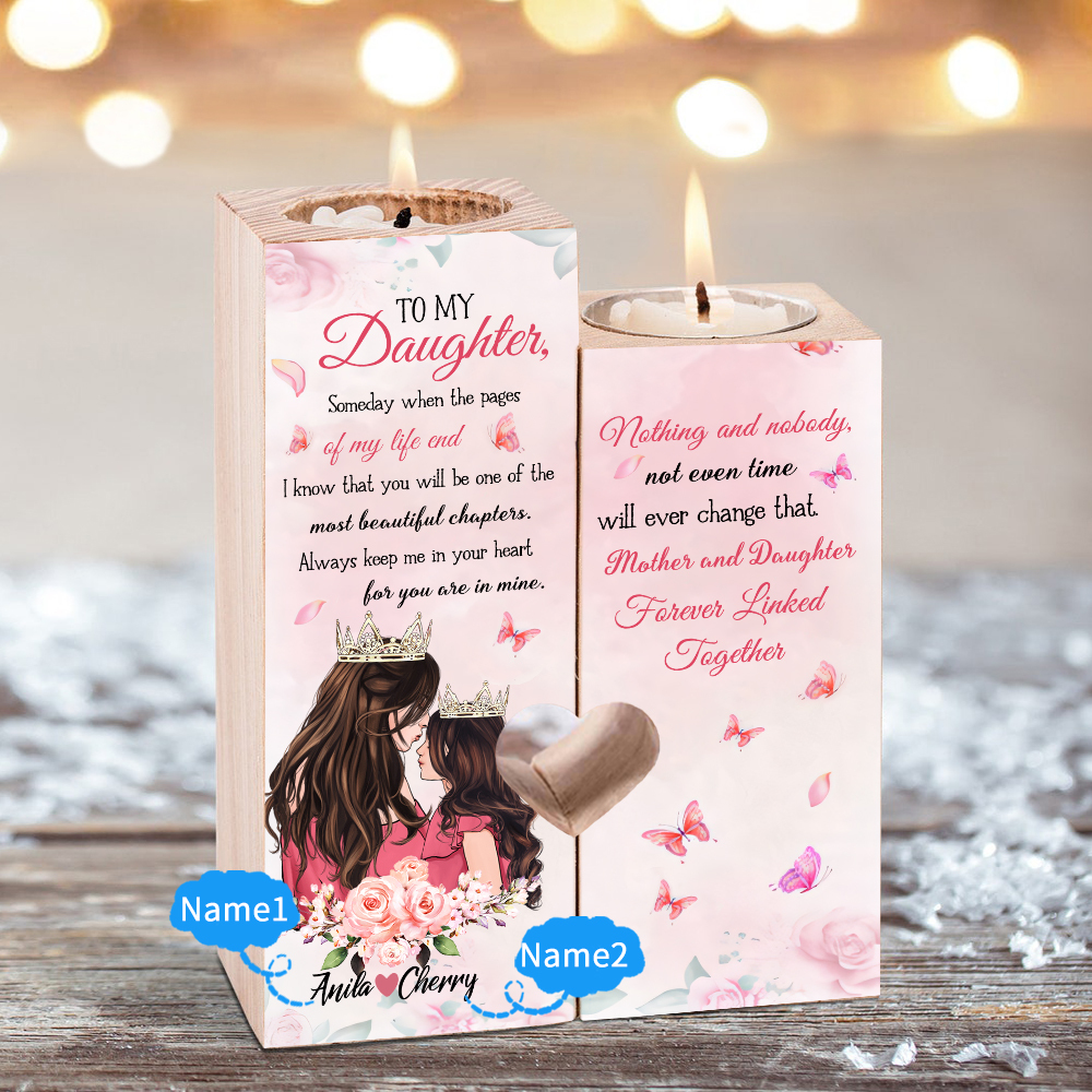 2 Names Personalised To My Daughter Candlesticks-Mother And Daughter Forever Linked Together-Wooden Custom Candle Holder For Daughter