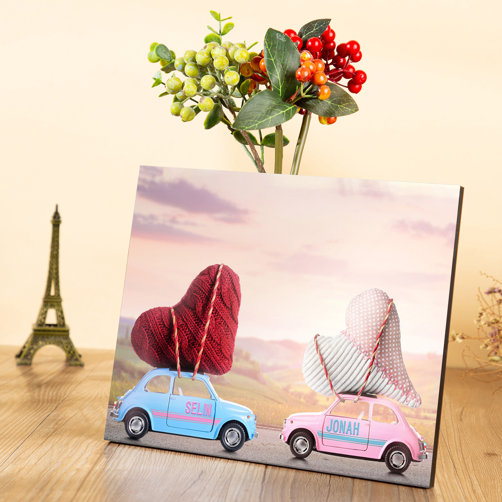 2 Names-Personalised Wooden Frame Car and Heart for Couple