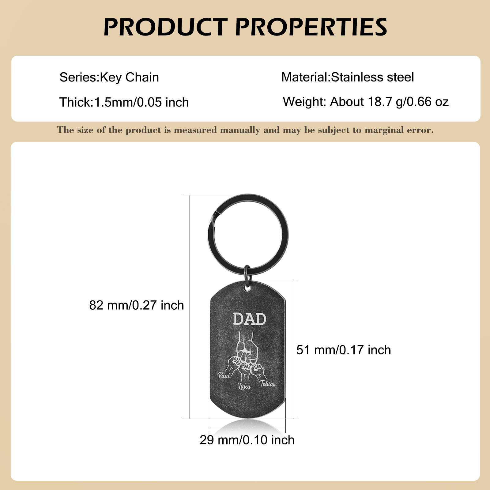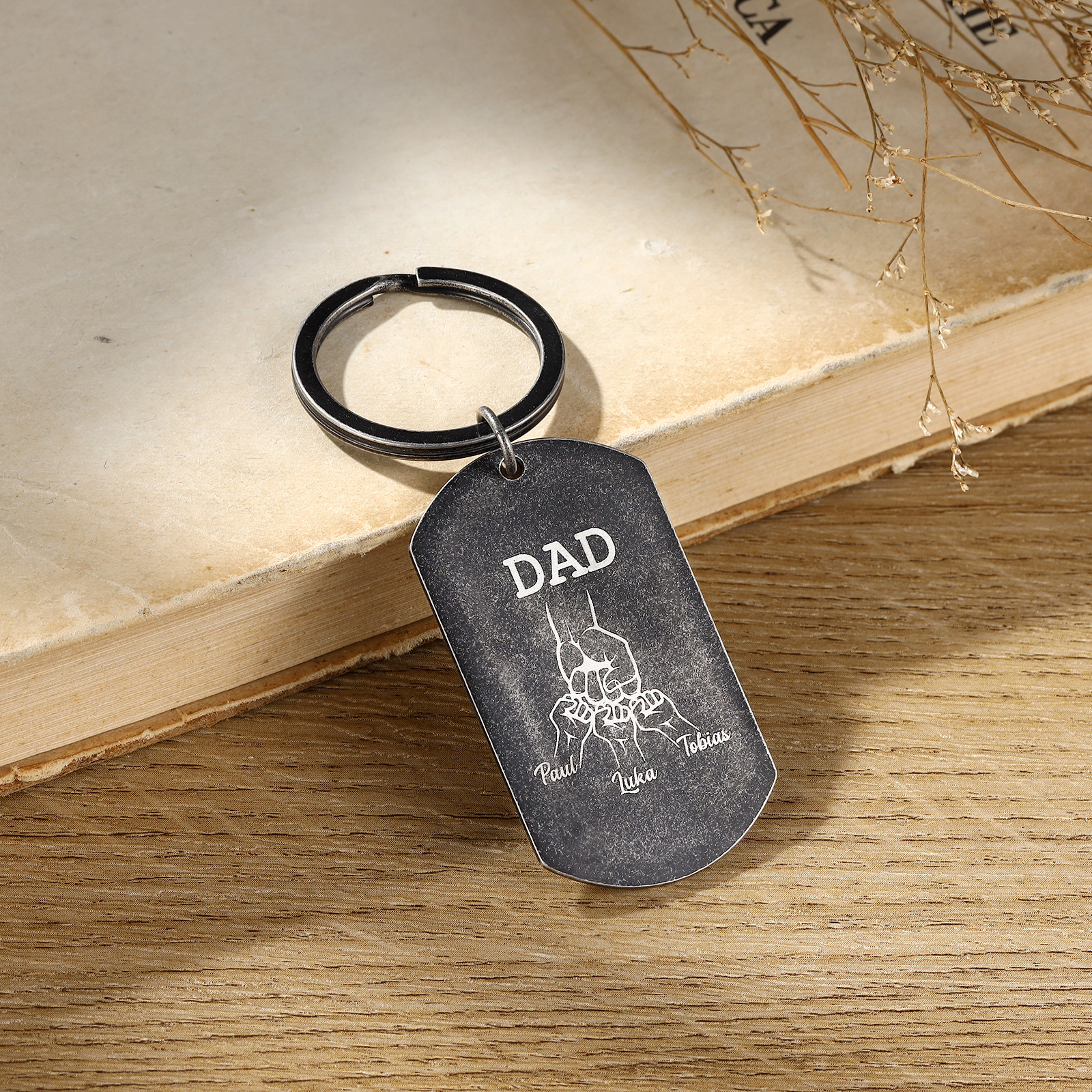 3 Kids' Names-Personalised Dad Fist Bump Keyring Custom Names And Text Gift For Dad