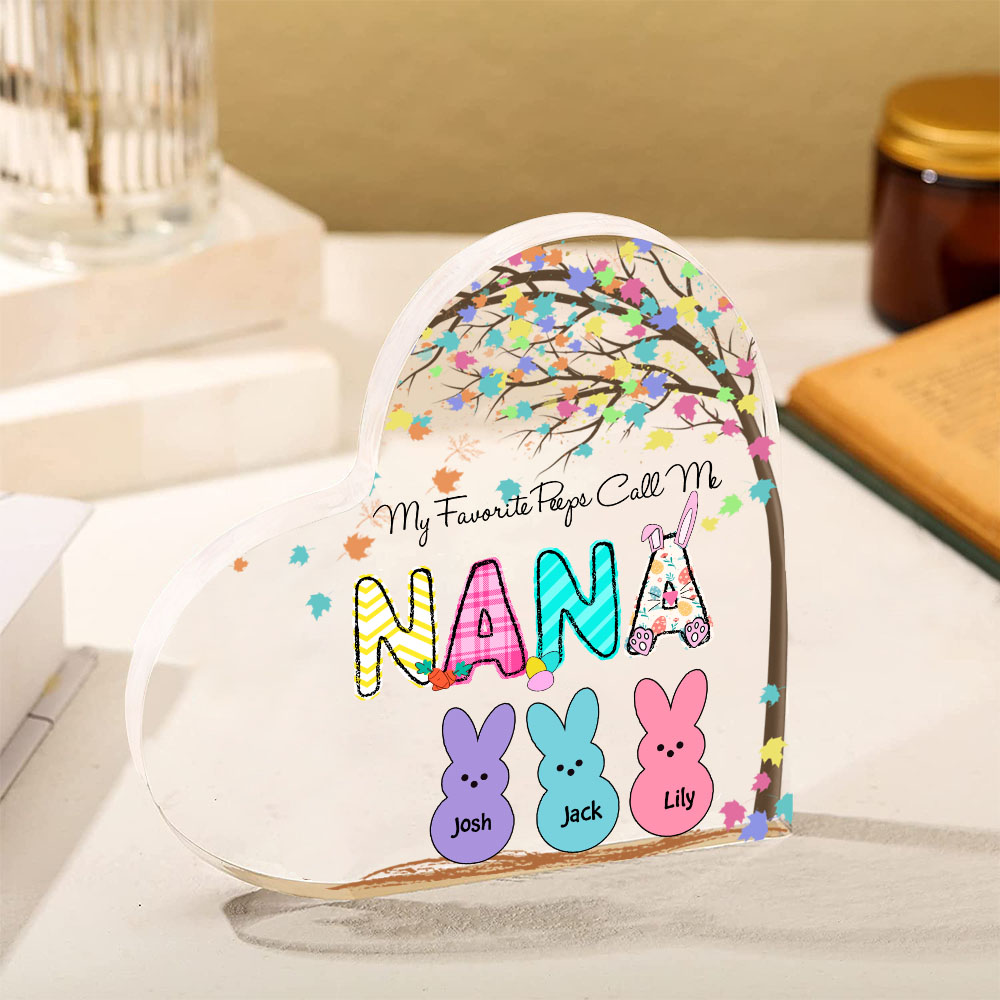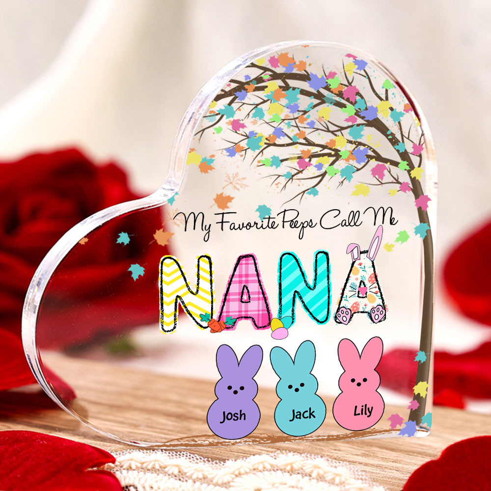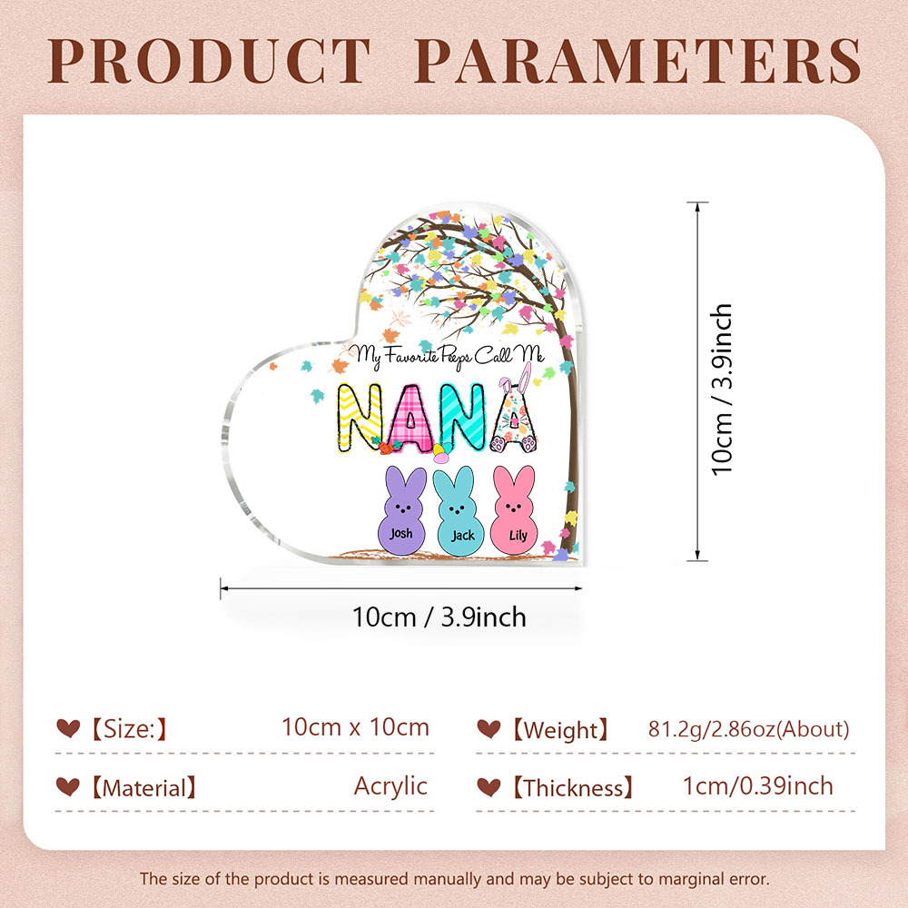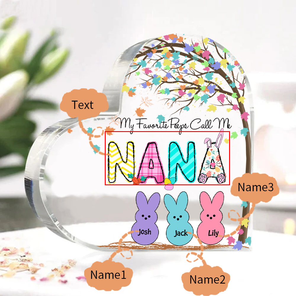 3 Names-Personalised Acrylic Heart Keepsake Custom Names Bunny Acrylic plaque Ornaments Gifts for Mum/Nan/Nana