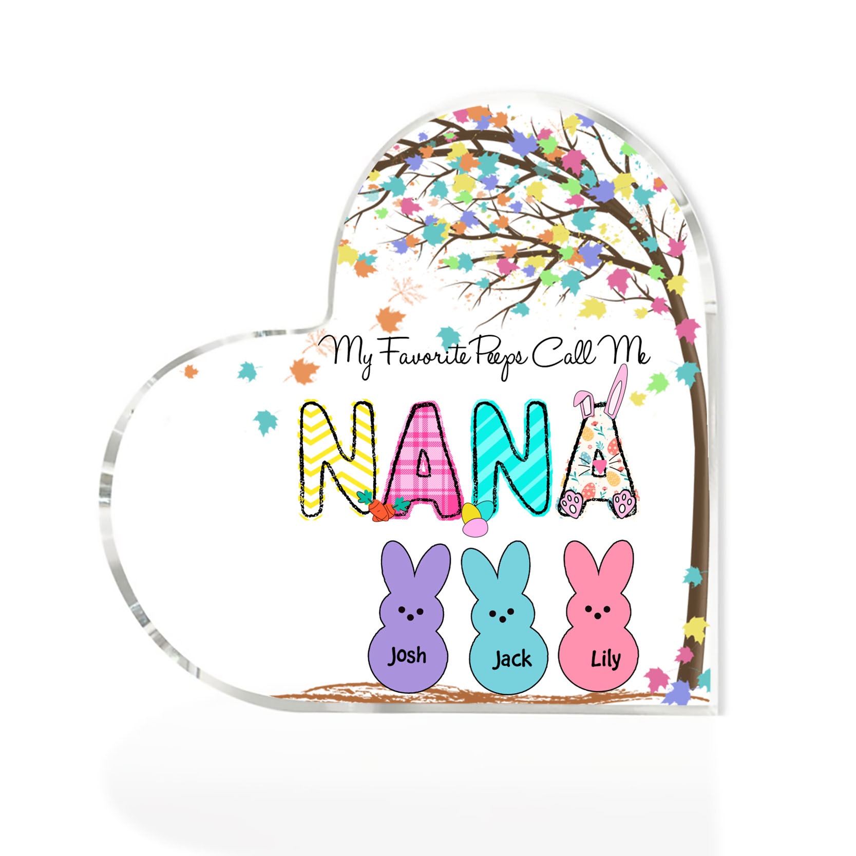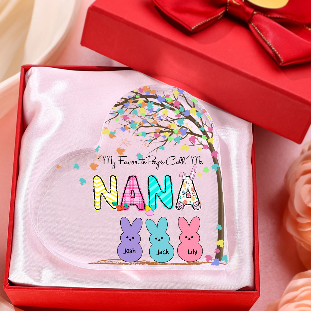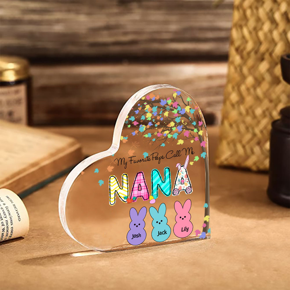3 Names-Personalised Acrylic Heart Keepsake Custom Names Bunny Acrylic plaque Ornaments Gifts for Mum/Nan/Nana