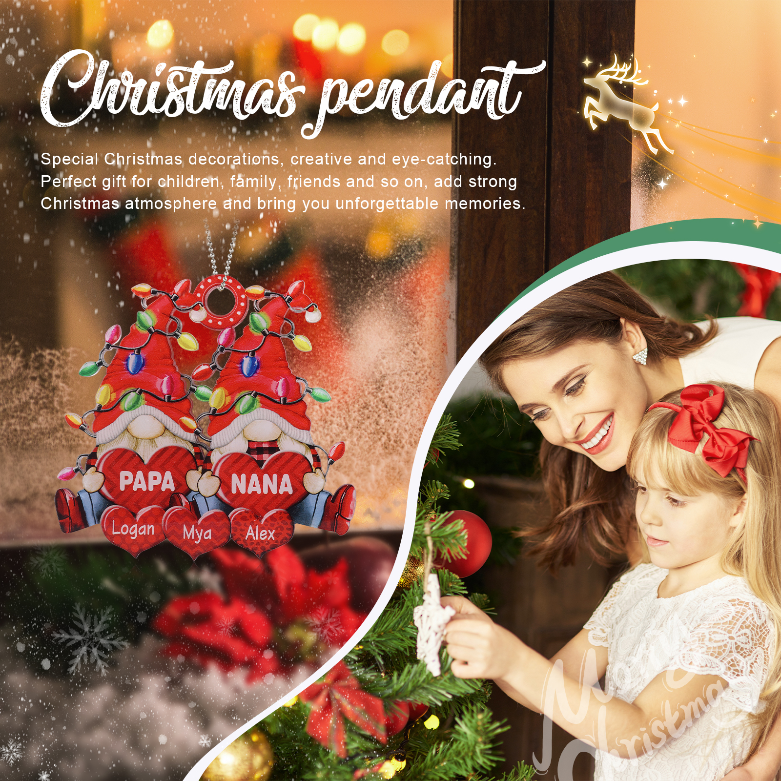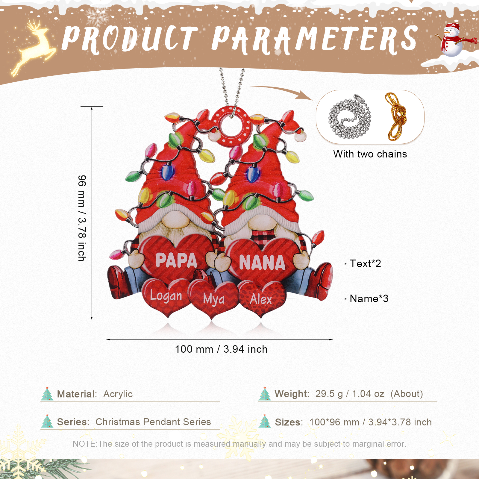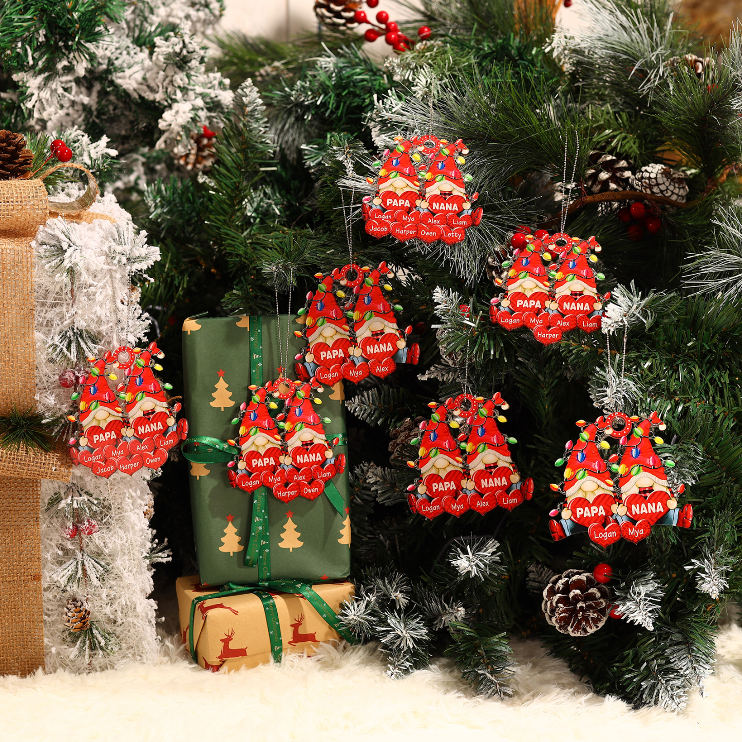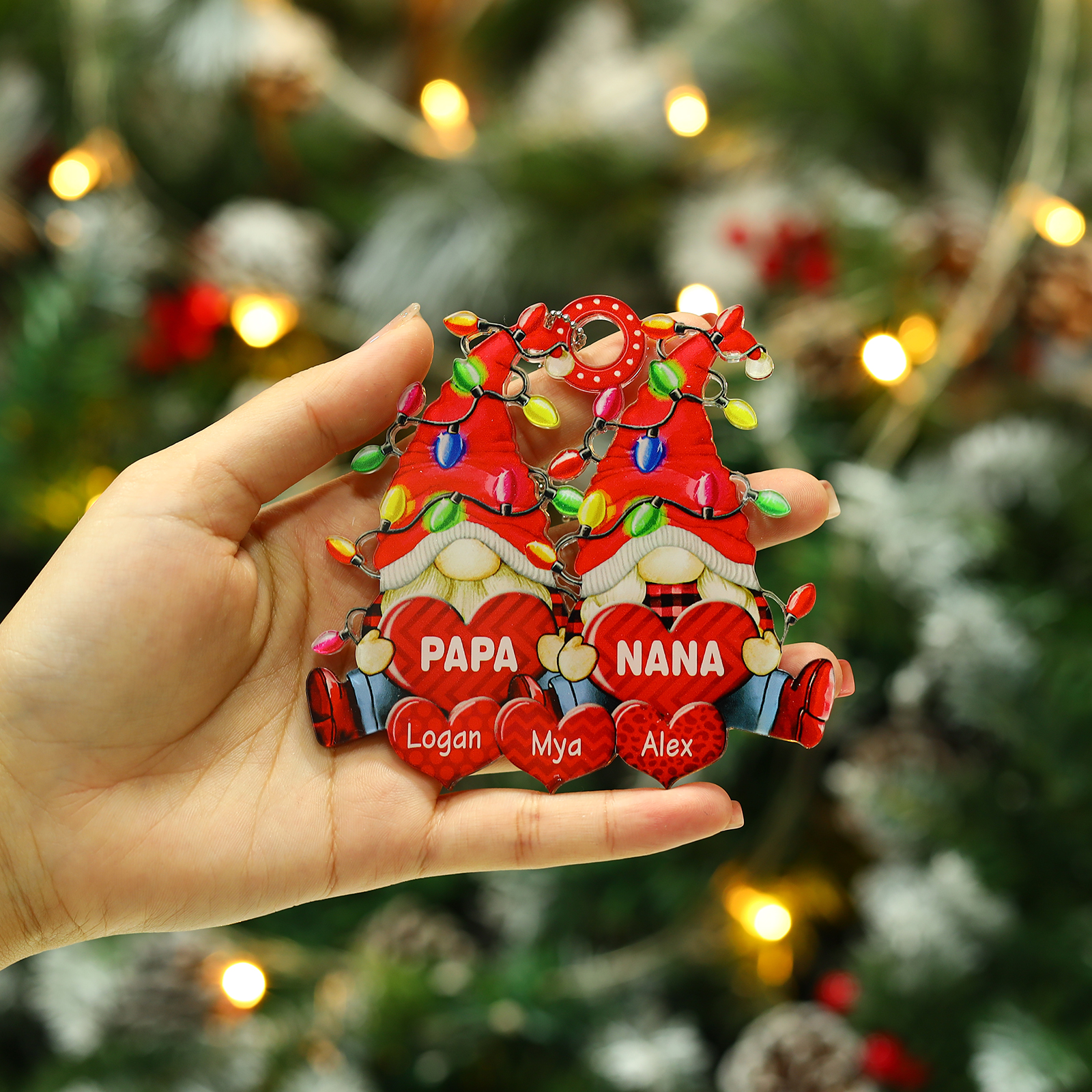 🎁Made of acrylic material, 2-8 names can be customized. The names of each family member are written on the hearts, the personalized texts can be written on it. This is a great Christmas gift for the family.