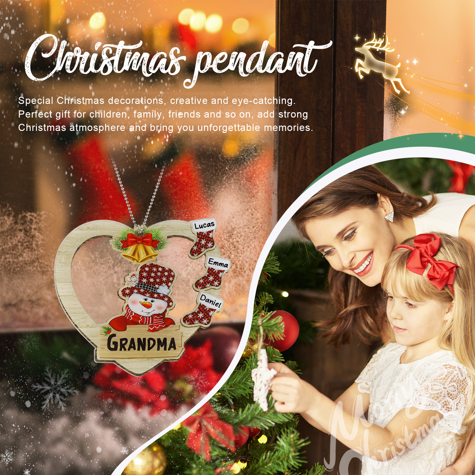 3 Names-Personalised Family Acrylic Heart Christmas Xmas Tree Decoration Ornament-Custom 3 Names And Text Hanging Ornament Gifts For Family