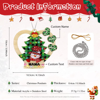 3 Names-Personalised Family Acrylic Heart Christmas Xmas Tree Decoration Ornament-Custom 3 Names And Text Hanging Ornament Gifts For Family