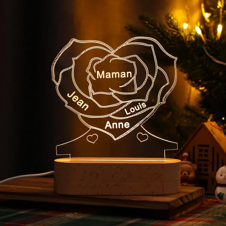 3 Names-Personalised Family Flower Acrylic Night Light, Custom Name and Text Lamp Christmas Gifts