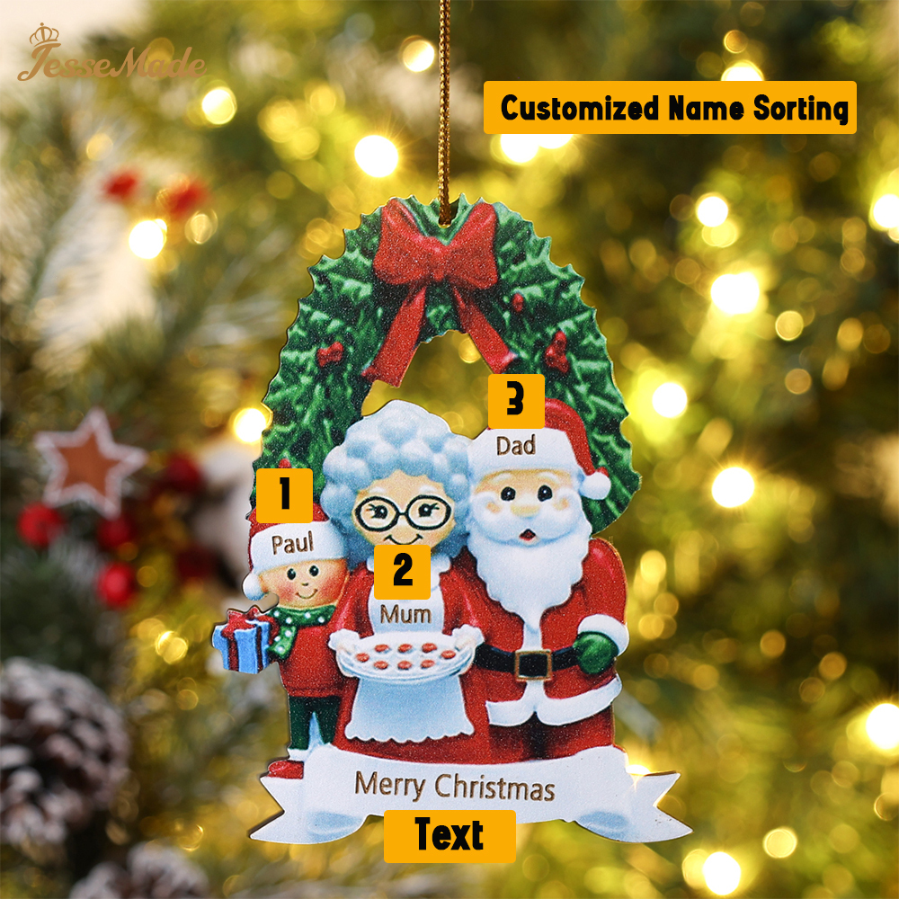 3 Names-Personalised Family Wooden Christmas Xmas Tree Decoration Ornament-Custom 3 Names Hanging Ornament Gifts For Family