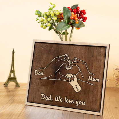 3 Names -Personalised Home Frame Heart Handshake Style Wooden Ornament Home Decor For Dad