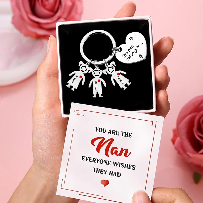 3 Names Personalised Kid Charm Keyring Heart Shaped Tag This Nan Belongs to Engrave Special Gift Set With Gift Box For Grandmother