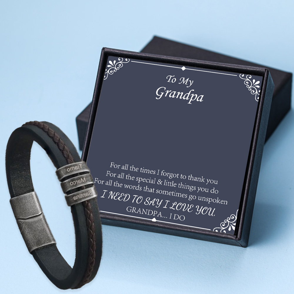 3 Names-Personalised To My Grandpa Bracelet Set With Gift Card Gift Box-Custom 3 Names PU Leather Braided Men's Bracelet For Grandpa