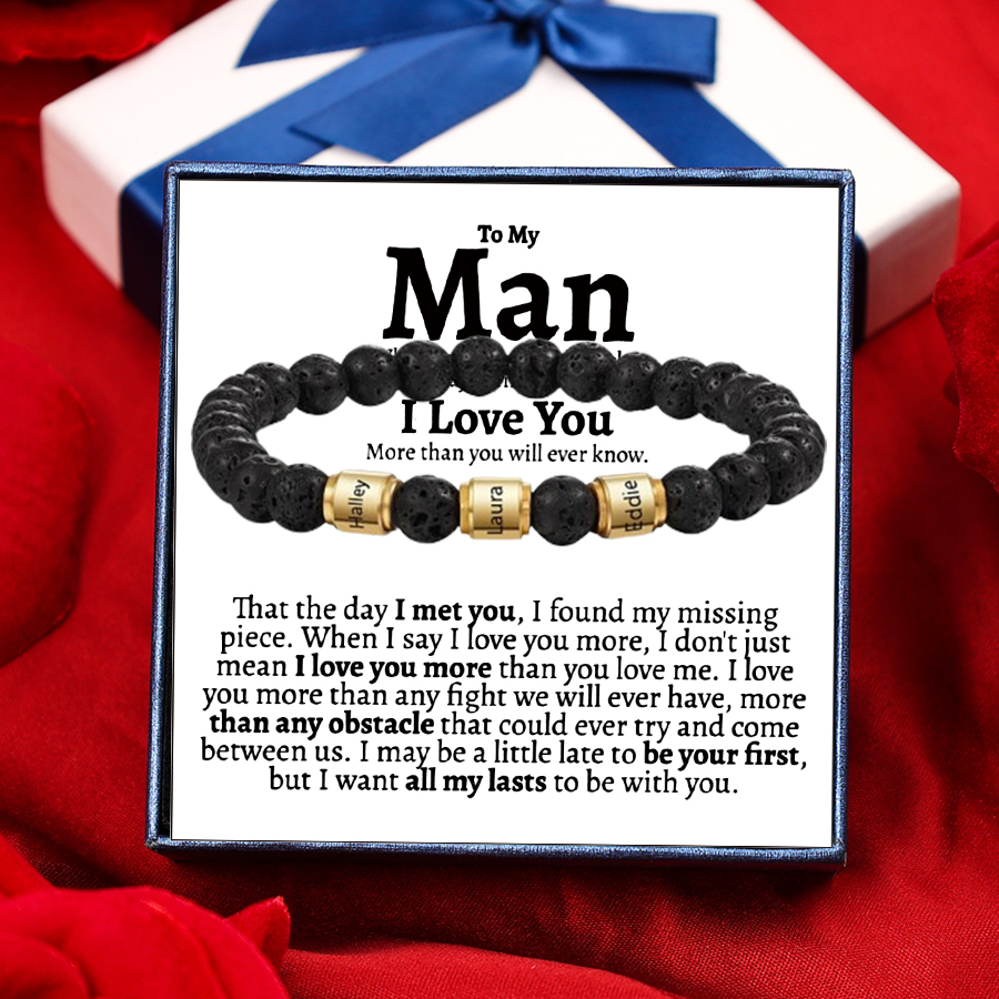 3 Names-Personalised To My Man Bracelet Set With Gift Card Gift Box-Custom Men's Bracelet Engraved Names Personalised Gift for Him