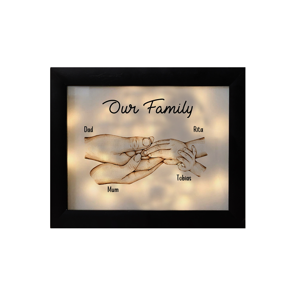 4 Names-Personalised Family Hold Hands Frame Custom 4 Names And Text LED Night Light
