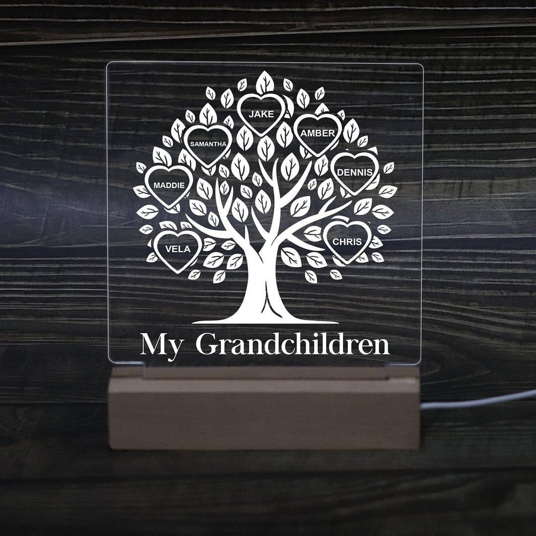 4 Names-Personalised Family Tree Acrylic Night Light, Custom Name and Text Lamp Gifts