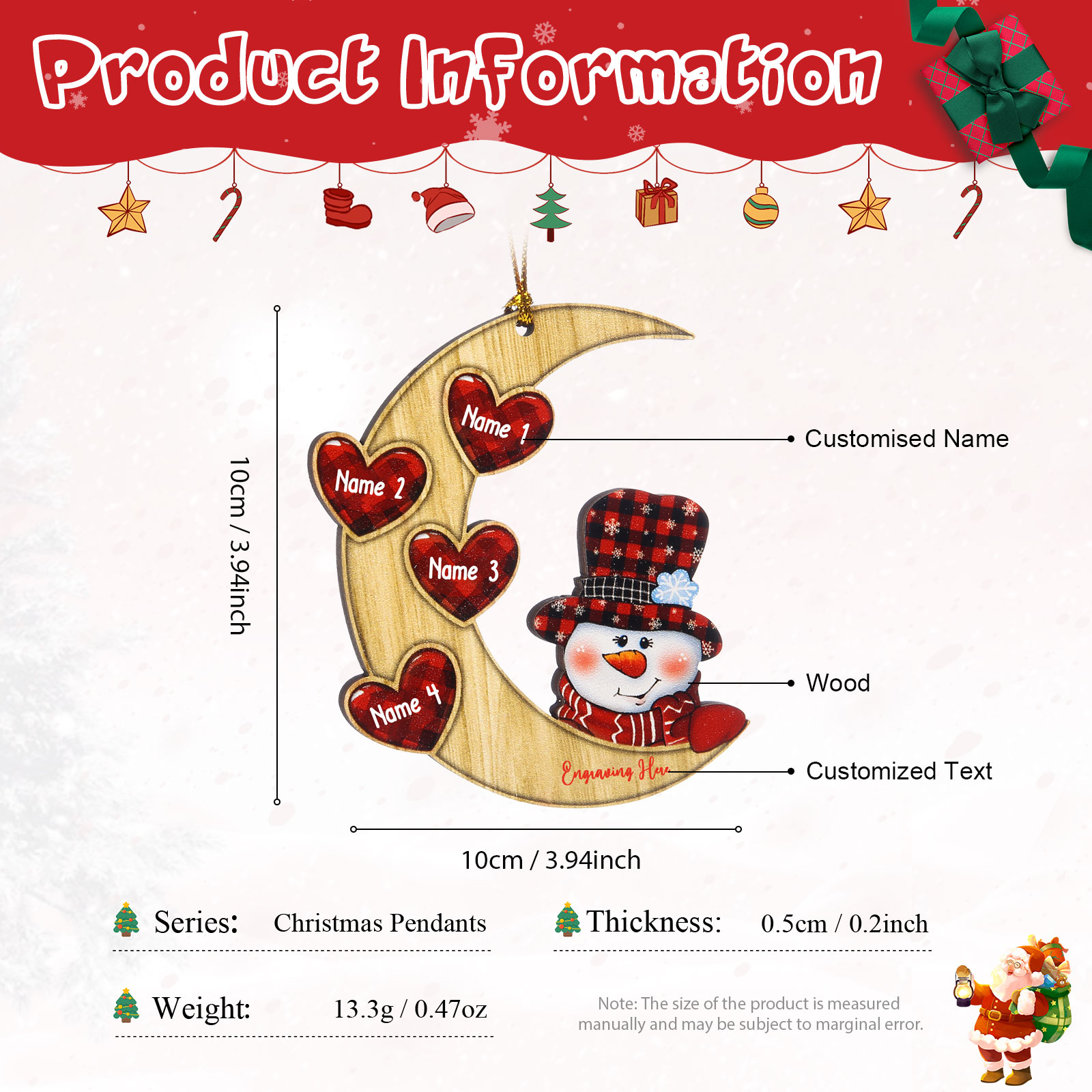 🎁Made of wooden material, 2-5 names and text can be customized, The names of each family member are written on the moon, and a text can be written on the following. This is a great Christmas gift for the family.