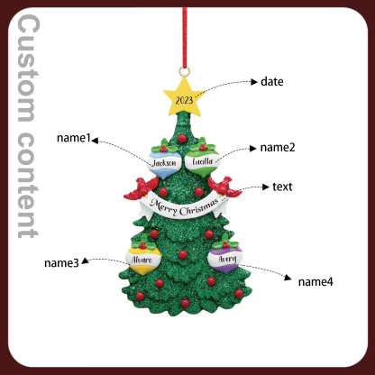 4 Names-Personalised Family Wooden Christmas Xmas Tree Decoration Ornament-Custom 4 Names And Text Hanging Ornament Gifts For Family