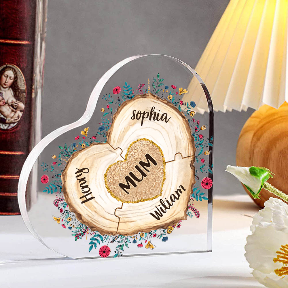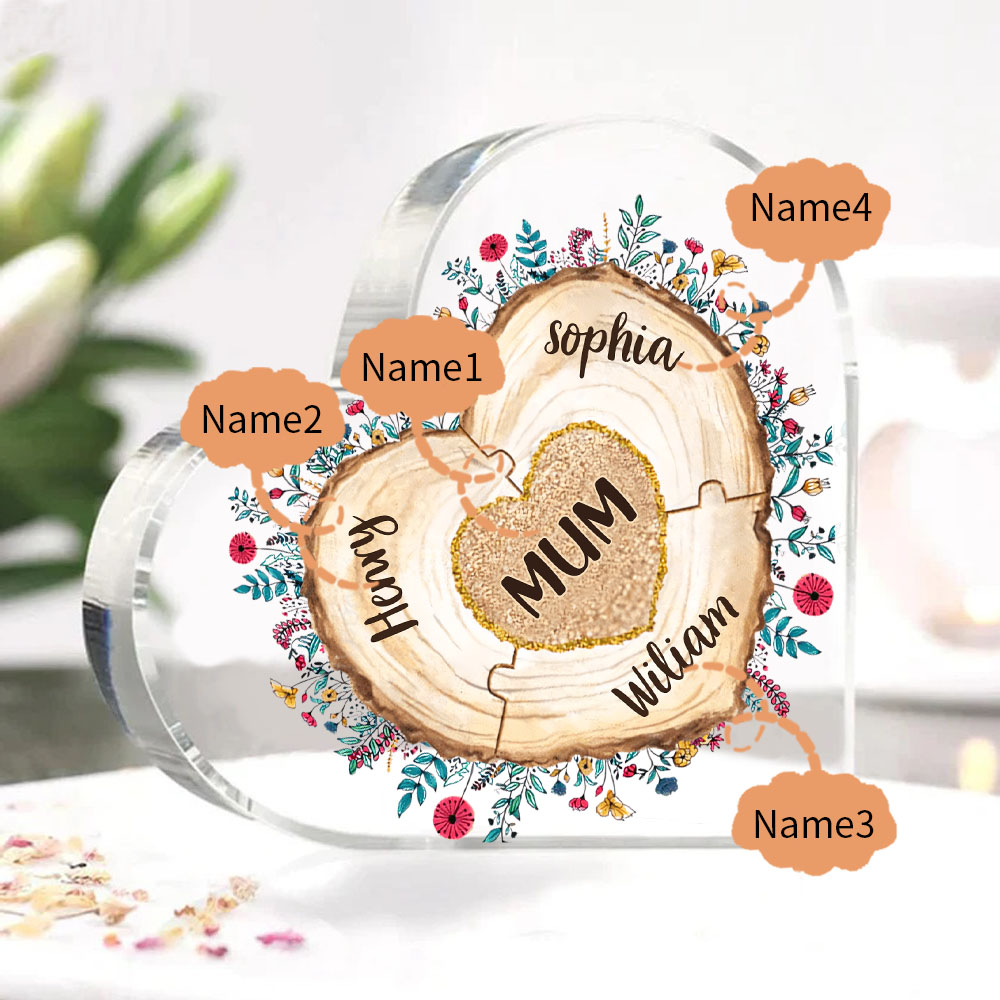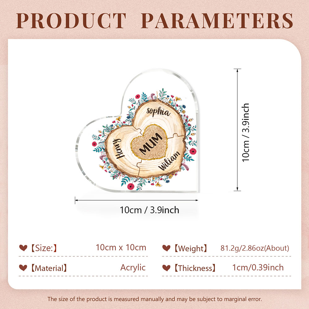 4 Names-Personalised Mum Acrylic Heart Keepsake Growth Rings Ornaments Gifts Set With Gift Box for Grandma/Mother