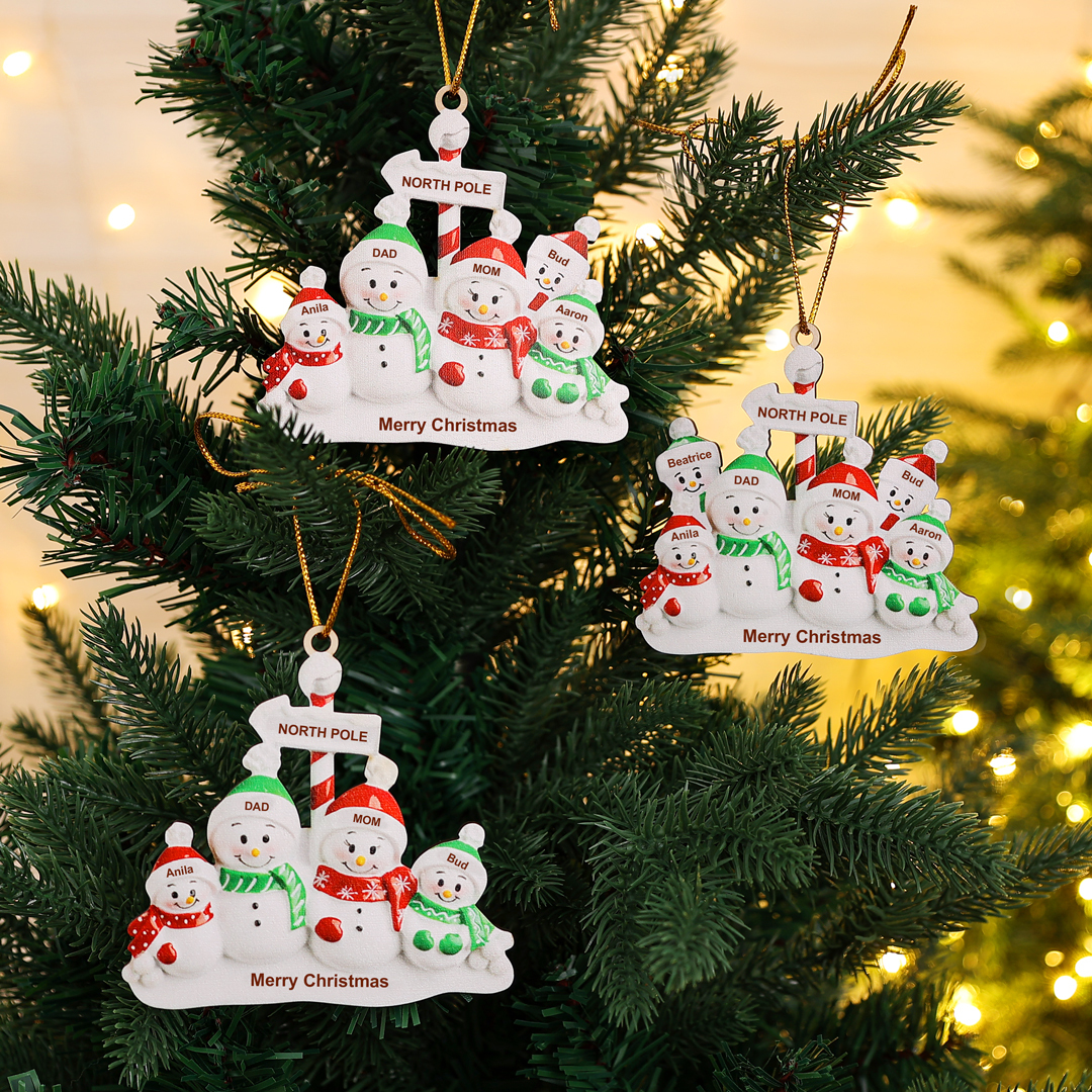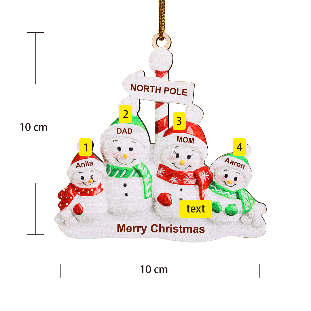 4 Names-Personalised Snowman Family Wooden Christmas Xmas Tree Decoration Ornament-Custom 4 Names And Text Hanging Ornament Gifts For Family