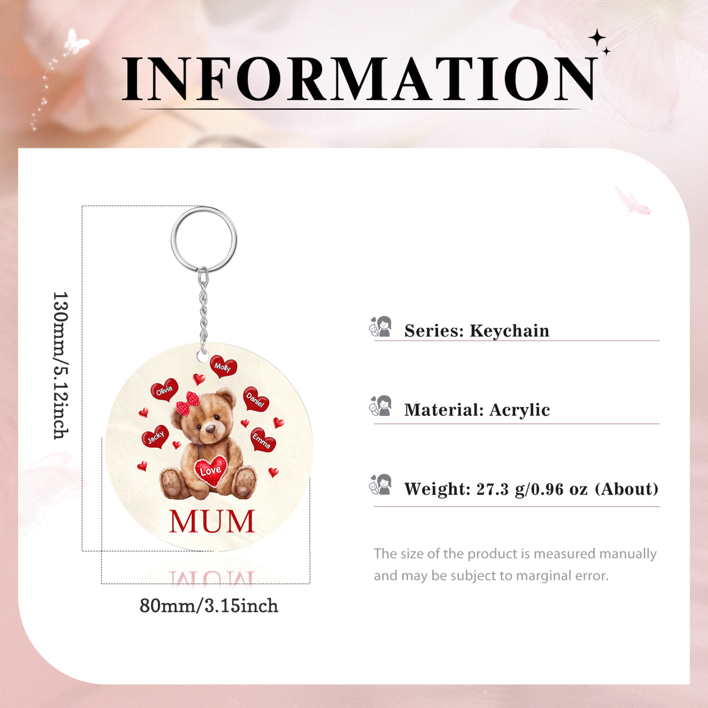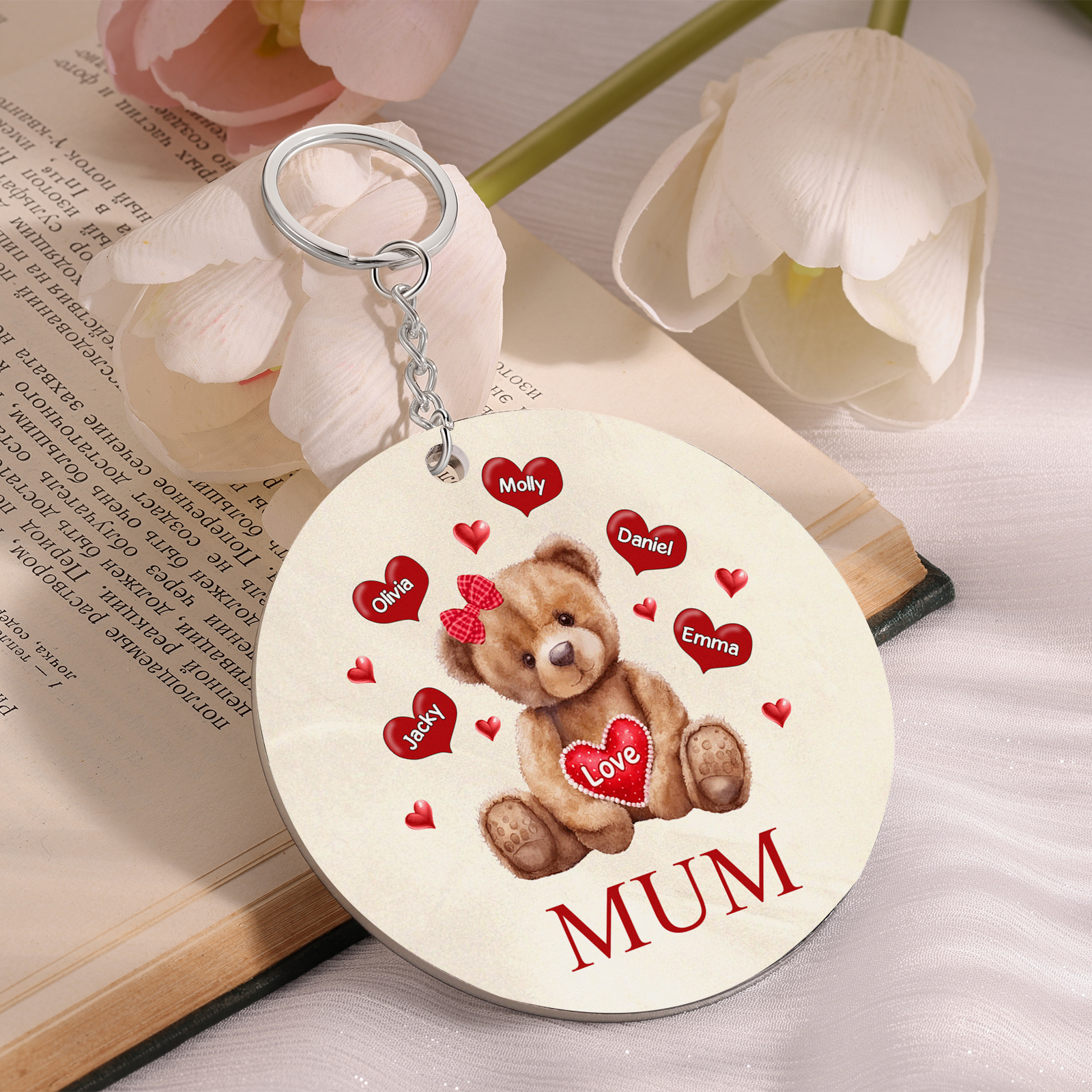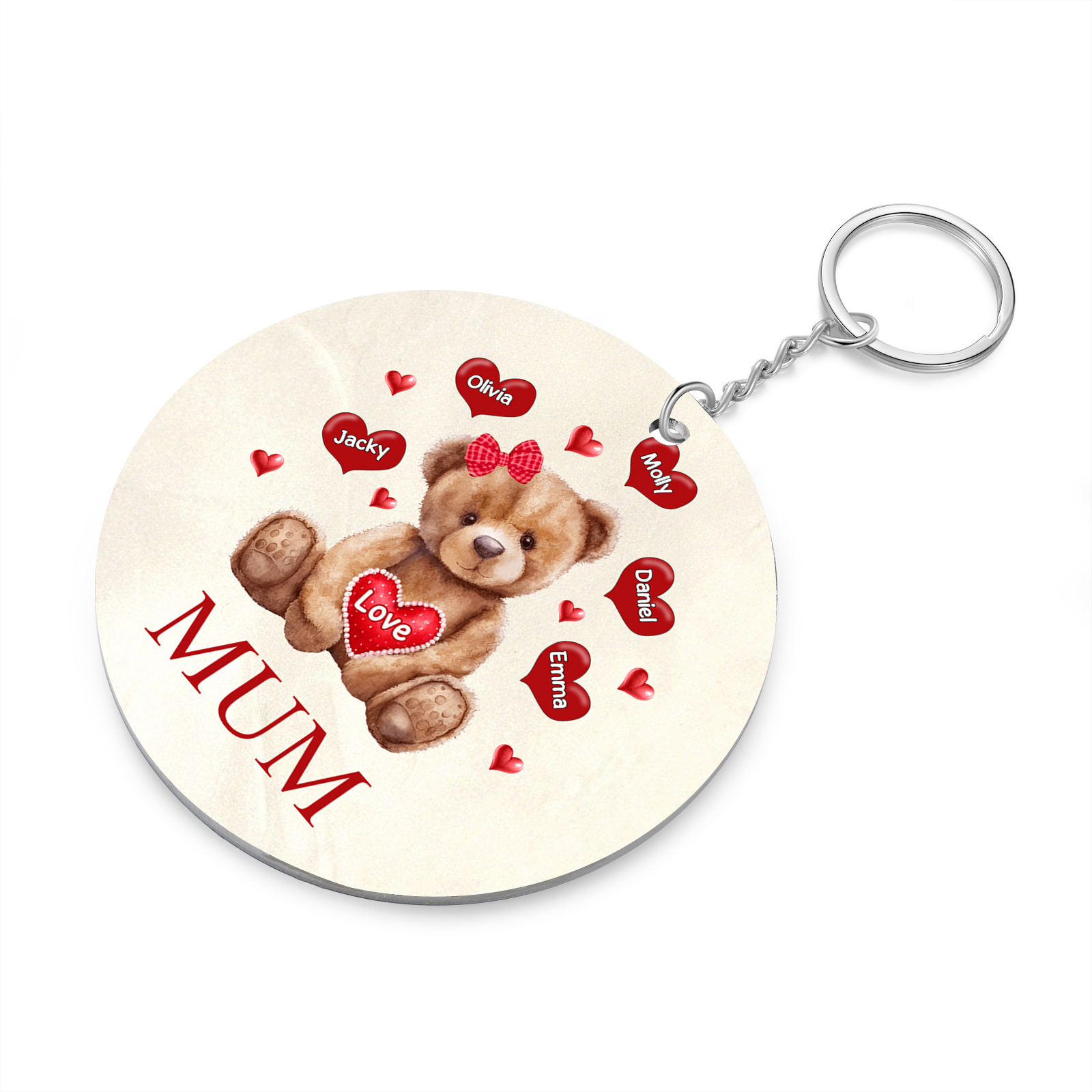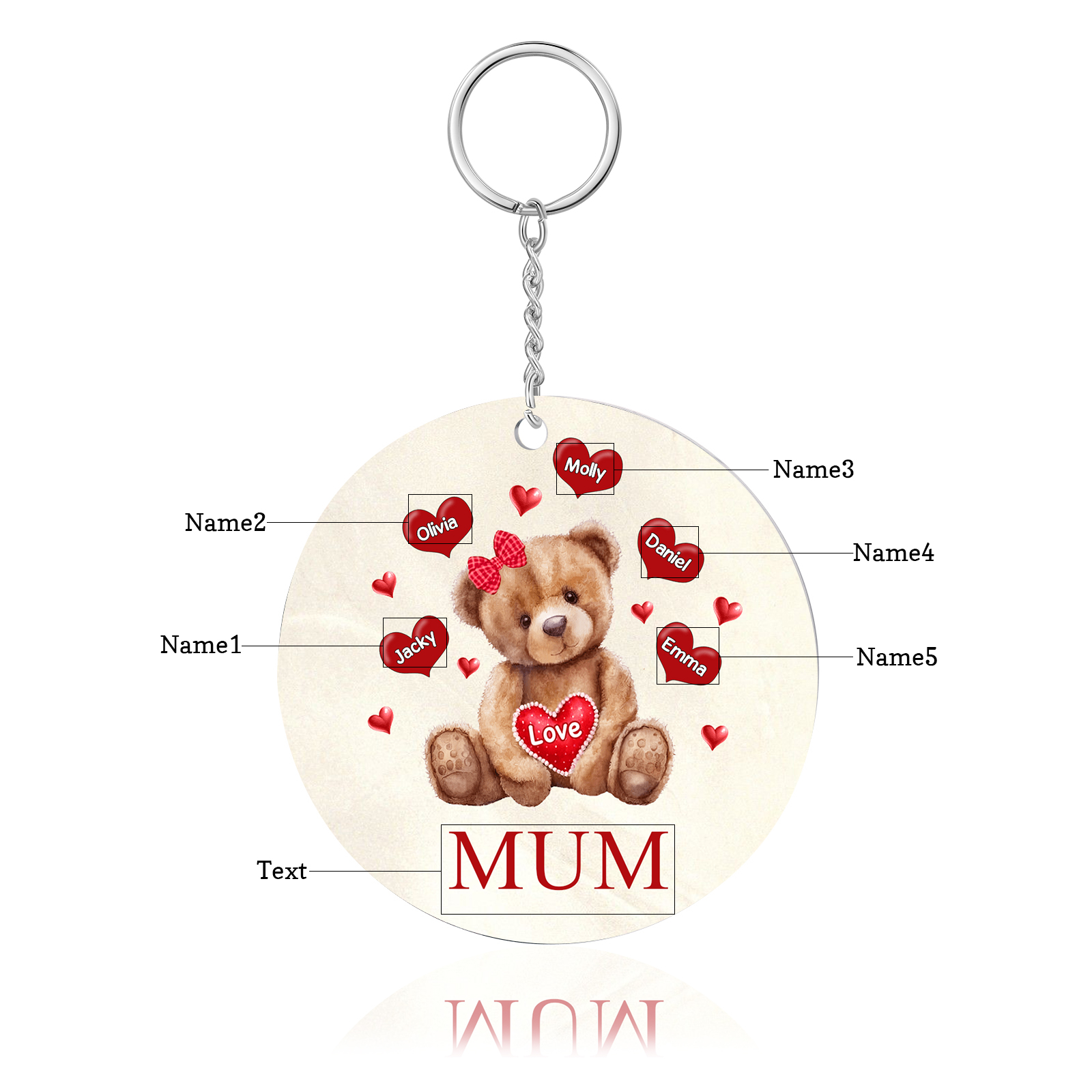 5 Names-Bear Personalised Text Keyring Gift Custom Special Keyring Gift For Mum