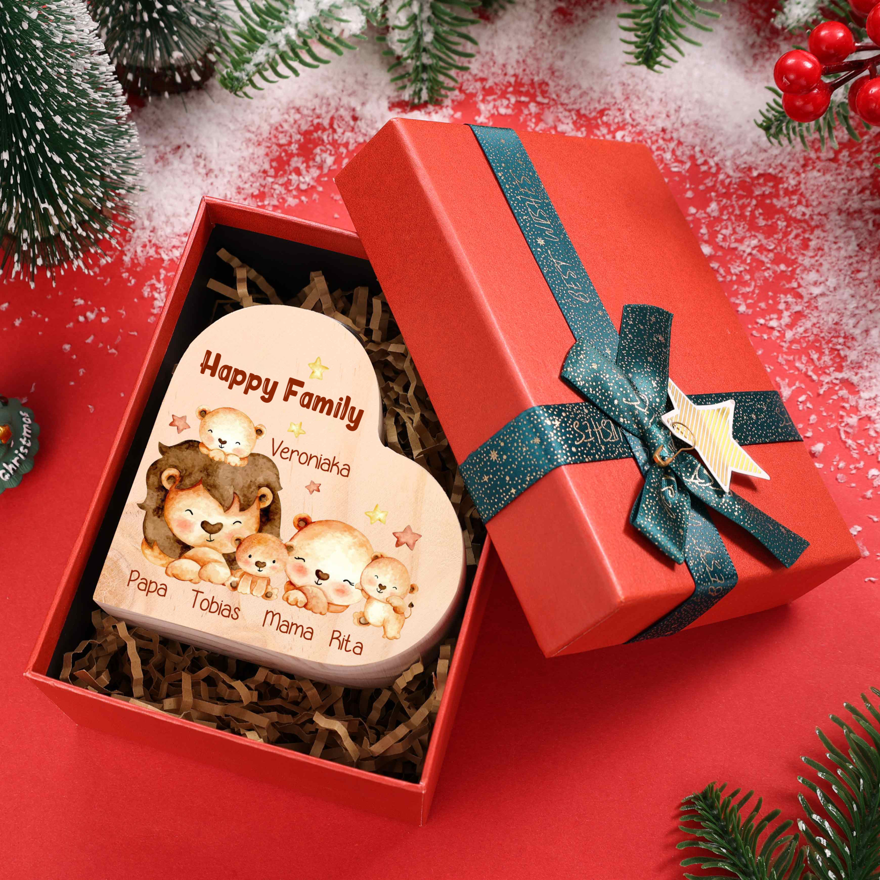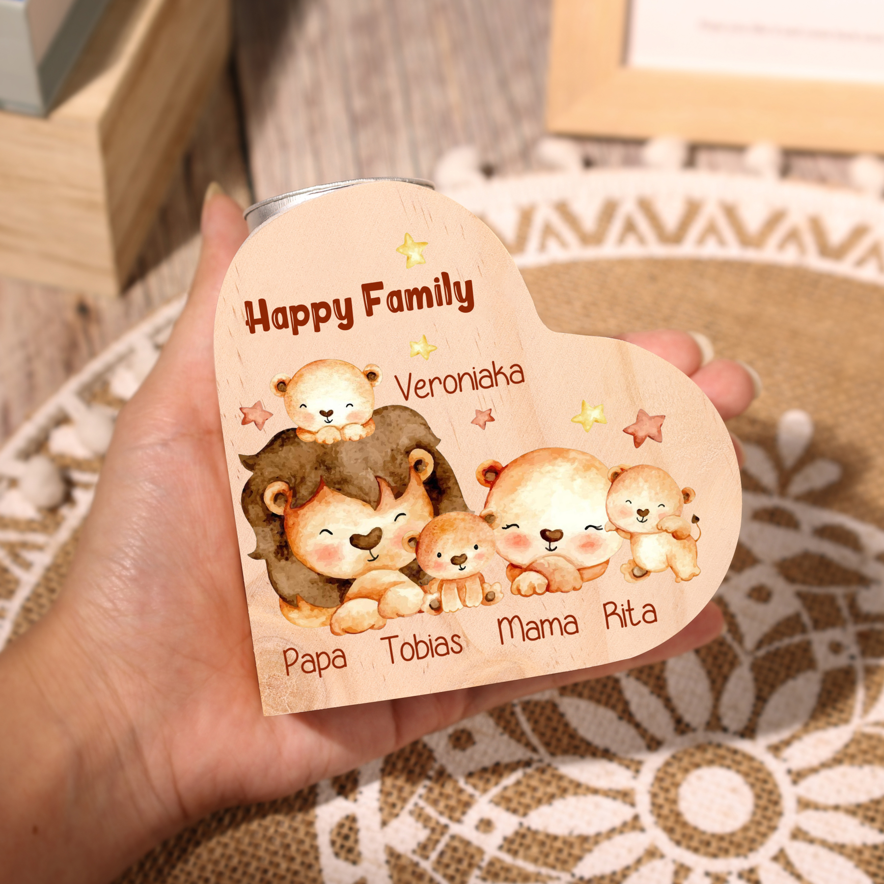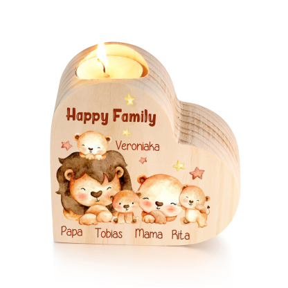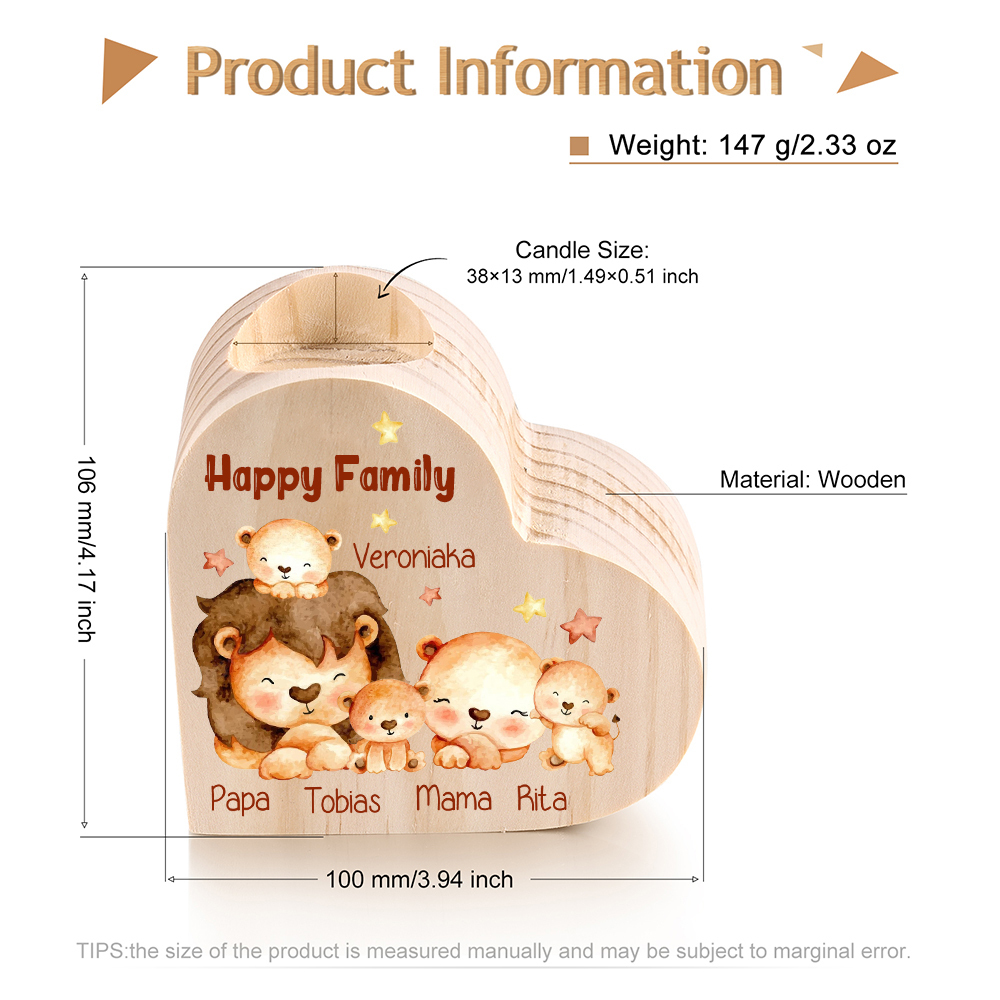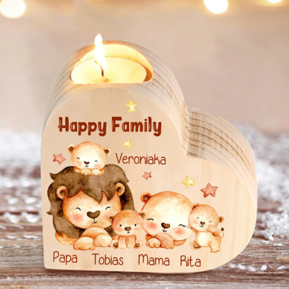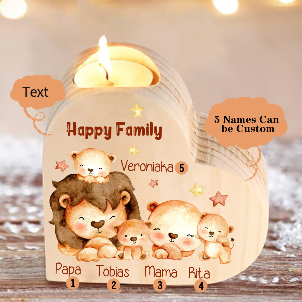 5 Names-Custom Family Lions Wooden Candlestick-Personalised Names Heart Candle Holder Christmas Gift for Family