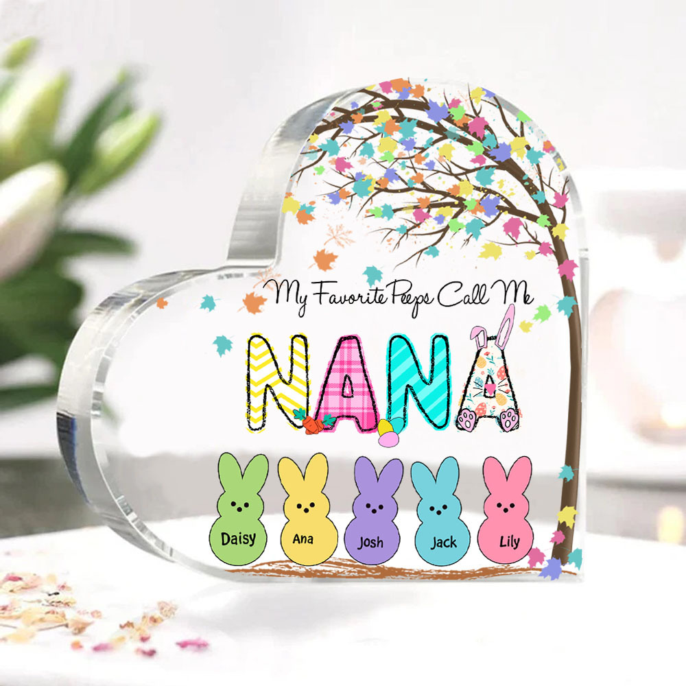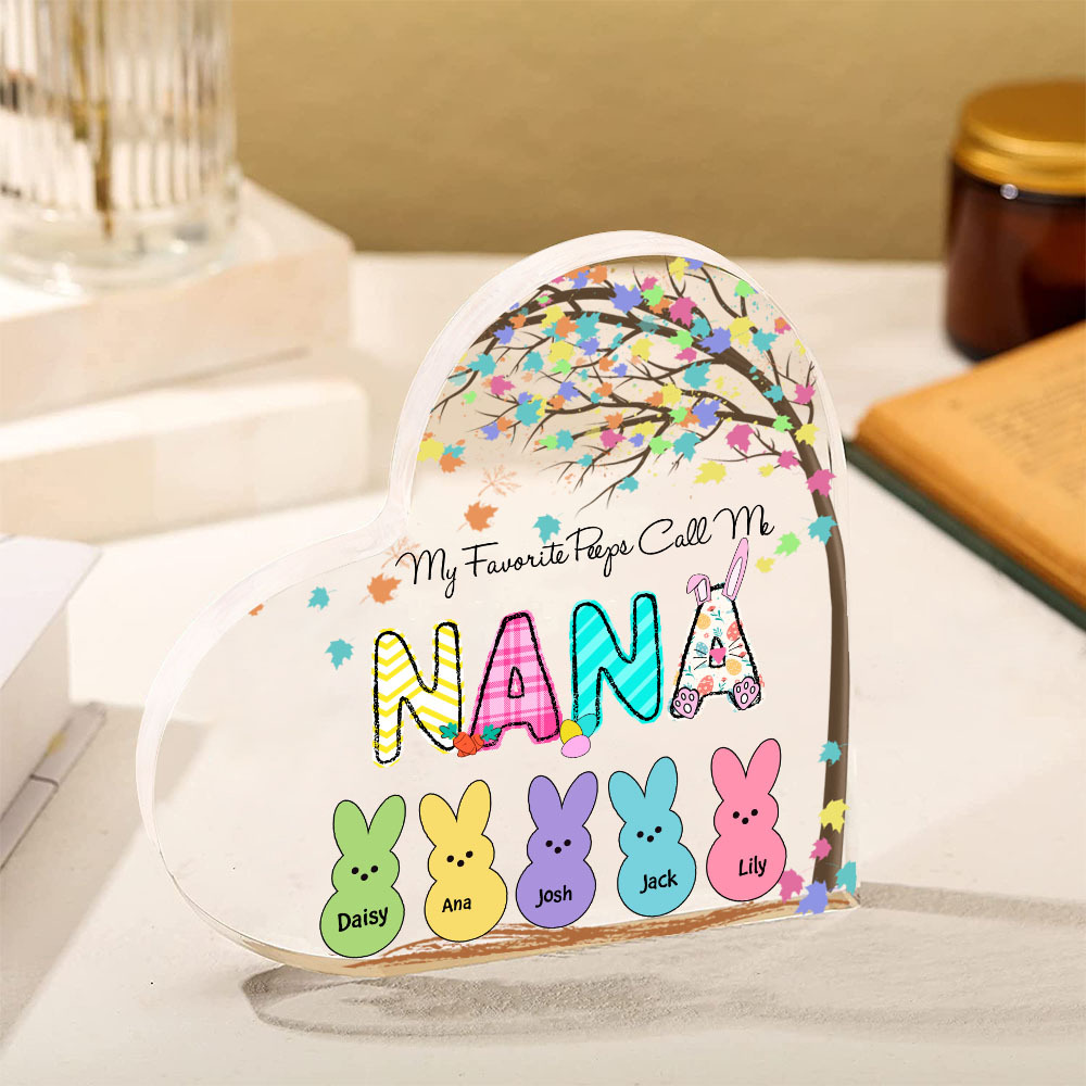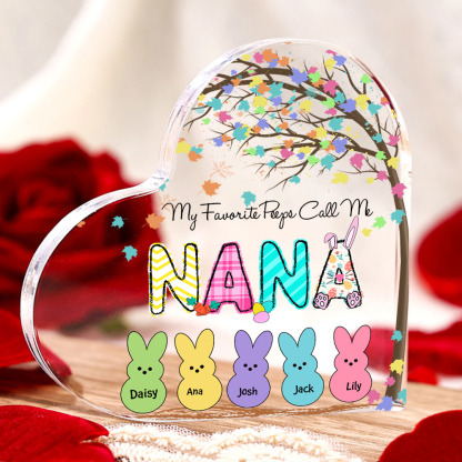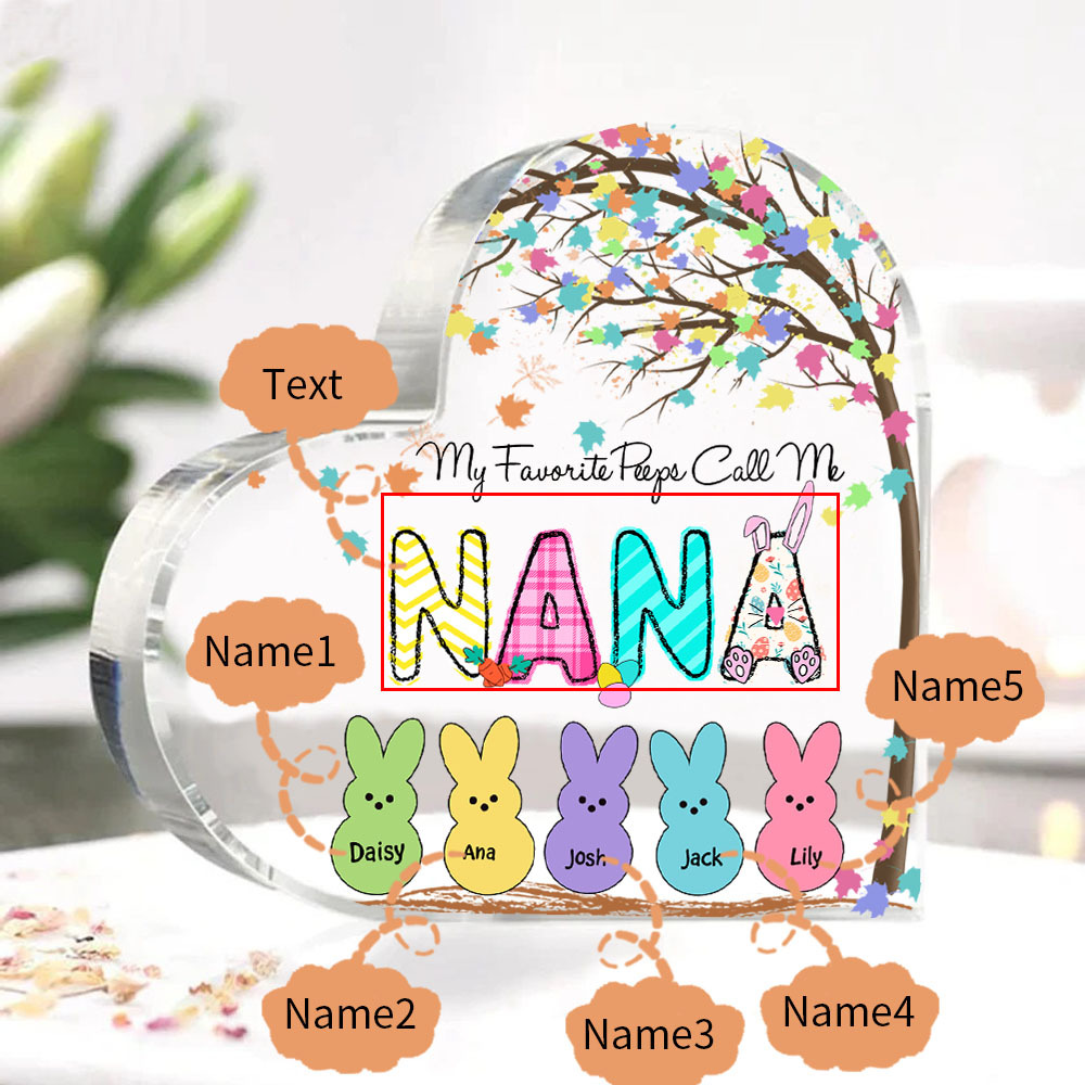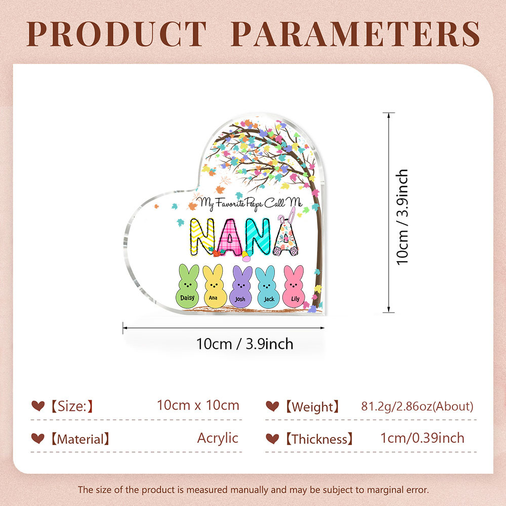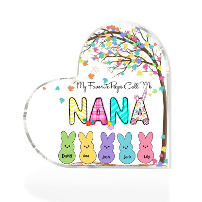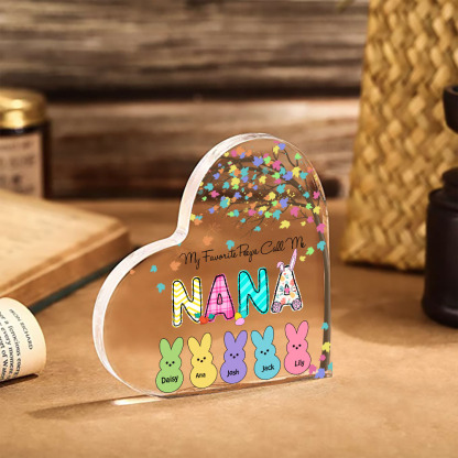 5 Names-Personalised Acrylic Heart Keepsake Custom Names Bunny Acrylic plaque Ornaments Gifts for Mum/Nan/Nana