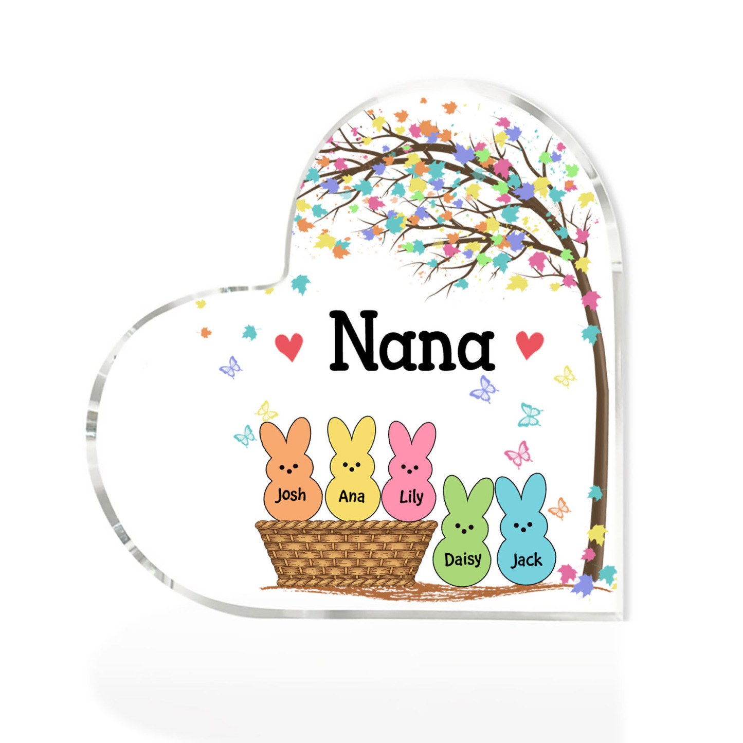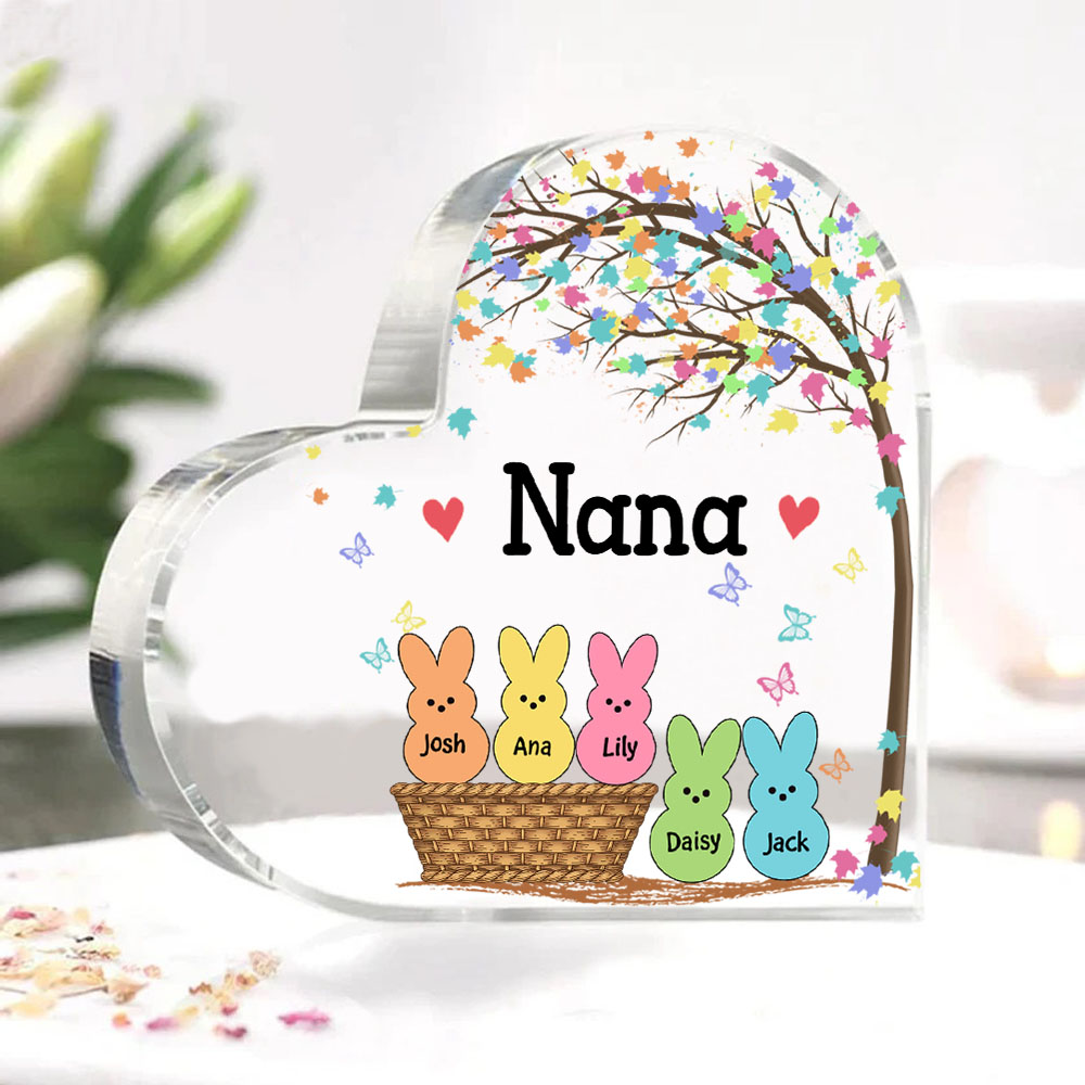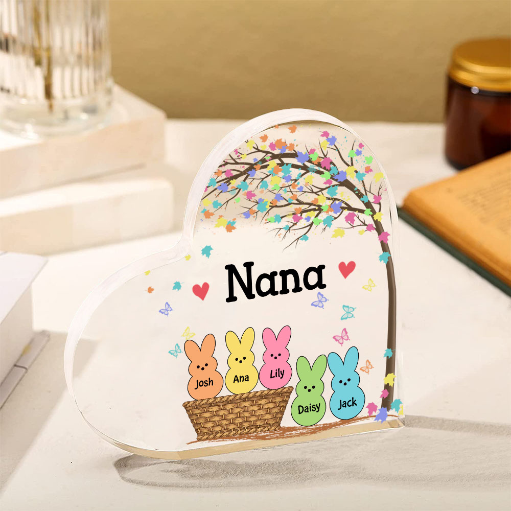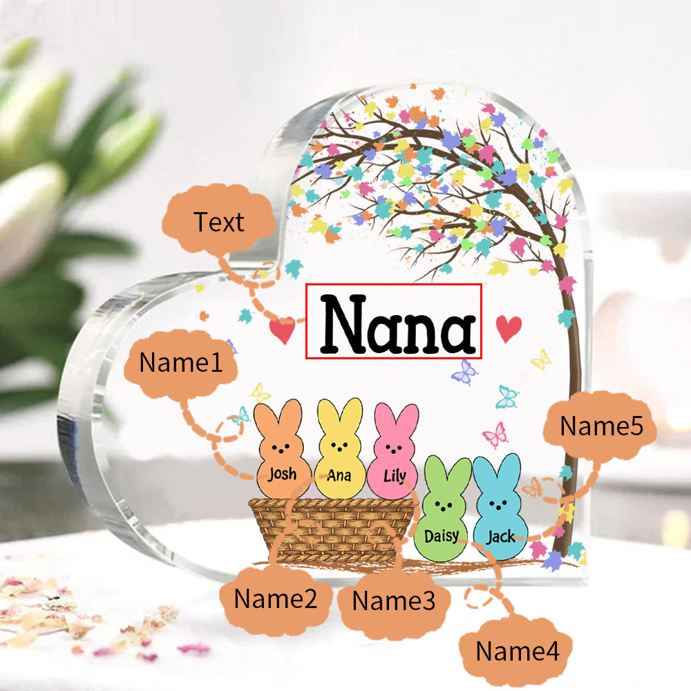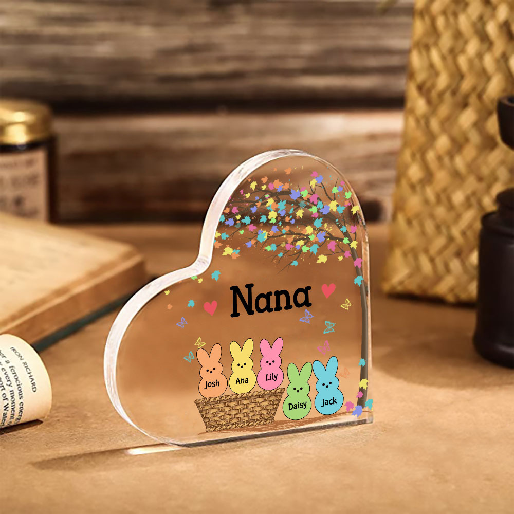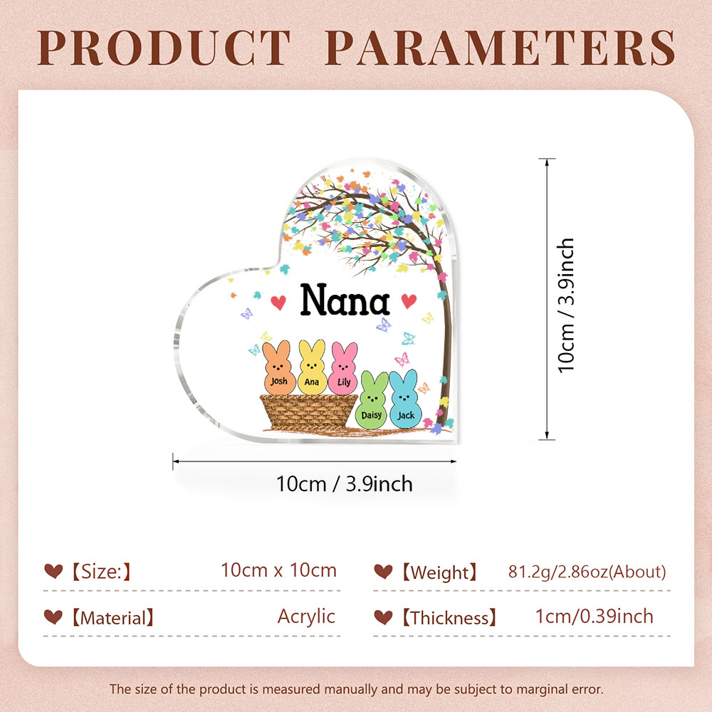 5 Names-Personalised Acrylic Heart Keepsake Custom Names Bunny Acrylic plaque Ornaments Gifts for Mum/Nan/Nana