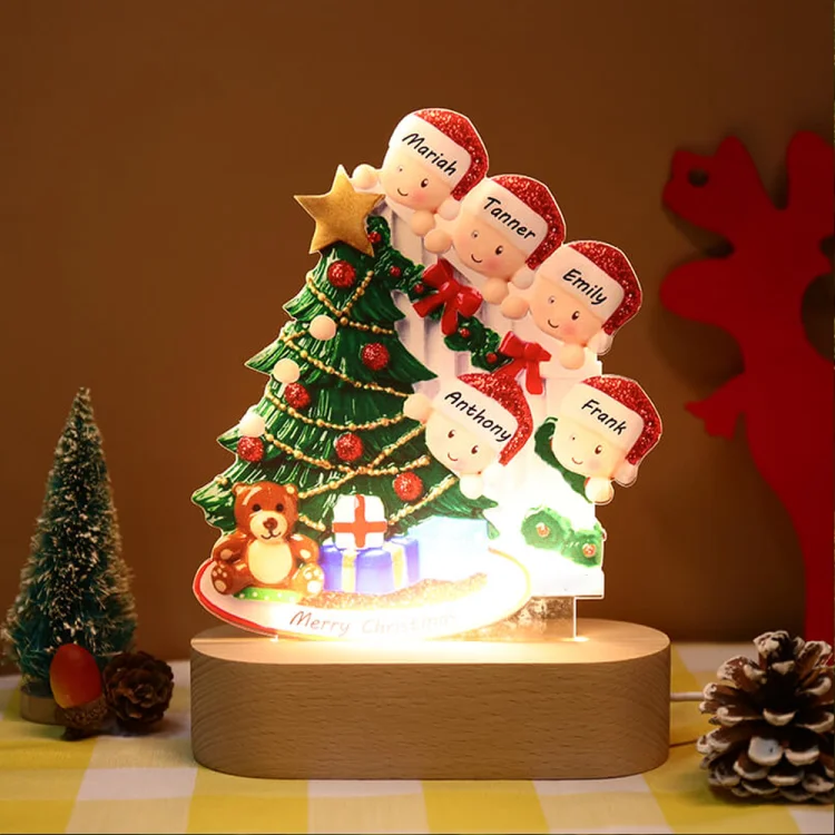 5 Names-Personalised Christmas Family Night Light with Family Member Name, Custom Color-Changing Night Light with LED Lighting Bedroom Decoration