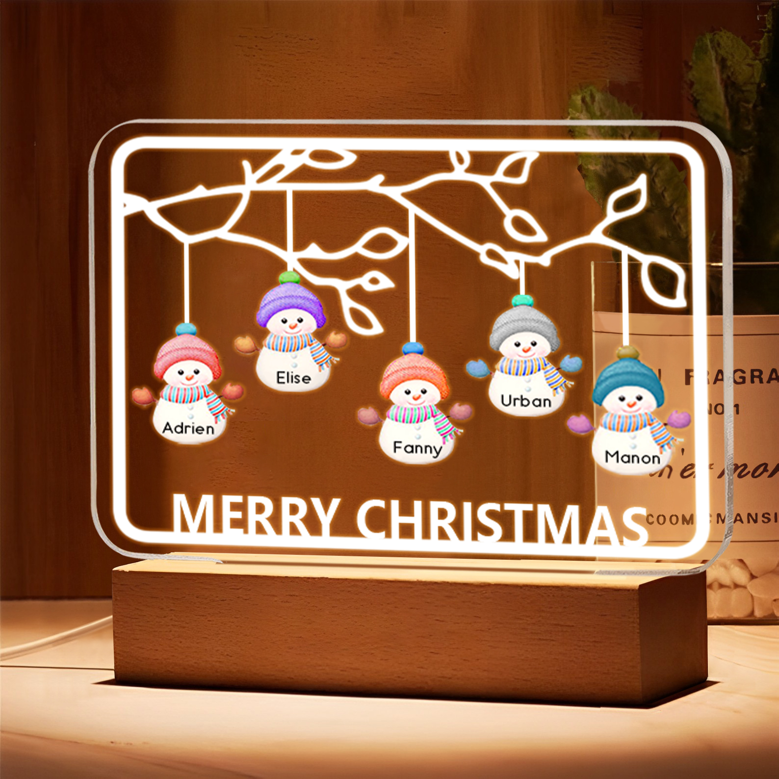 5 Names-Personalised Christmas Family Night Light with Family Member Names, Custom 5 Names Night Light with LED Lighting Bedroom Decoration