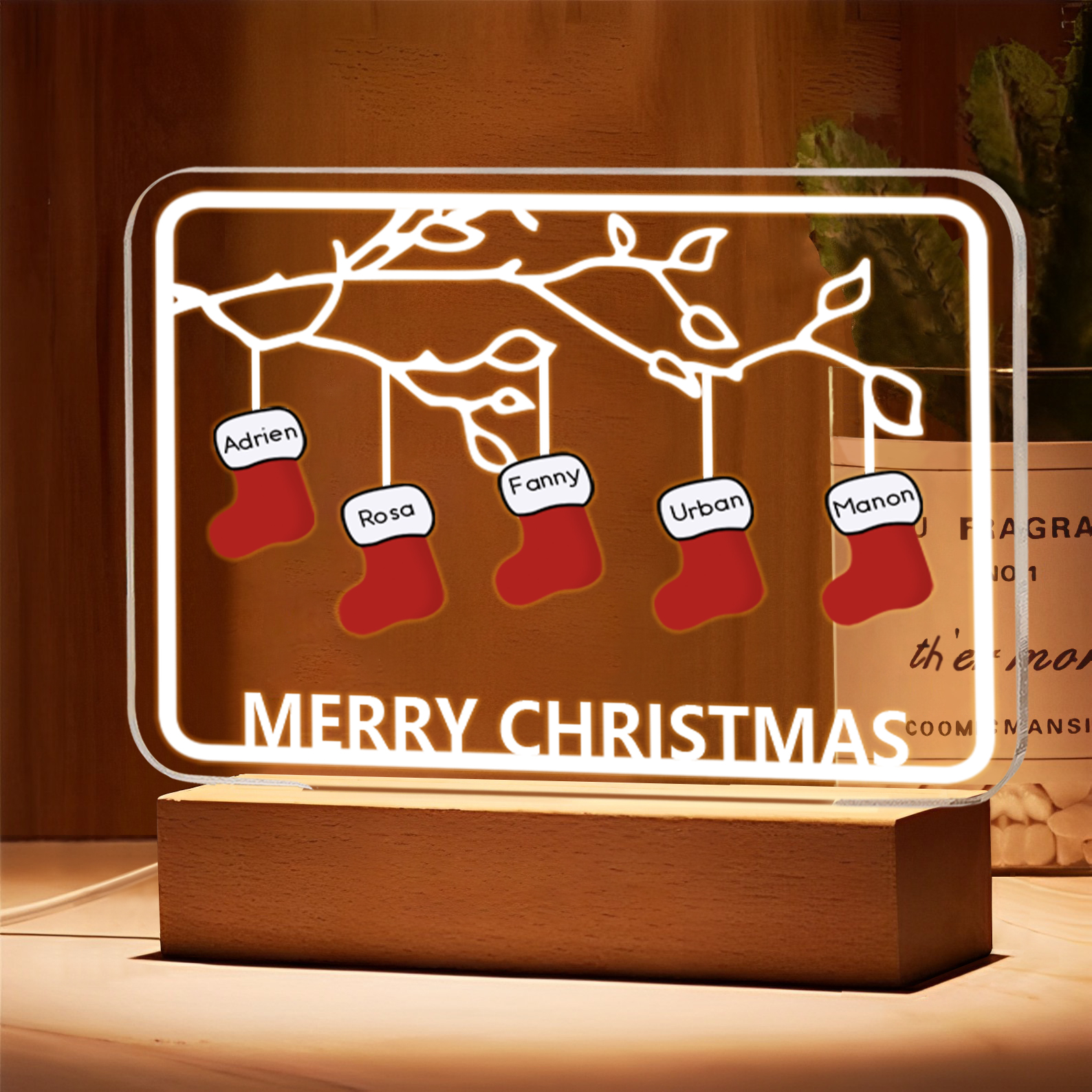 5 Names-Personalised Christmas Family Night Light with Family Member Names, Custom 5 Names Night Light with LED Lighting Bedroom Decoration