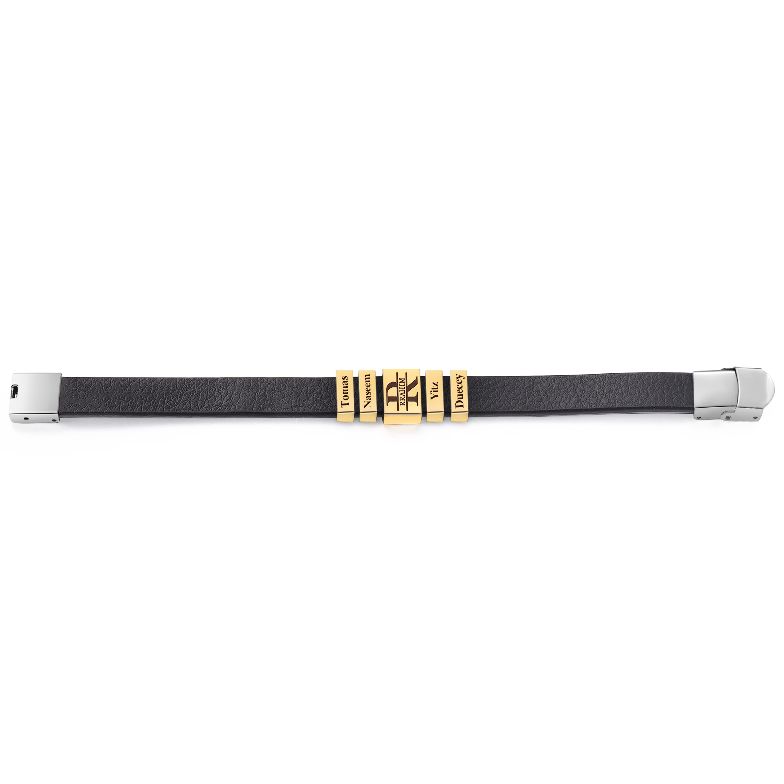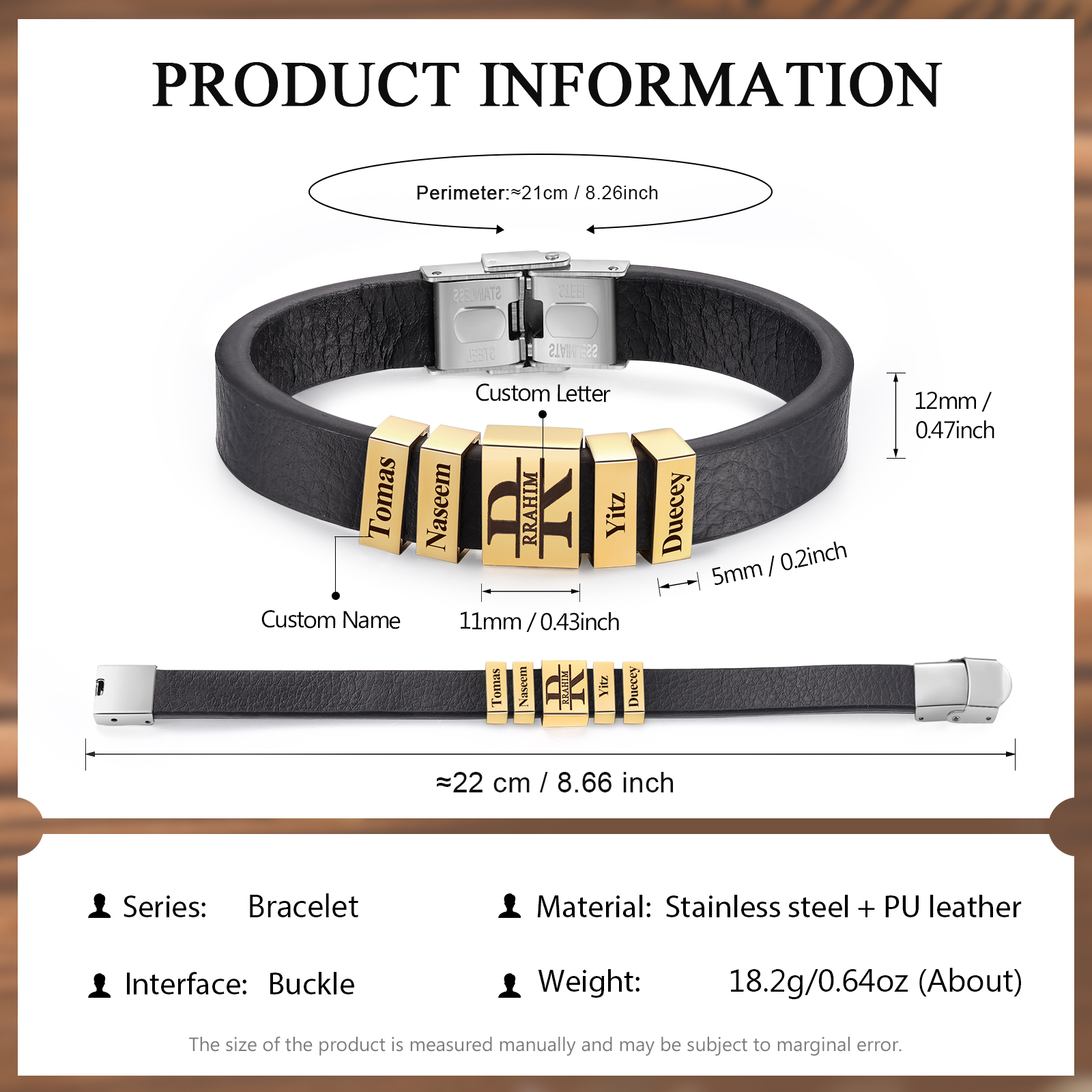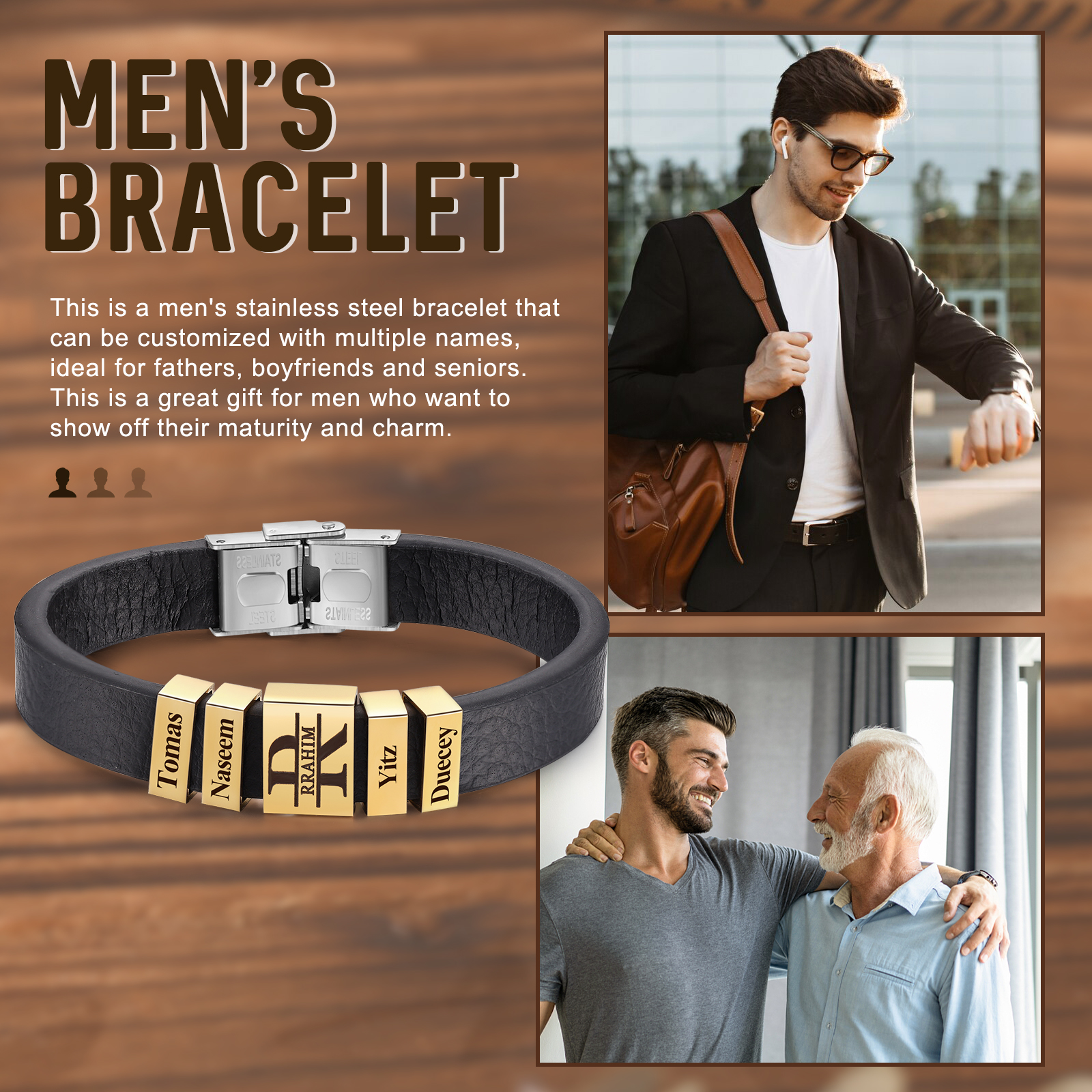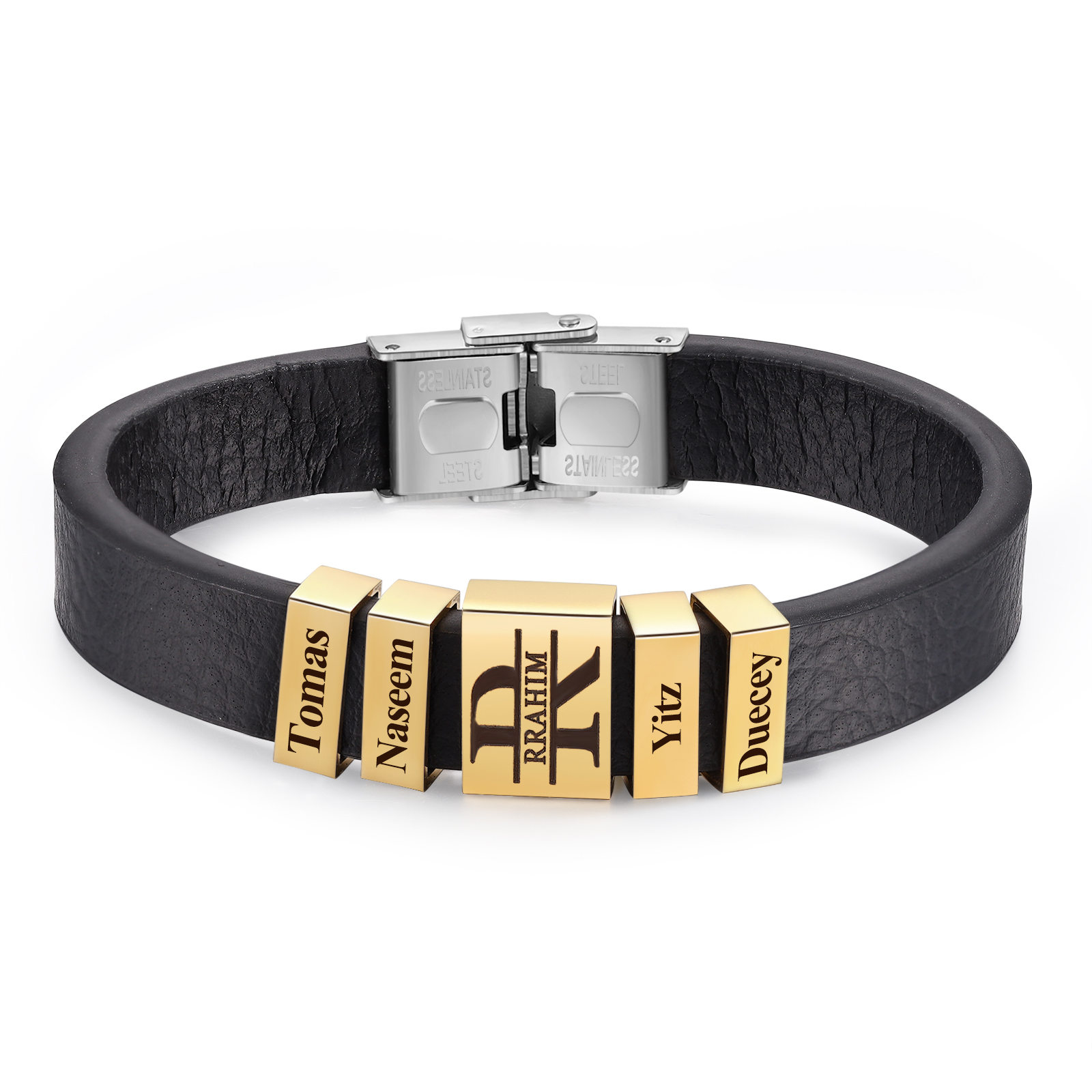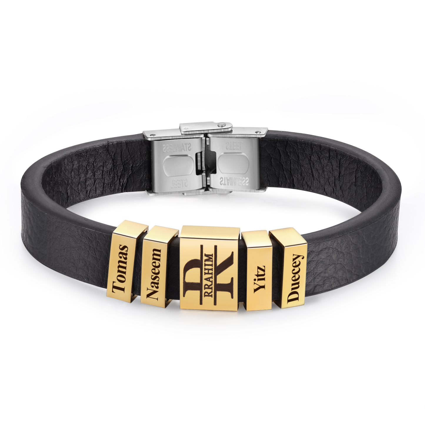 5 Names - Personalised Custom 5 Names Beads Leather Personalised Gift Mens Bracelet - Gift for Husband/Boyfriend
