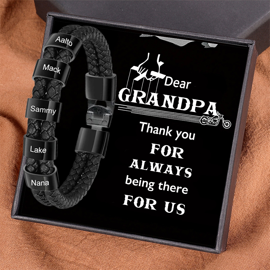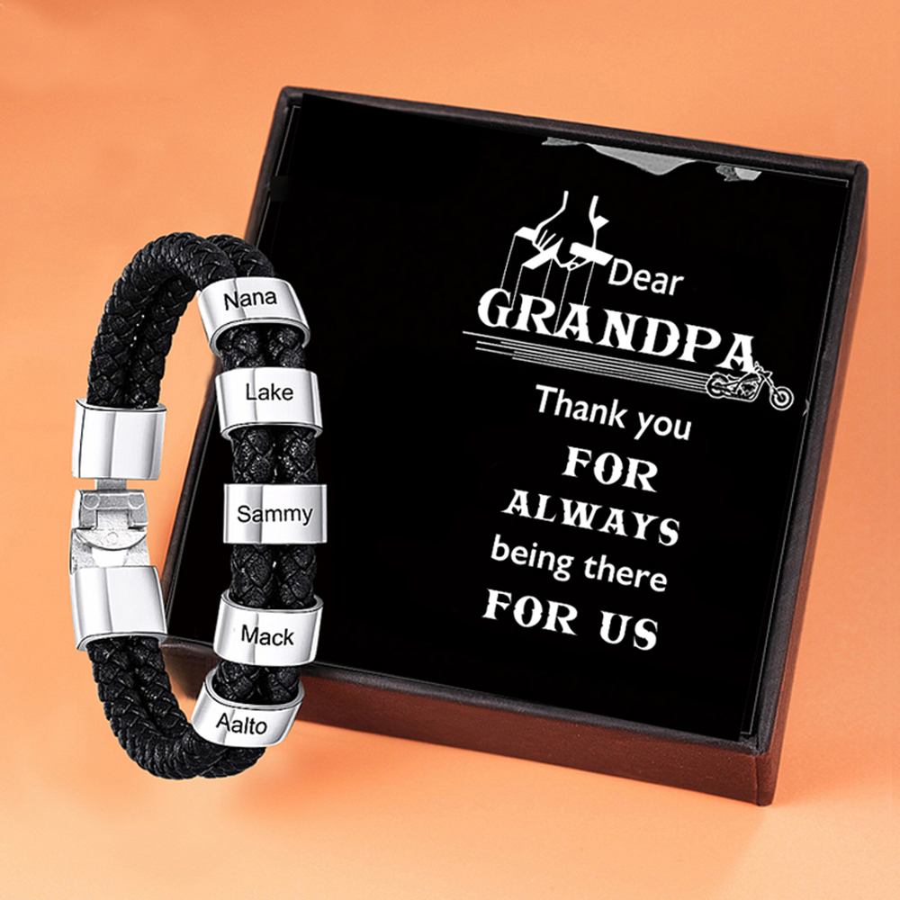 5 Names-Personalised Grandpa Braided Leather Bracelet Card Set, Custom Bracelet Engraved 5 Names Bracelet for Grandpa