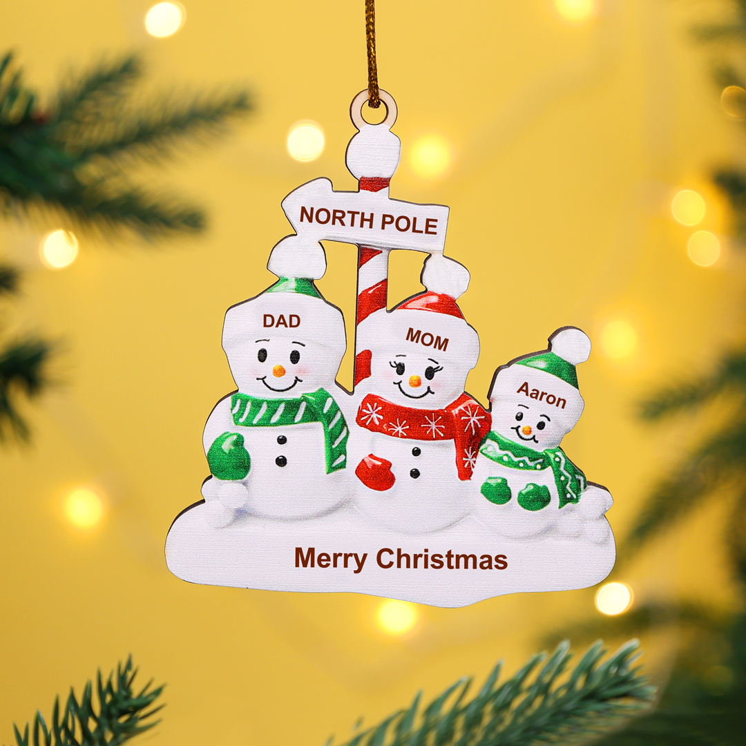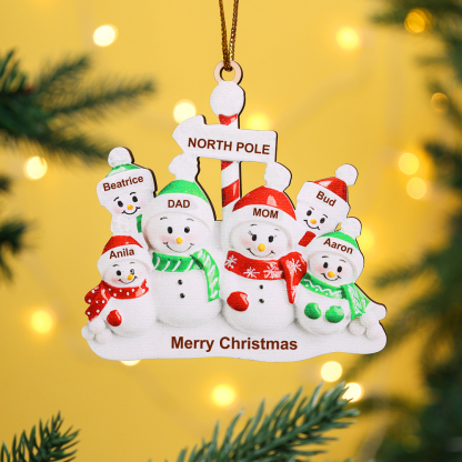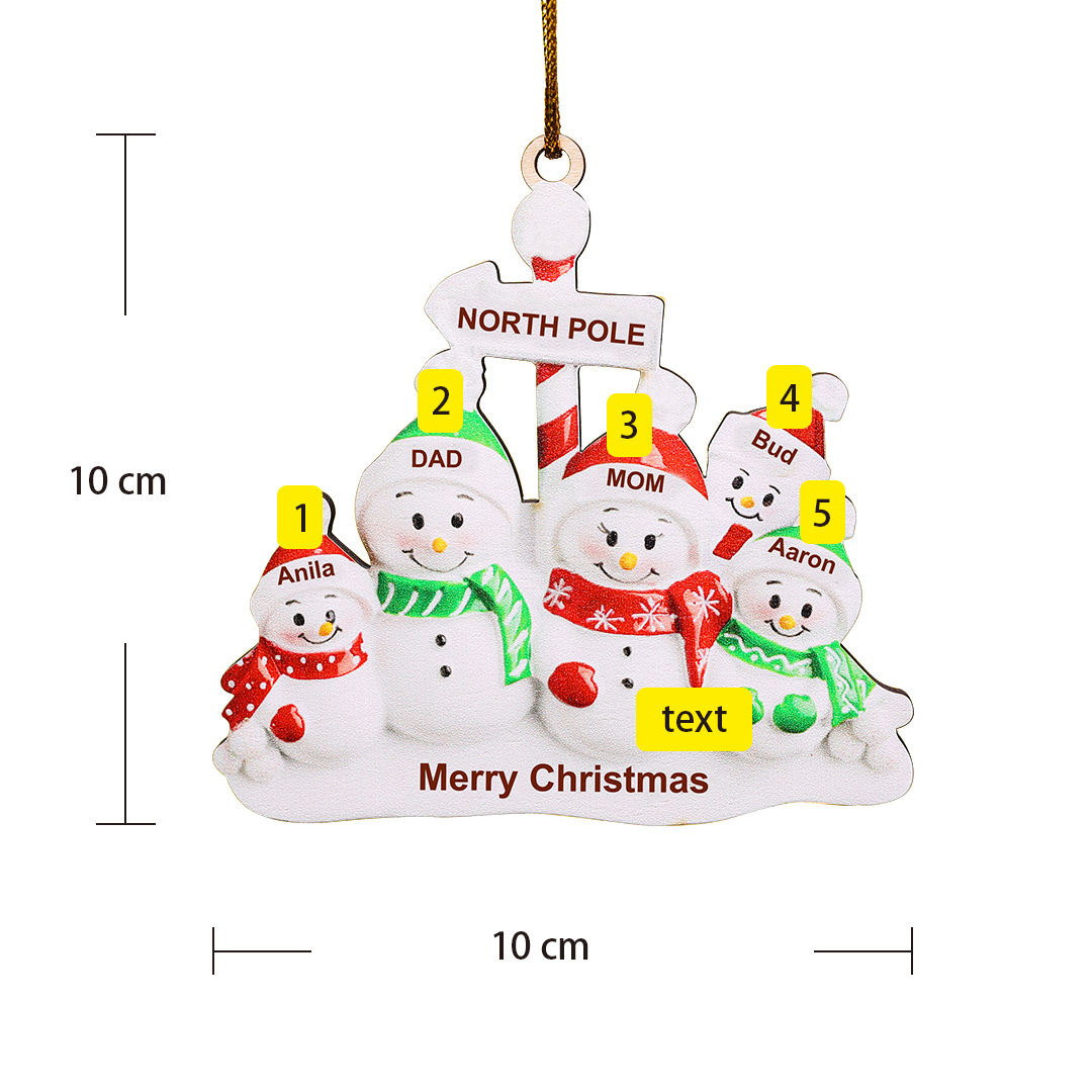 5 Names-Personalised Snowman Family Wooden Heart Christmas Xmas Tree Decoration Ornament-Custom 5 Names And Text Hanging Ornament Gifts For Family
