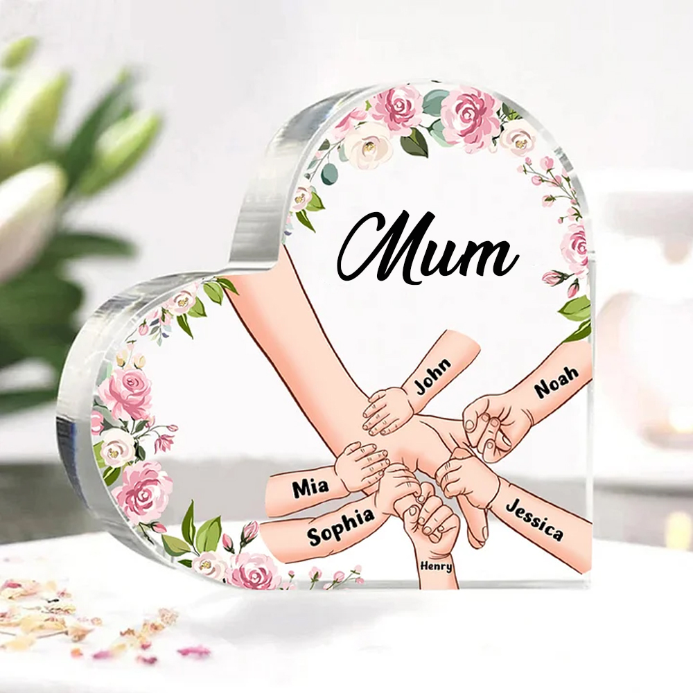 6 Names-Mum/Nan/Nana/Grandma Name Personalised Acrylic Ornament-Custom Acrylic Hold Hands Heart Keepsake Desktop Ornament for family