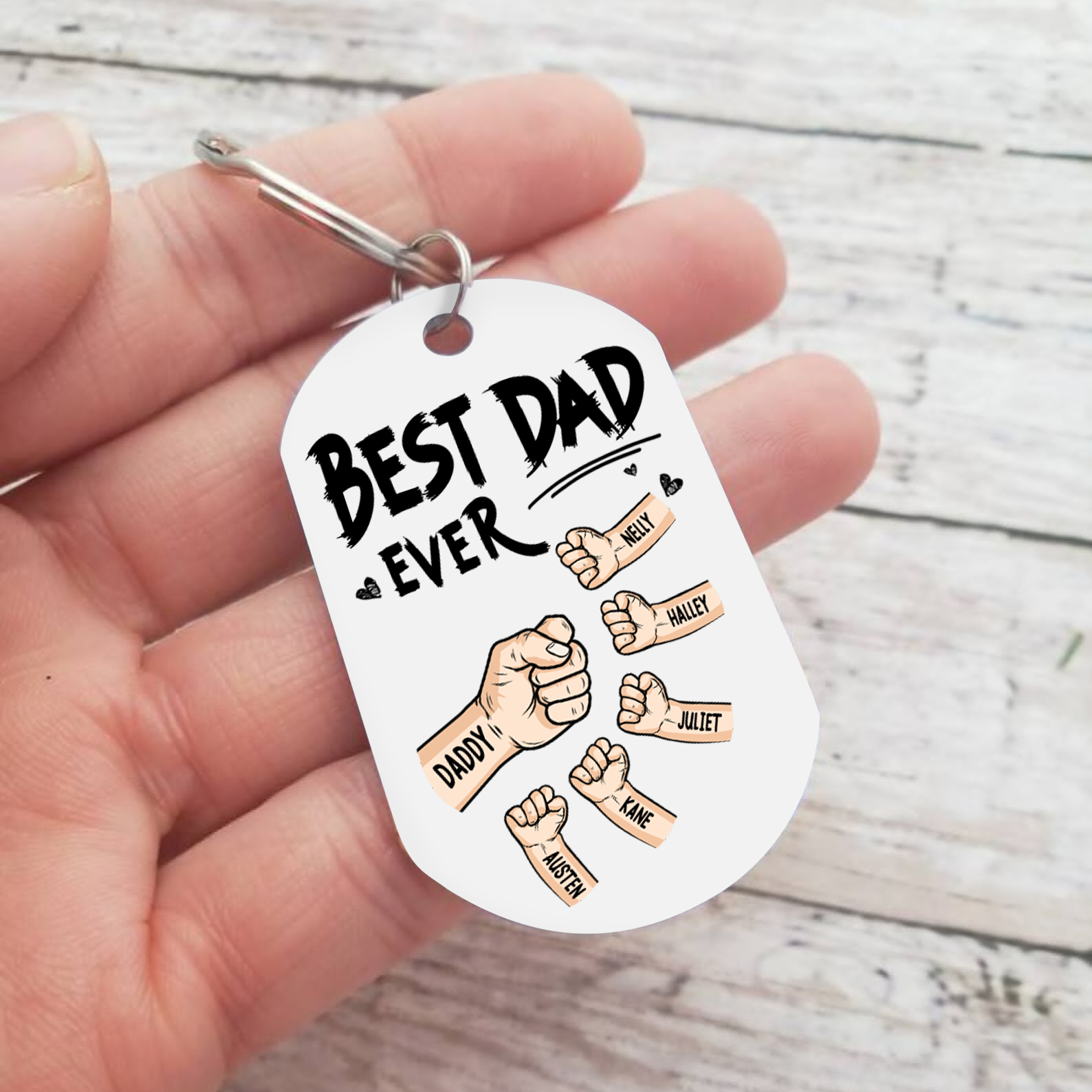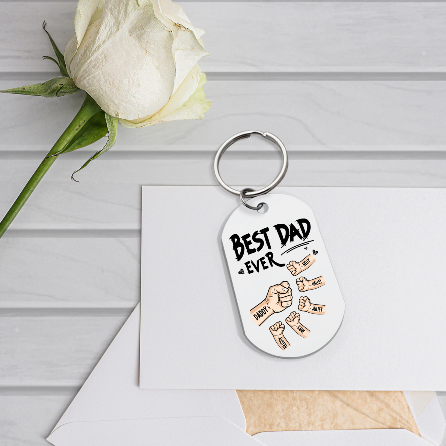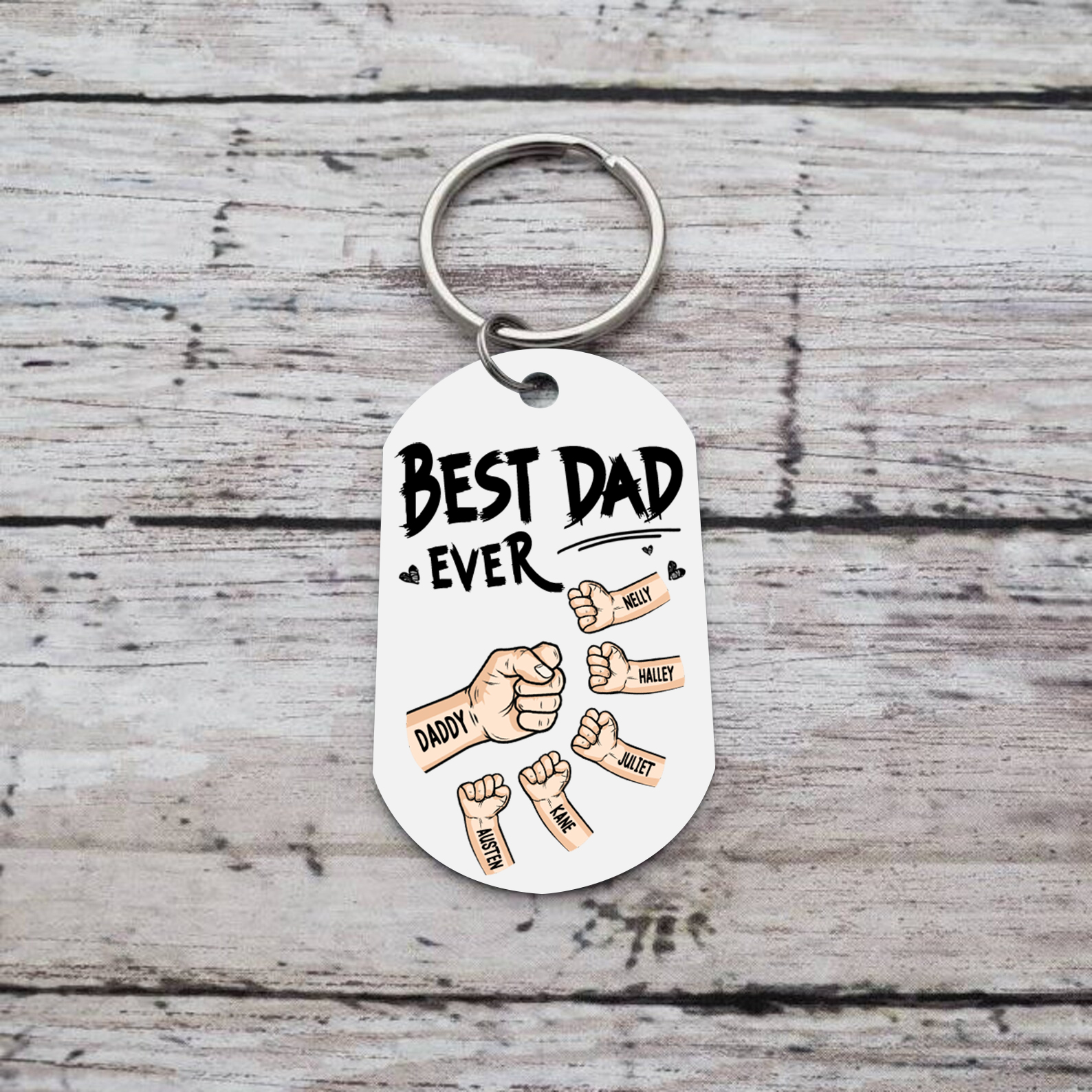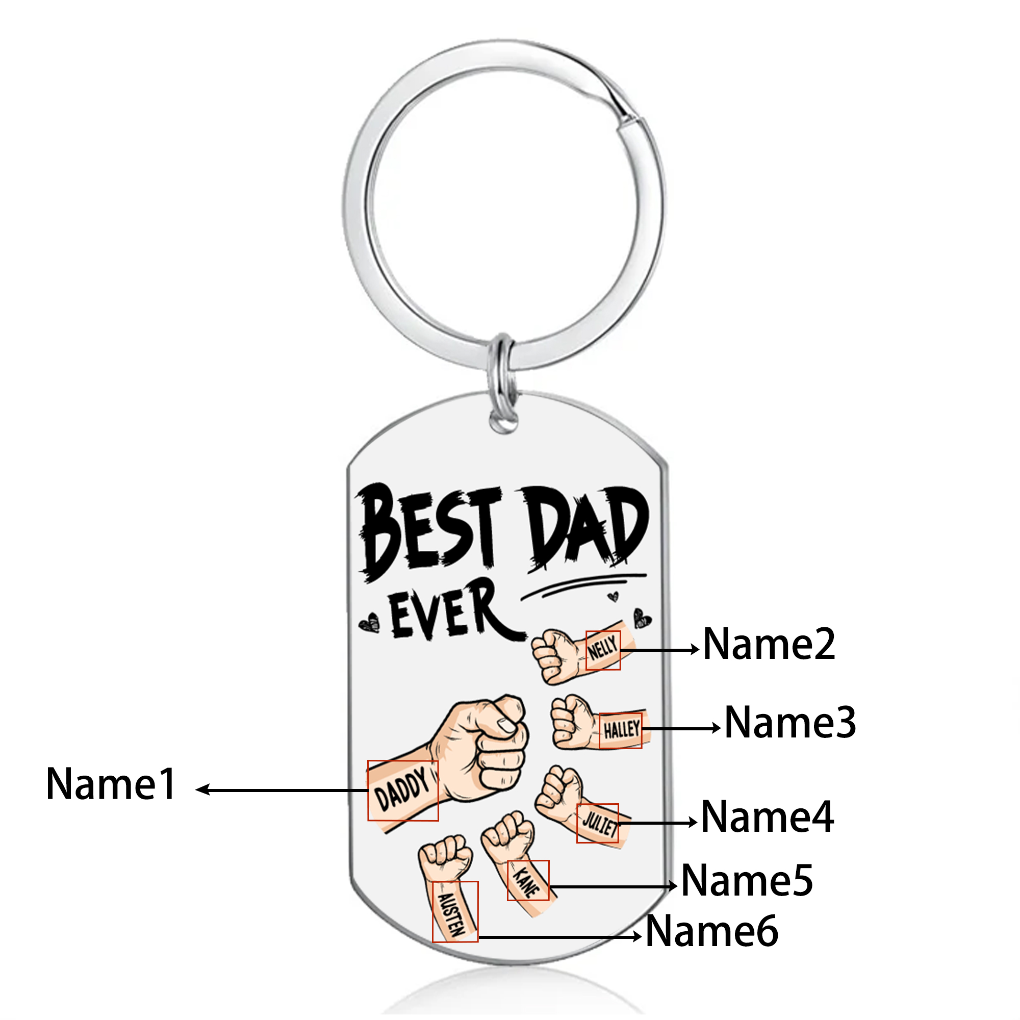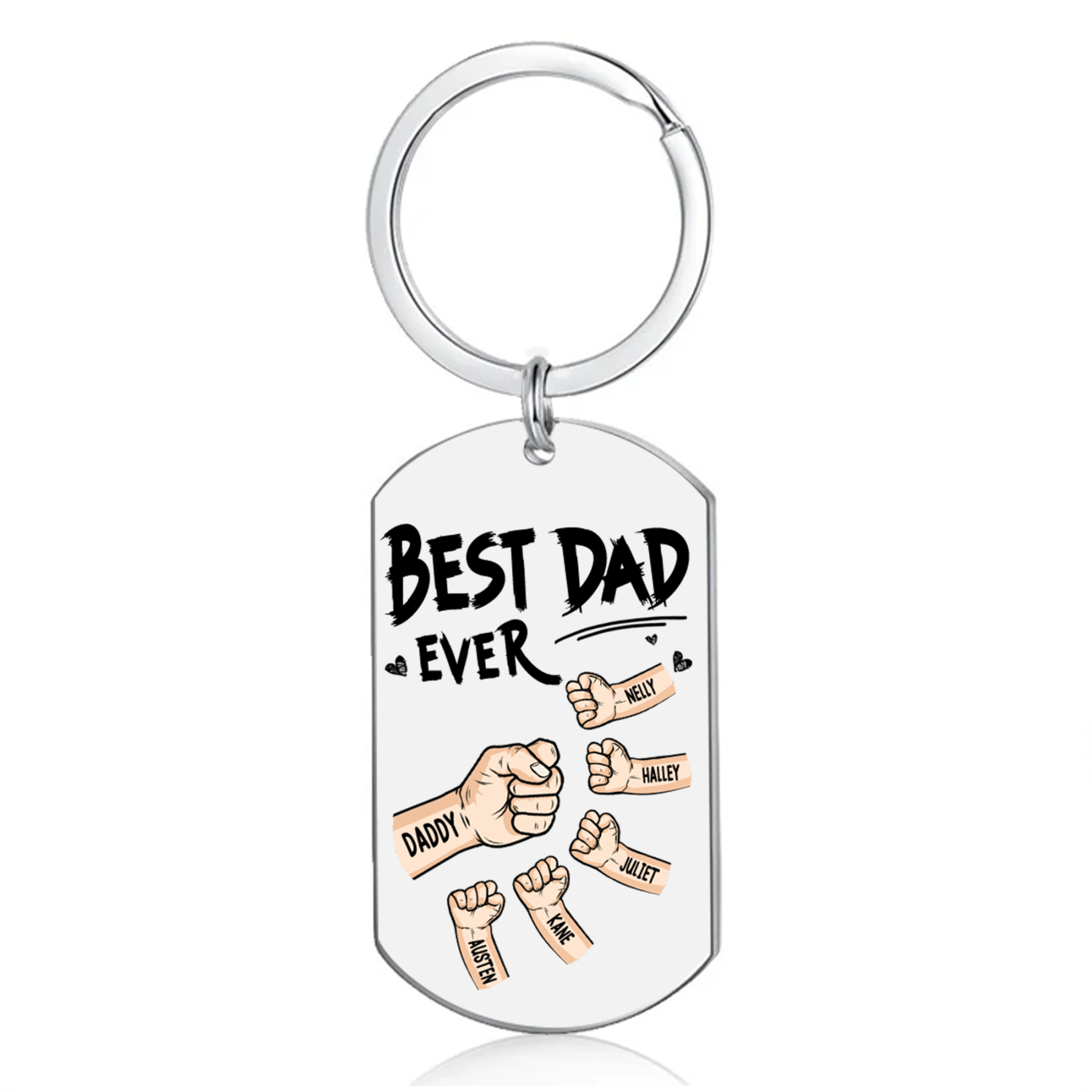 6 Names - Personalised Custom Fist Bump Keyring Gift "Best Dad Ever" Special Keyring Gift for Dad