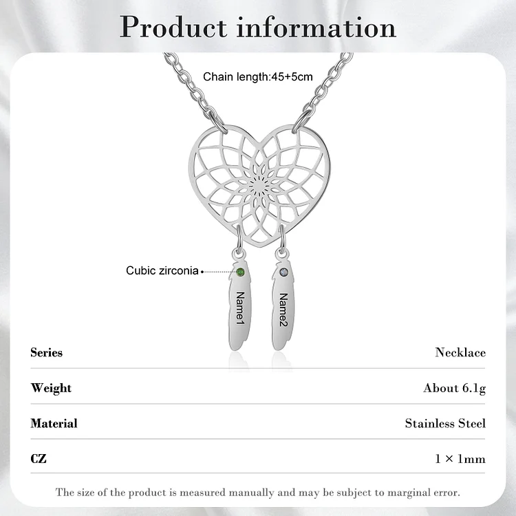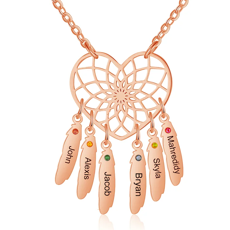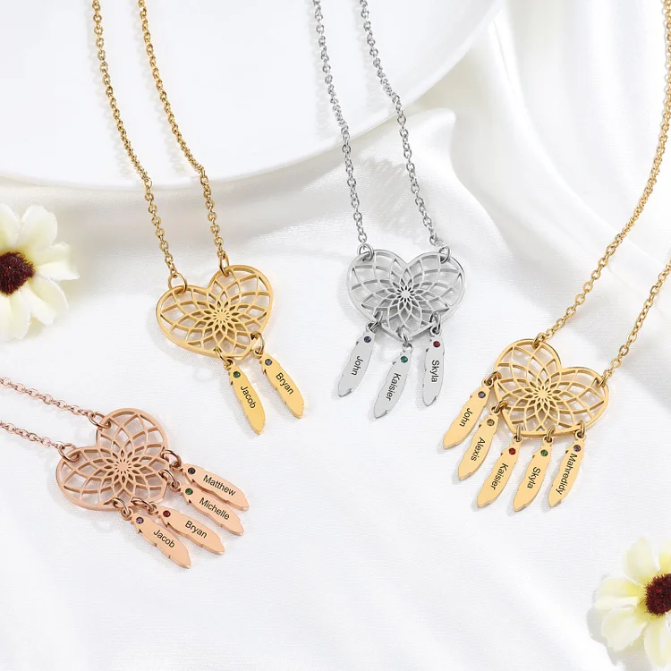 6 Names-Personalised Dream Catcher Necklace With Birthstones Custom 6 Names Necklace Gifts For Her
