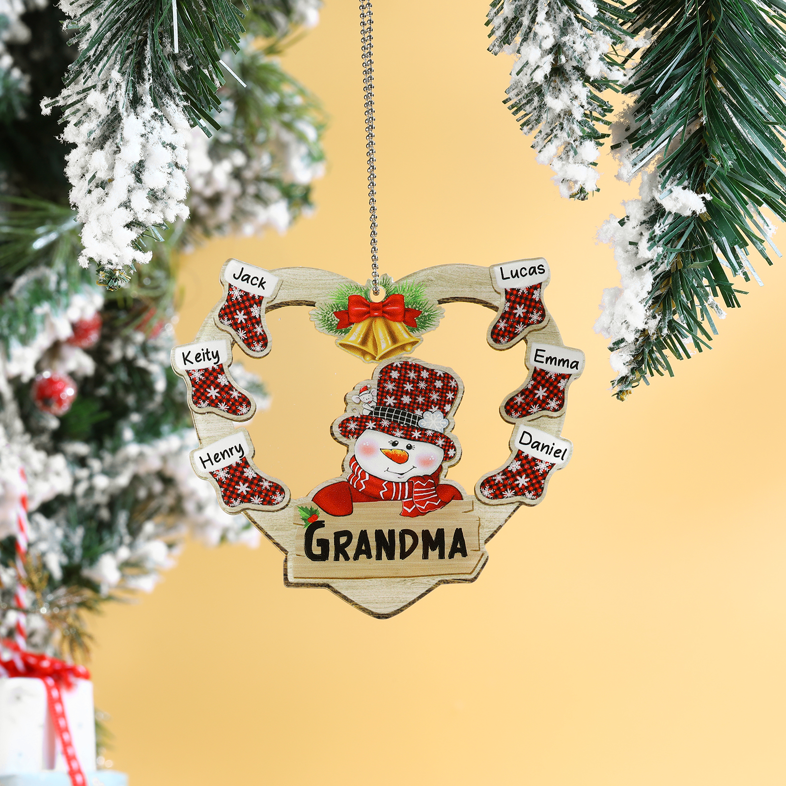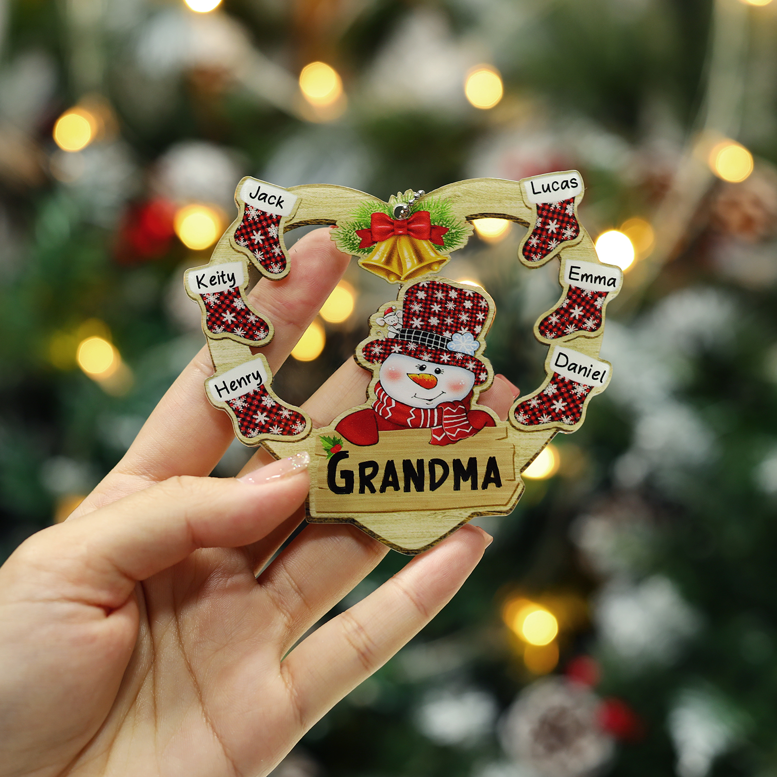 6 Names-Personalised Family Acrylic Heart Christmas Xmas Tree Decoration Ornament-Custom 6 Names And Text Hanging Ornament Gifts For Family