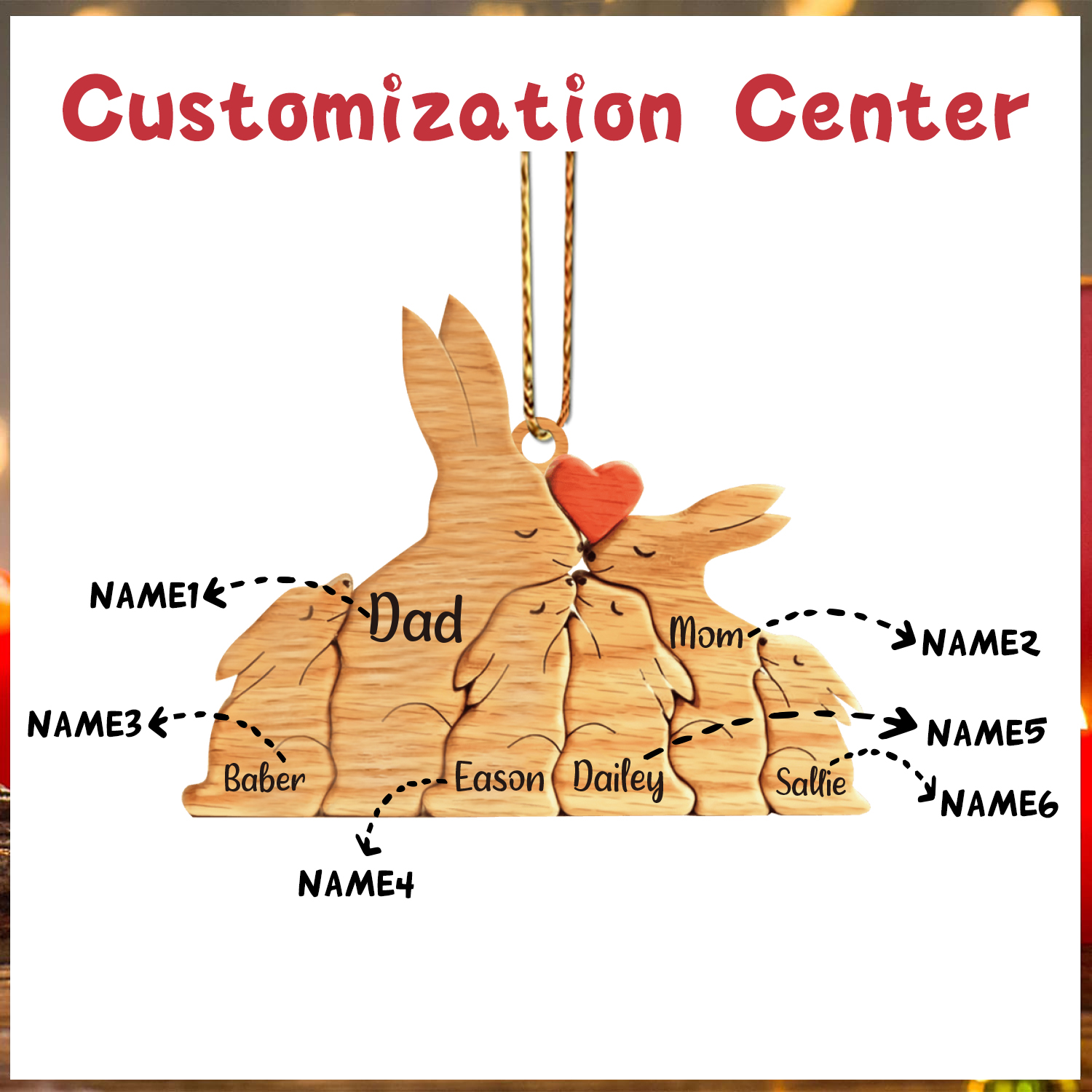 6 Names-Personalised Family Wooden Puzzle Ornament-Custom 6 Names Rabbit Hug Ornament Gifts For Family-Special Home Decoration