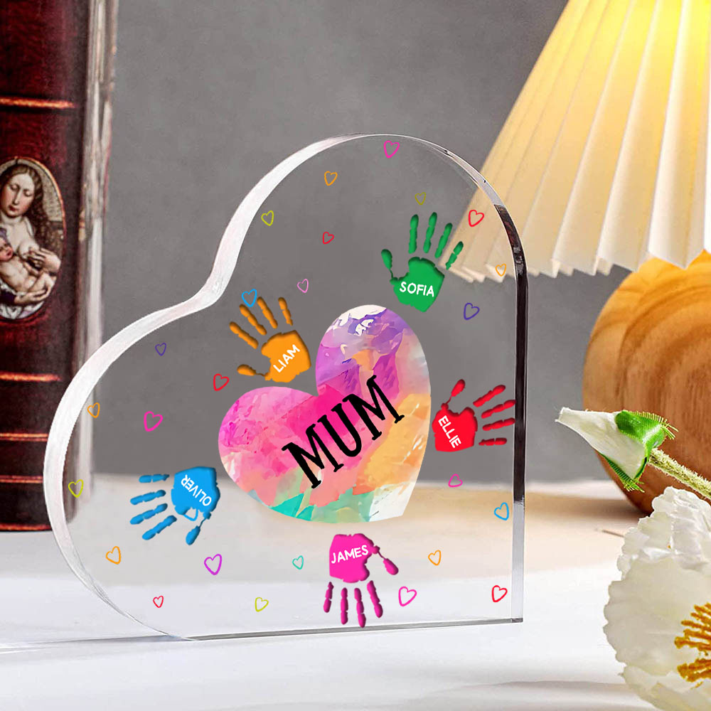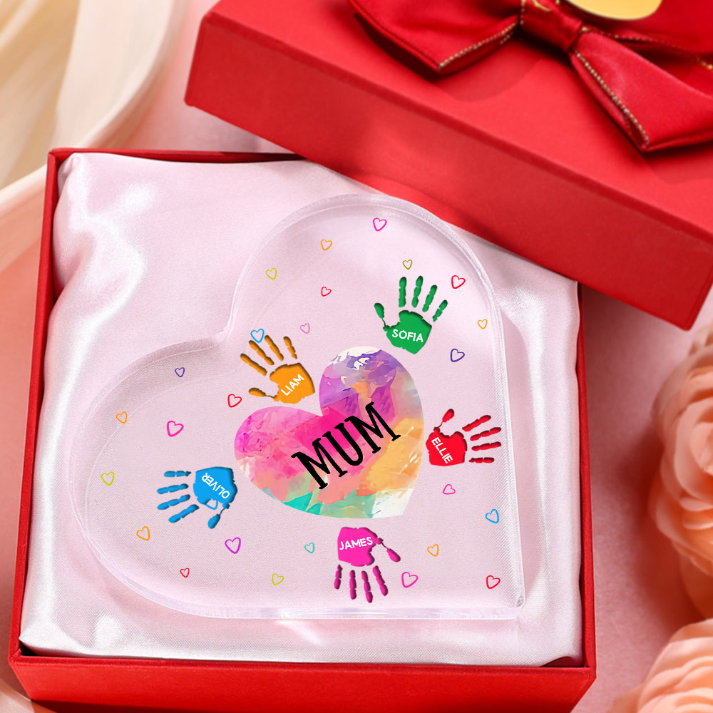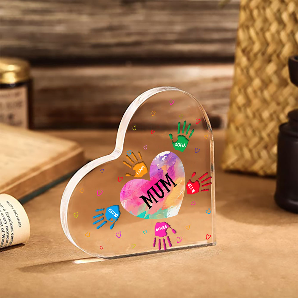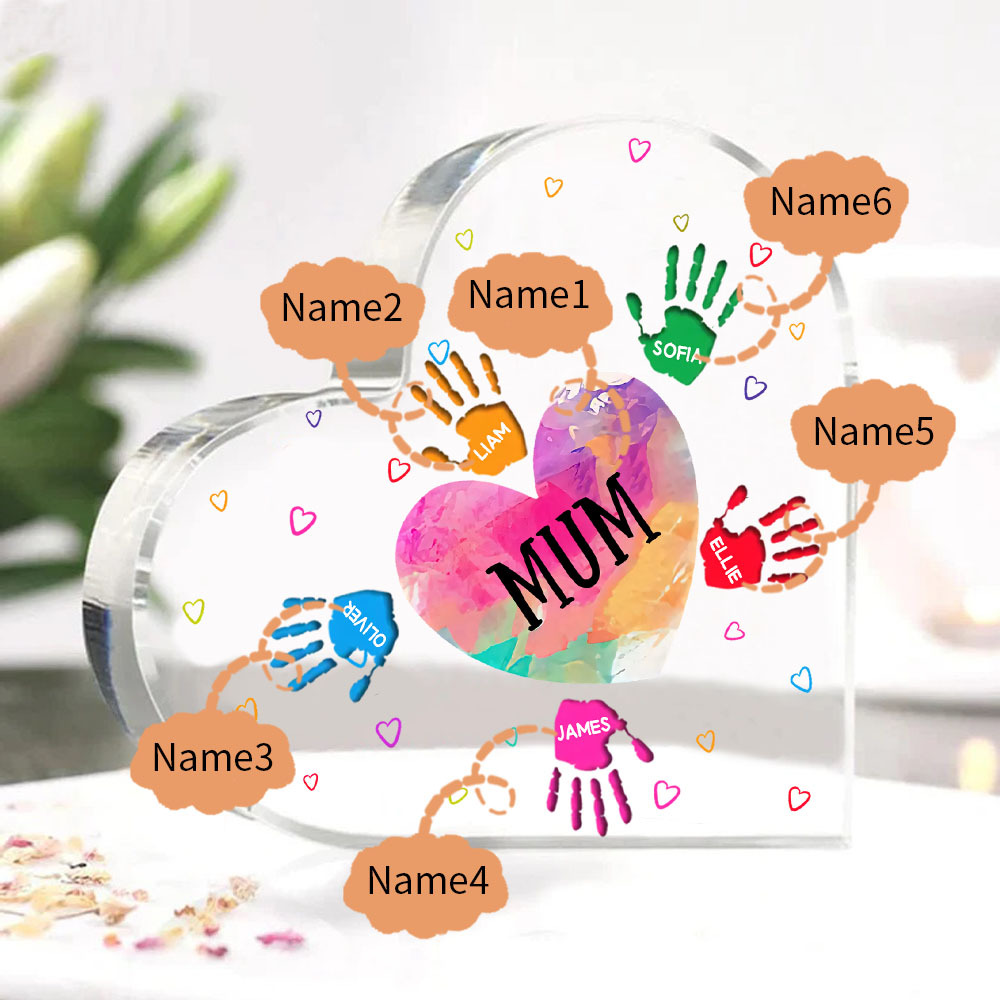 6 Names-Personalised Mum Acrylic Heart Keepsake Palm Ornaments Gifts Set With Gift Box for Grandma/Mother