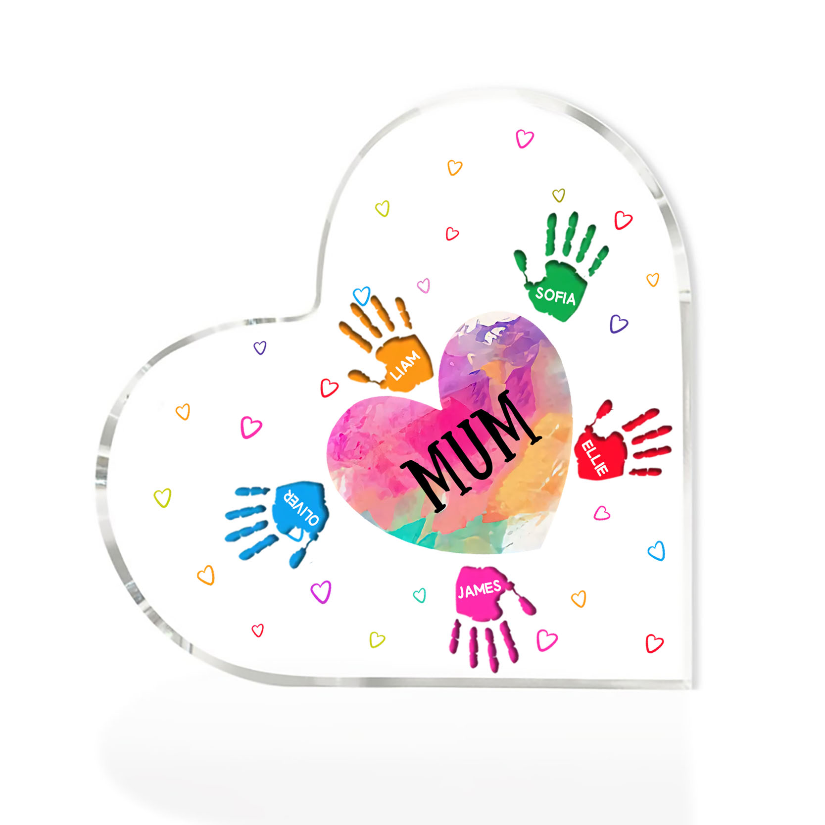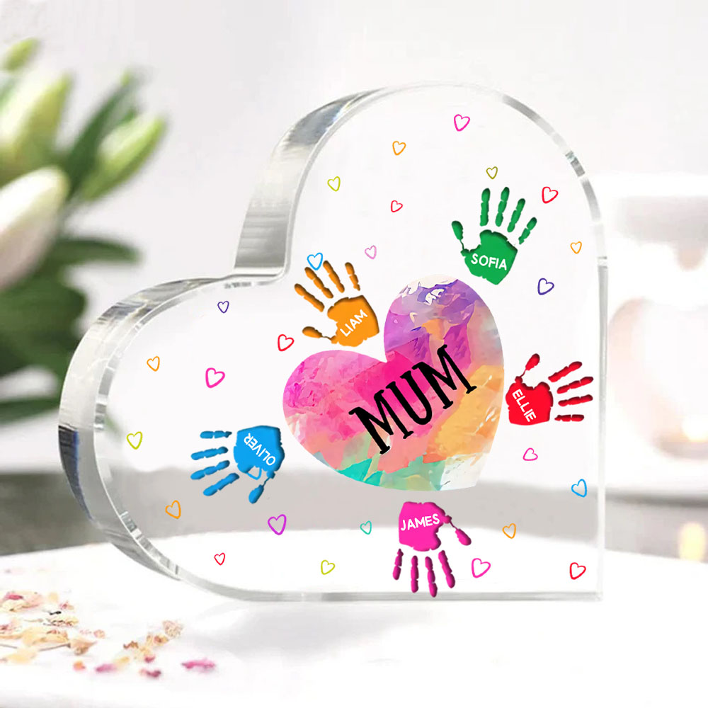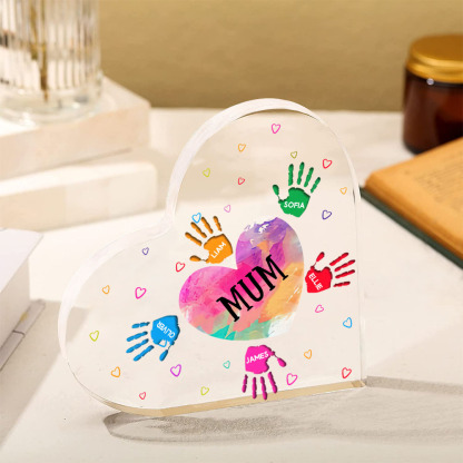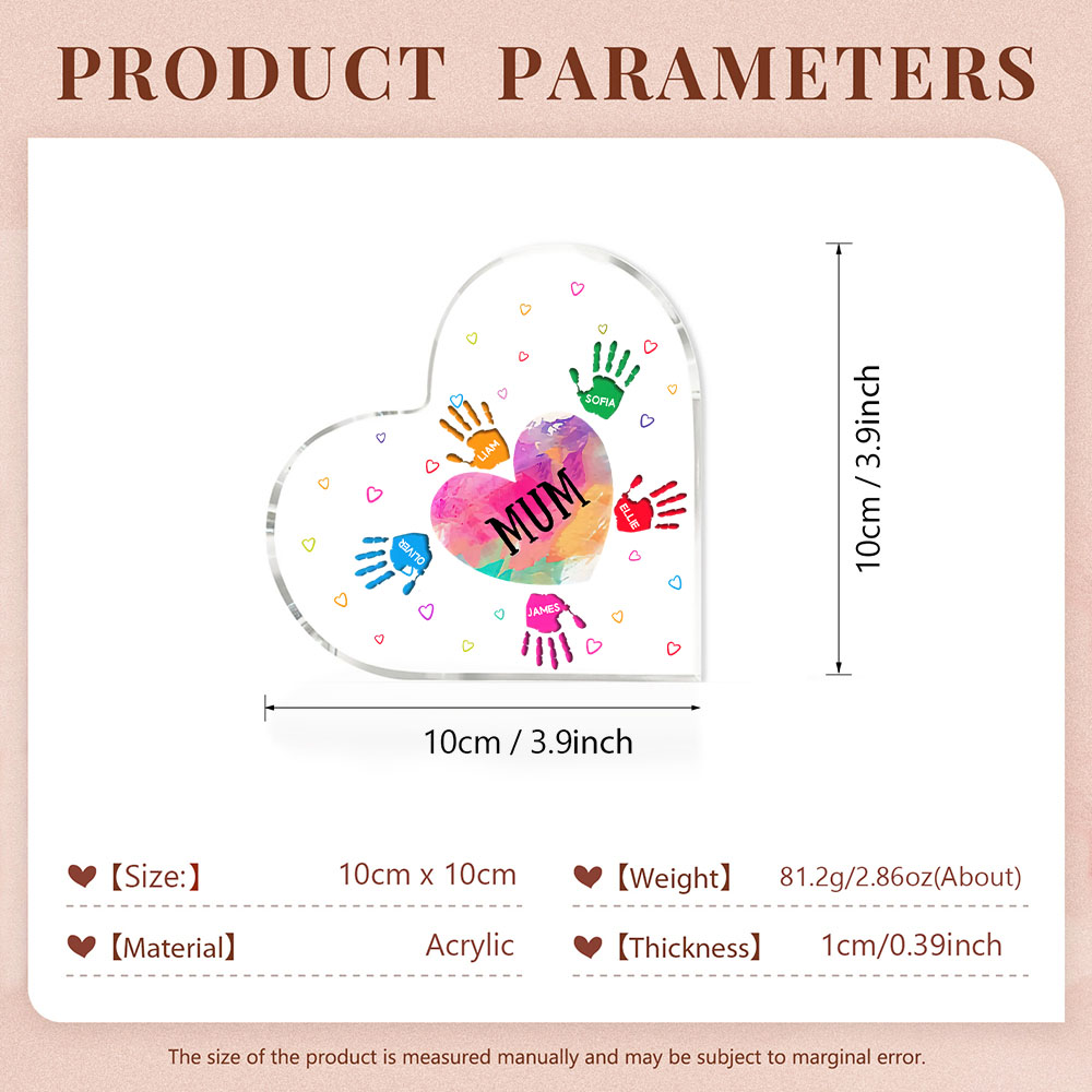 6 Names-Personalised Mum Acrylic Heart Keepsake Palm Ornaments Gifts Set With Gift Box for Grandma/Mother
