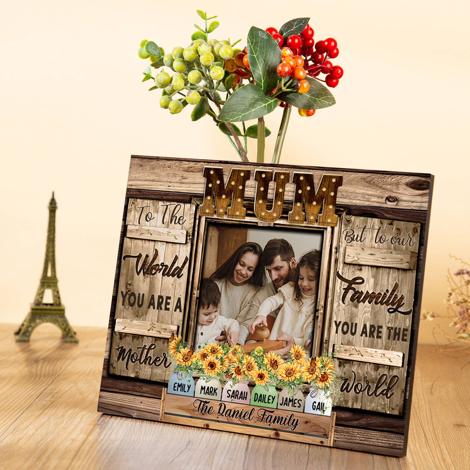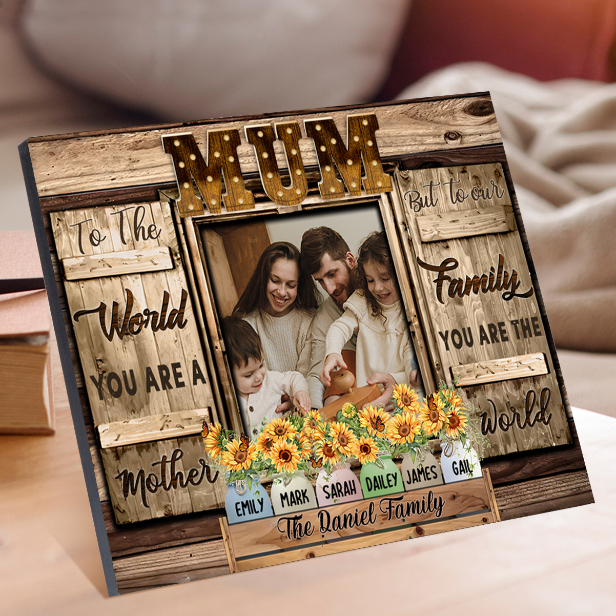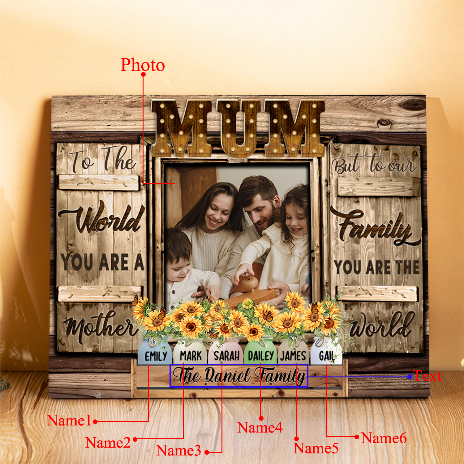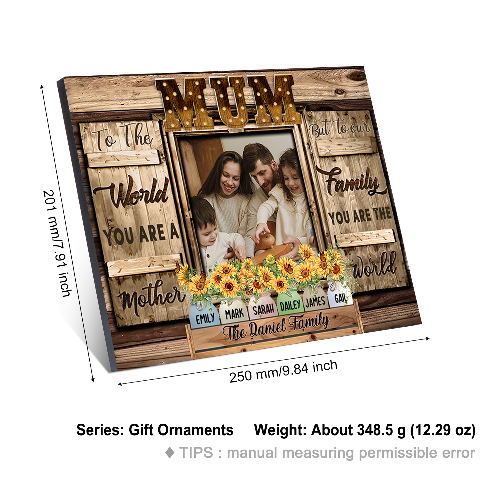 6 Names-Personalised Mum Family Frame Wooden Ornament Plaque Home Decoration for Mother