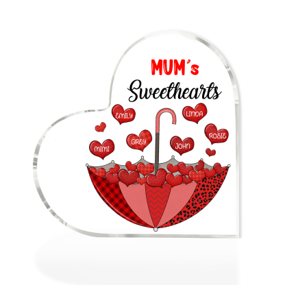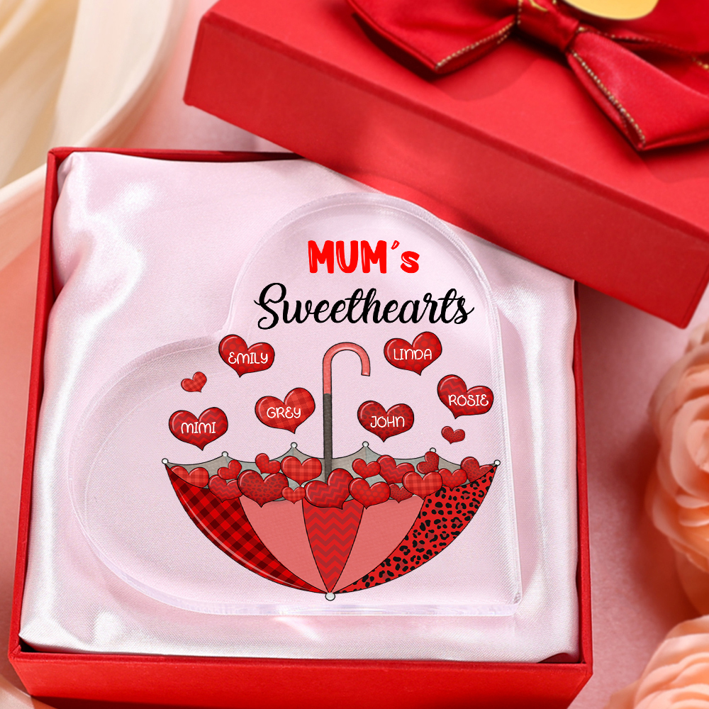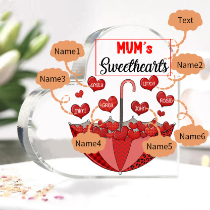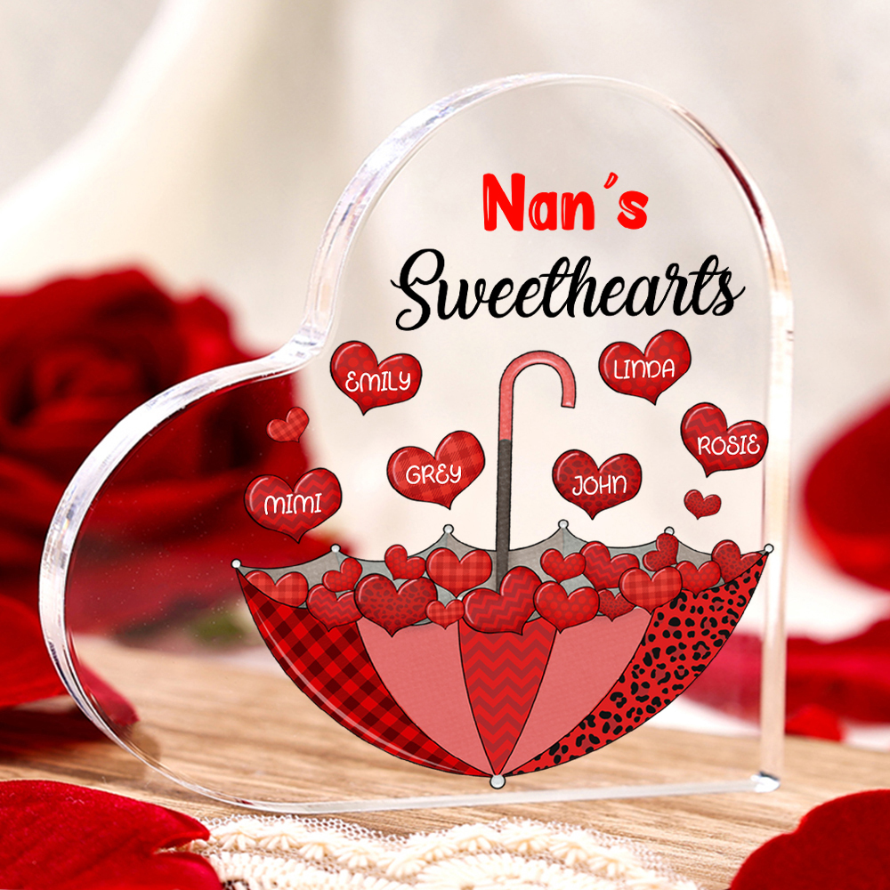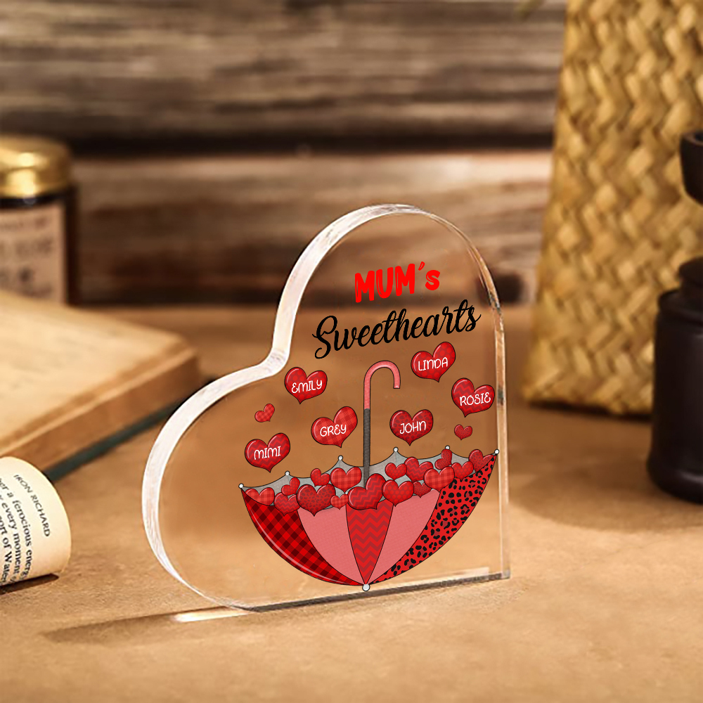 6 Names-Personalised Mum Heart Umbrella Acrylic Heart Keepsake Custom Text Acrylic Plaque Ornaments Gifts Set With Gift Box for Nan/Mother