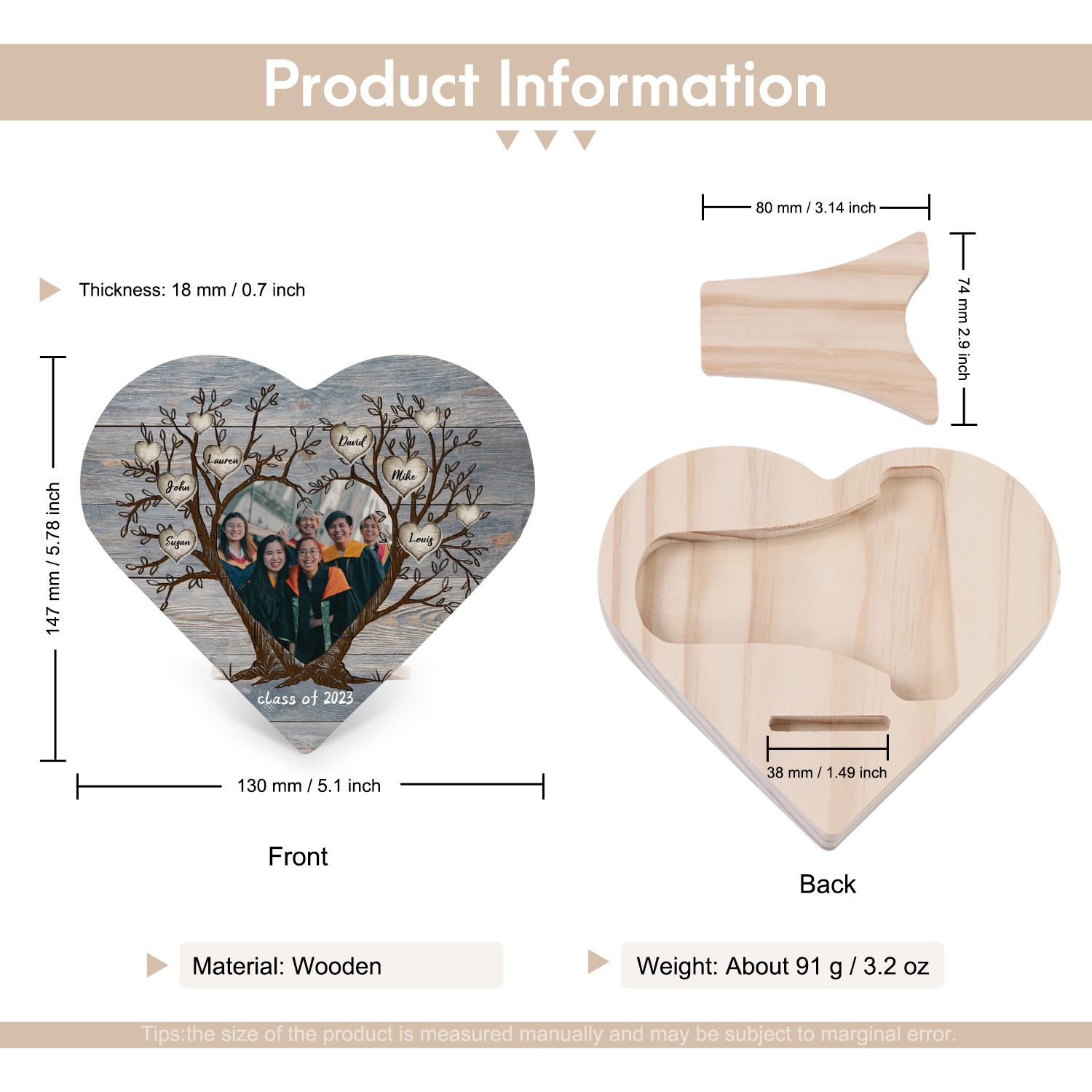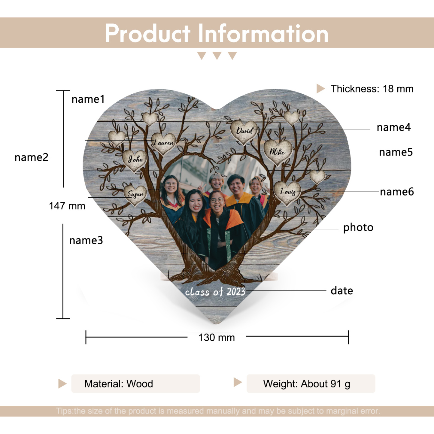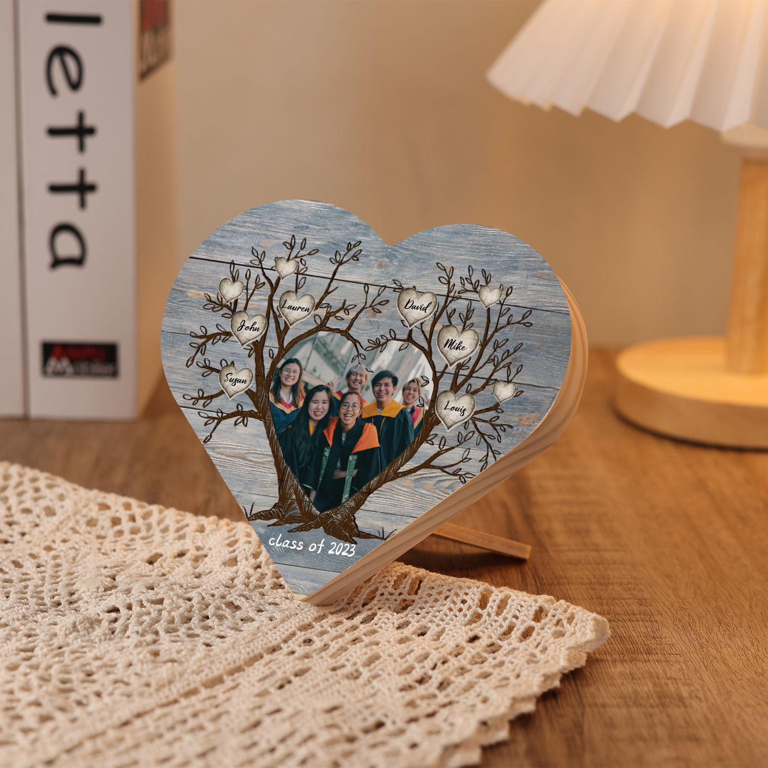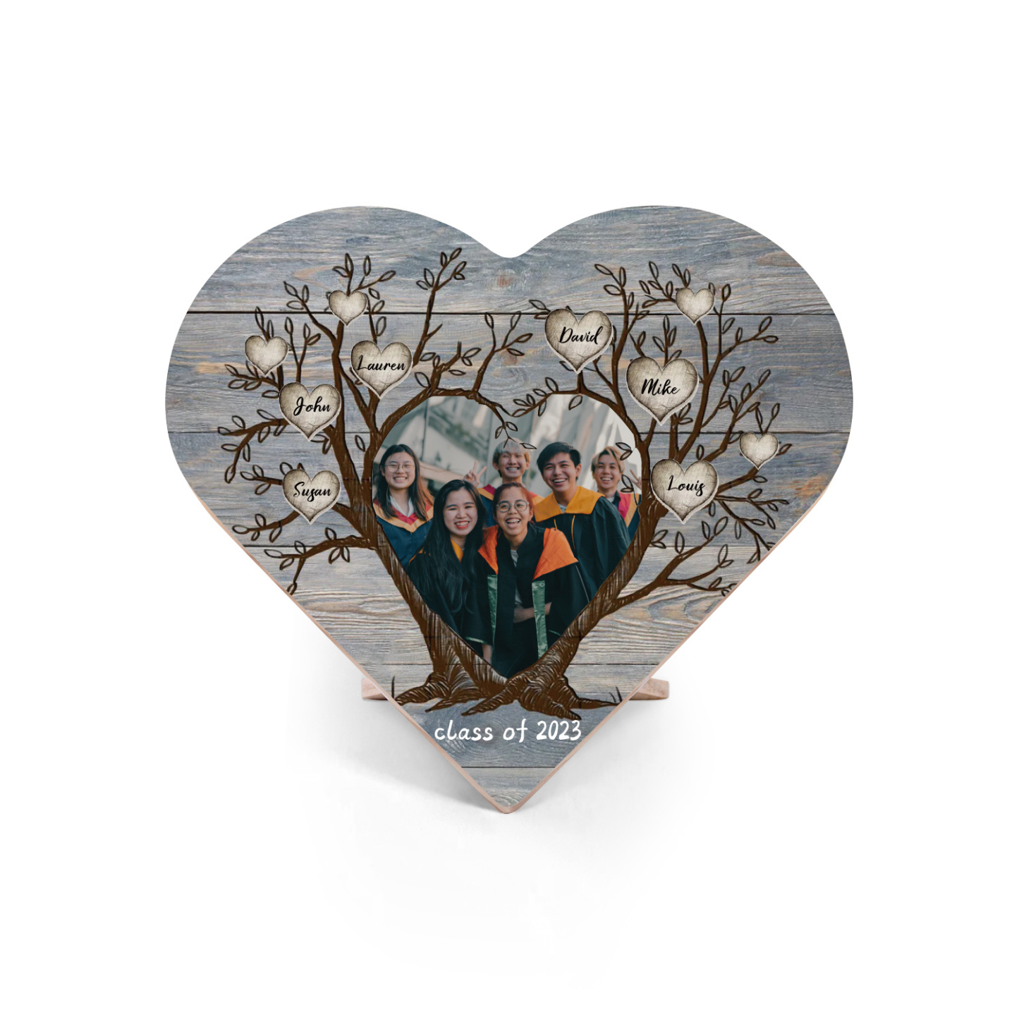 6 Names-Personalised Tree Heart Wooden Ornament Gift-Customized Gift Ornament Desktop Decoration Picture Frame For Friends Or Family