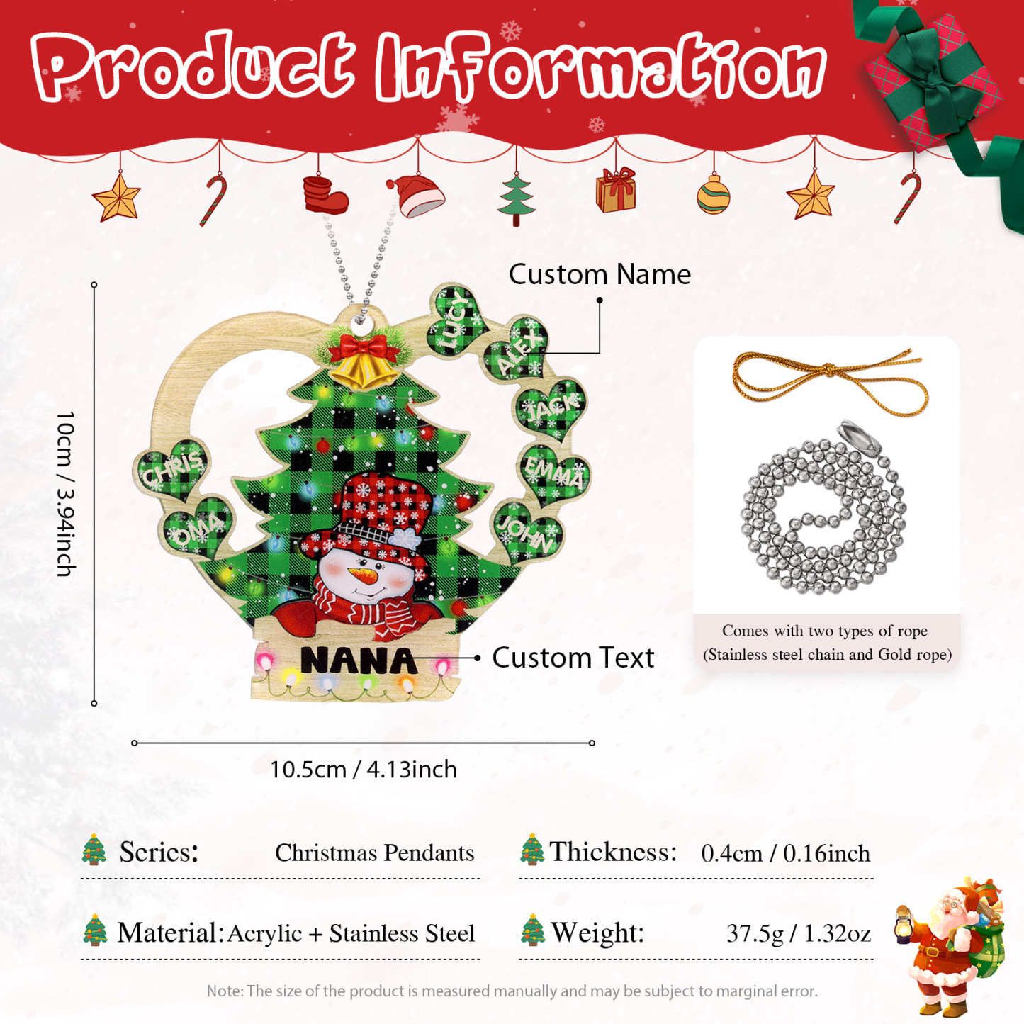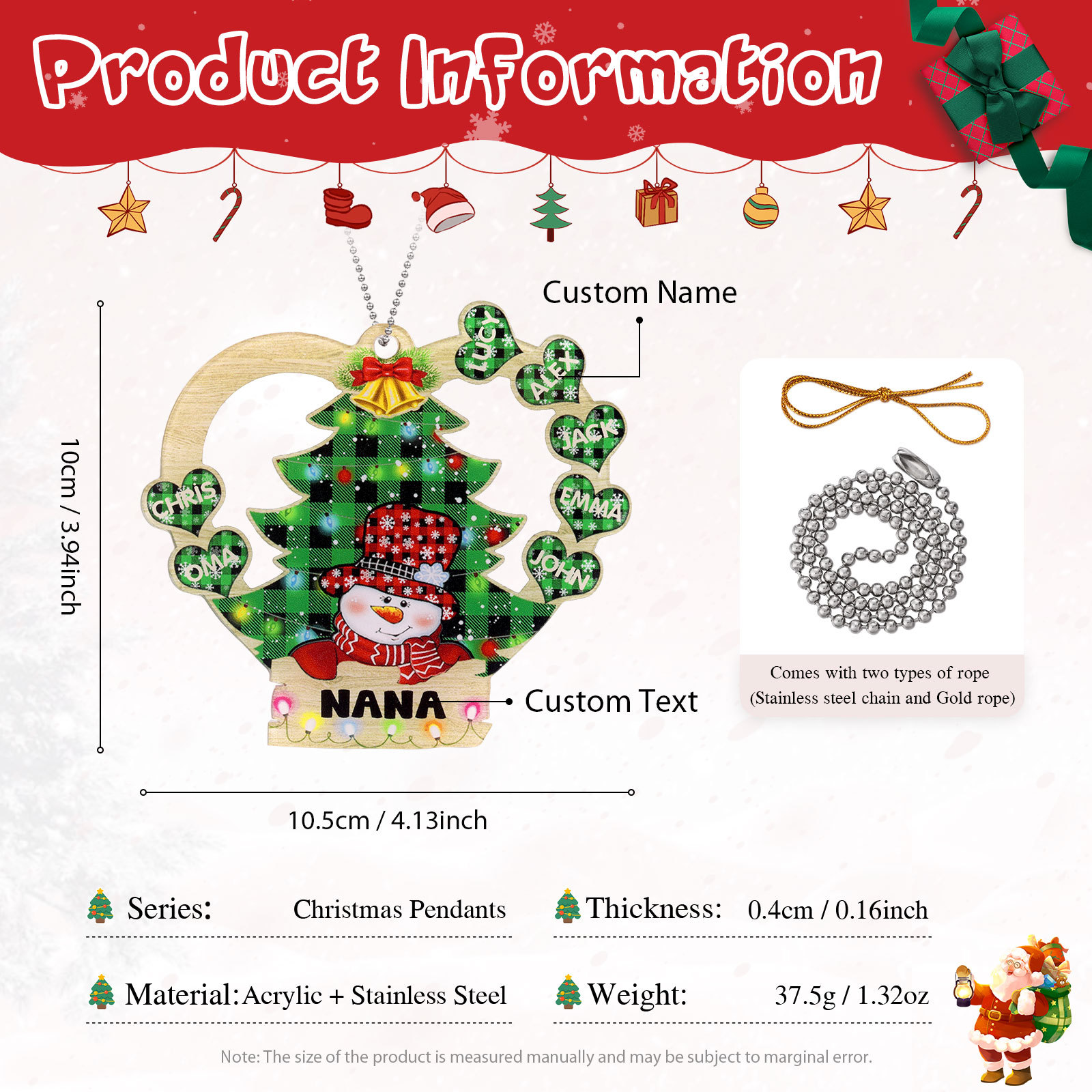 🎁Made of acrylic material, 2-8 names can be customized, The names of each family member are written on the hearts, and the personalized text can be written under the Christmas Tree. This is a great Christmas gift for the family.