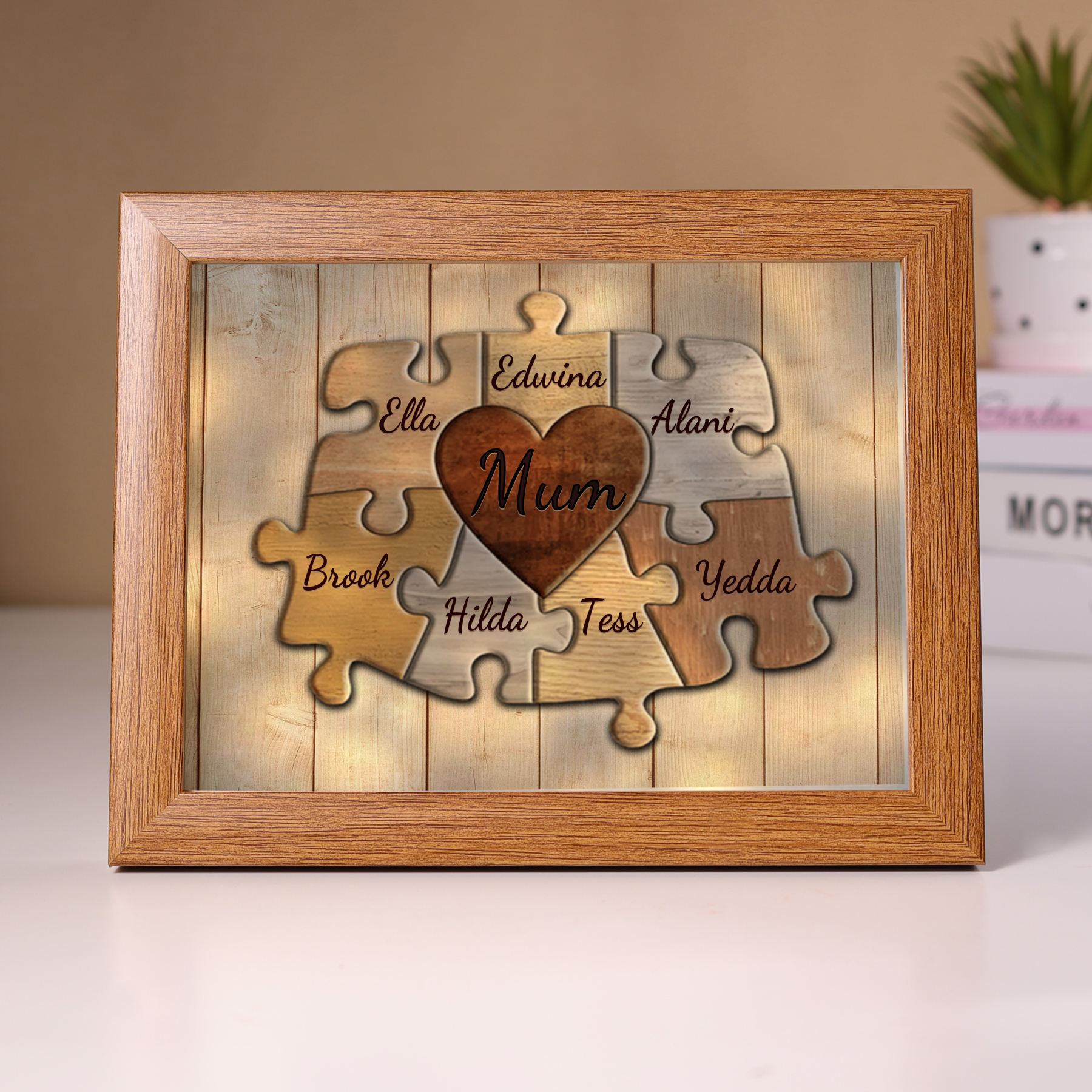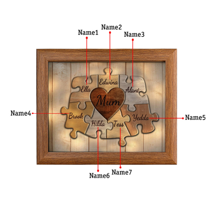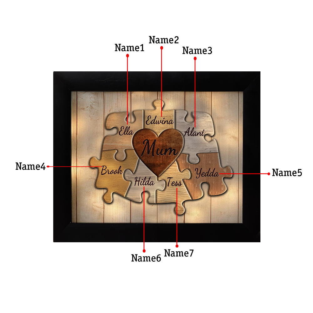 7 Names-Personalised Mum Family Puzzle Frame With 7 Names LED Night Light