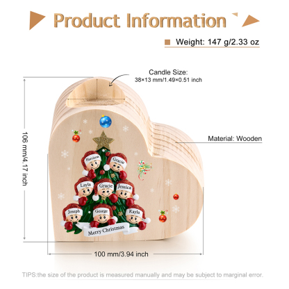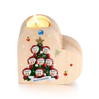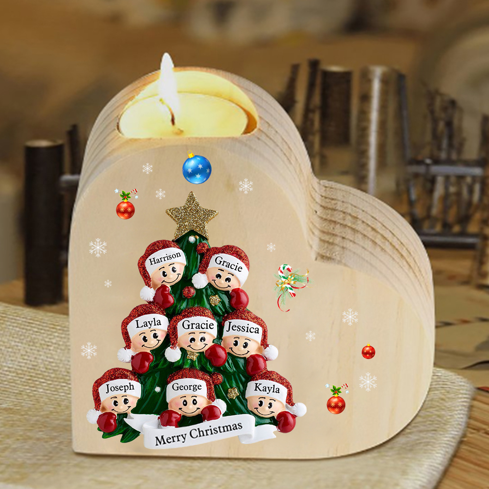 8 Names-Custom Christmas Tree Wooden Candlestick-Personalised Names Heart Candle Holder Christmas Gift for Family