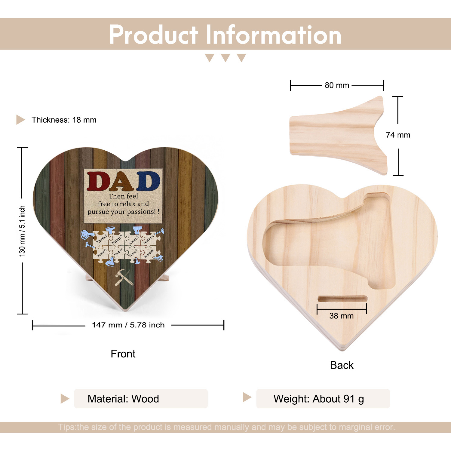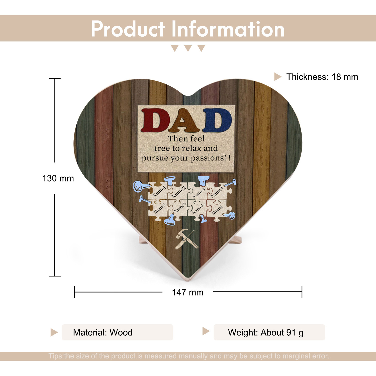 8 Names-Personalised Family Heart Wooden Ornament Gift-Customized Gift Ornament Desktop Decoration Picture Frame For Dad