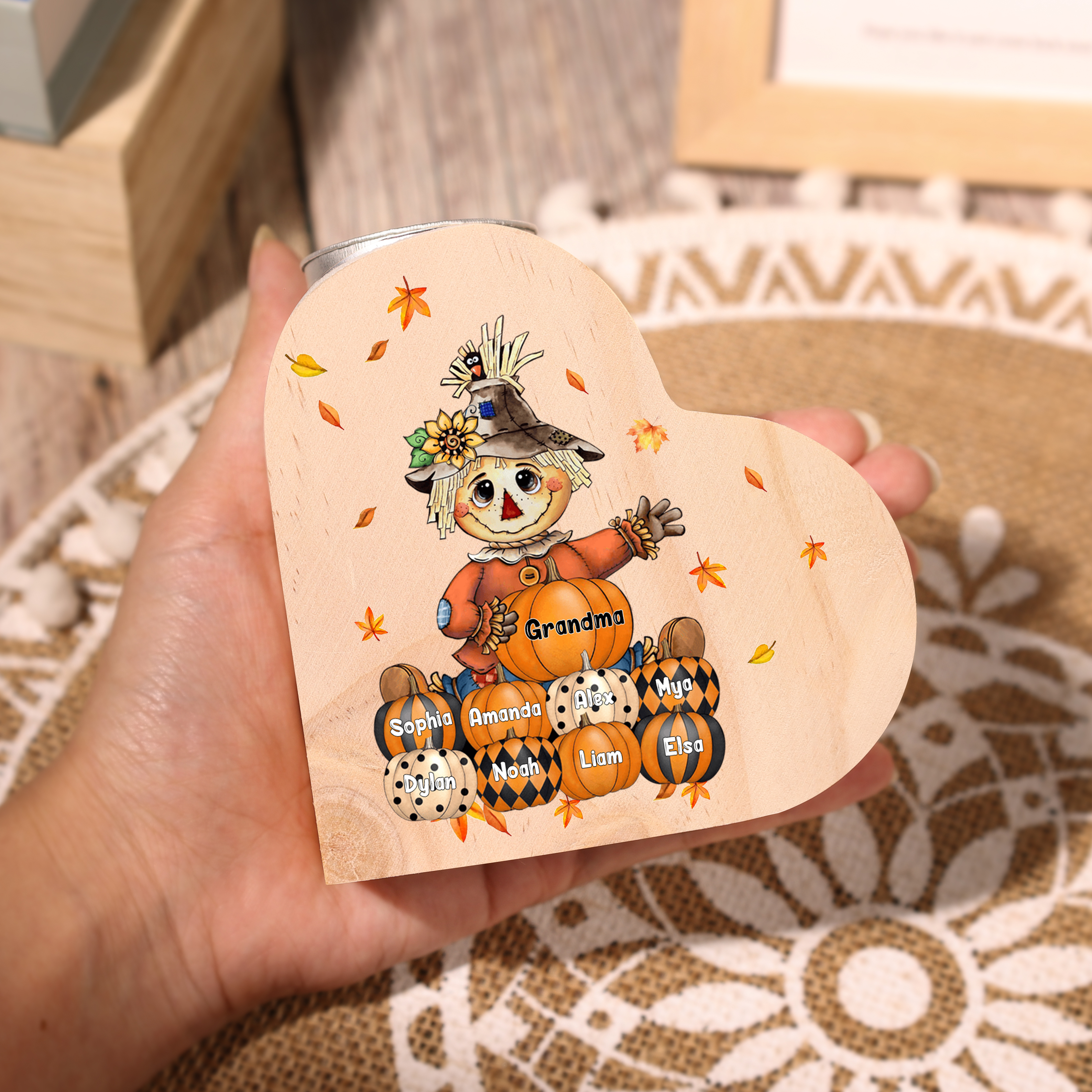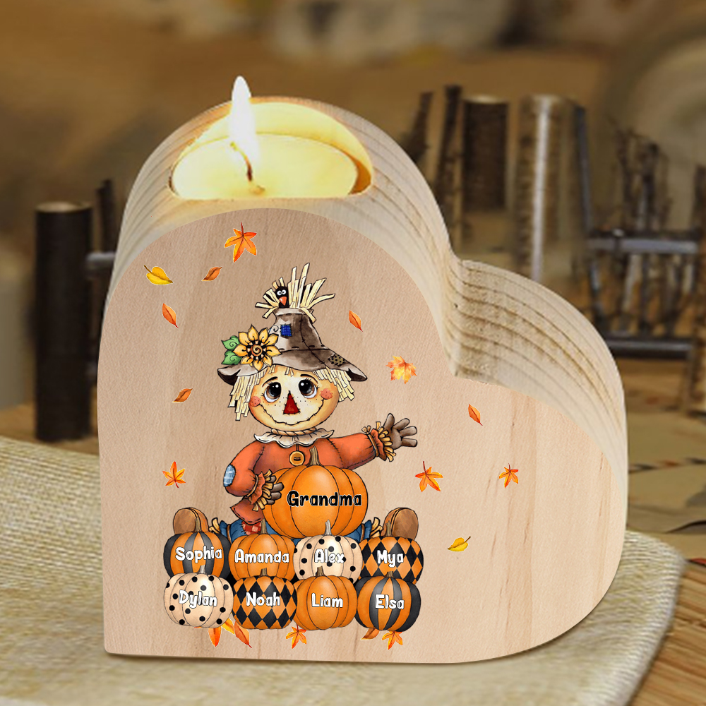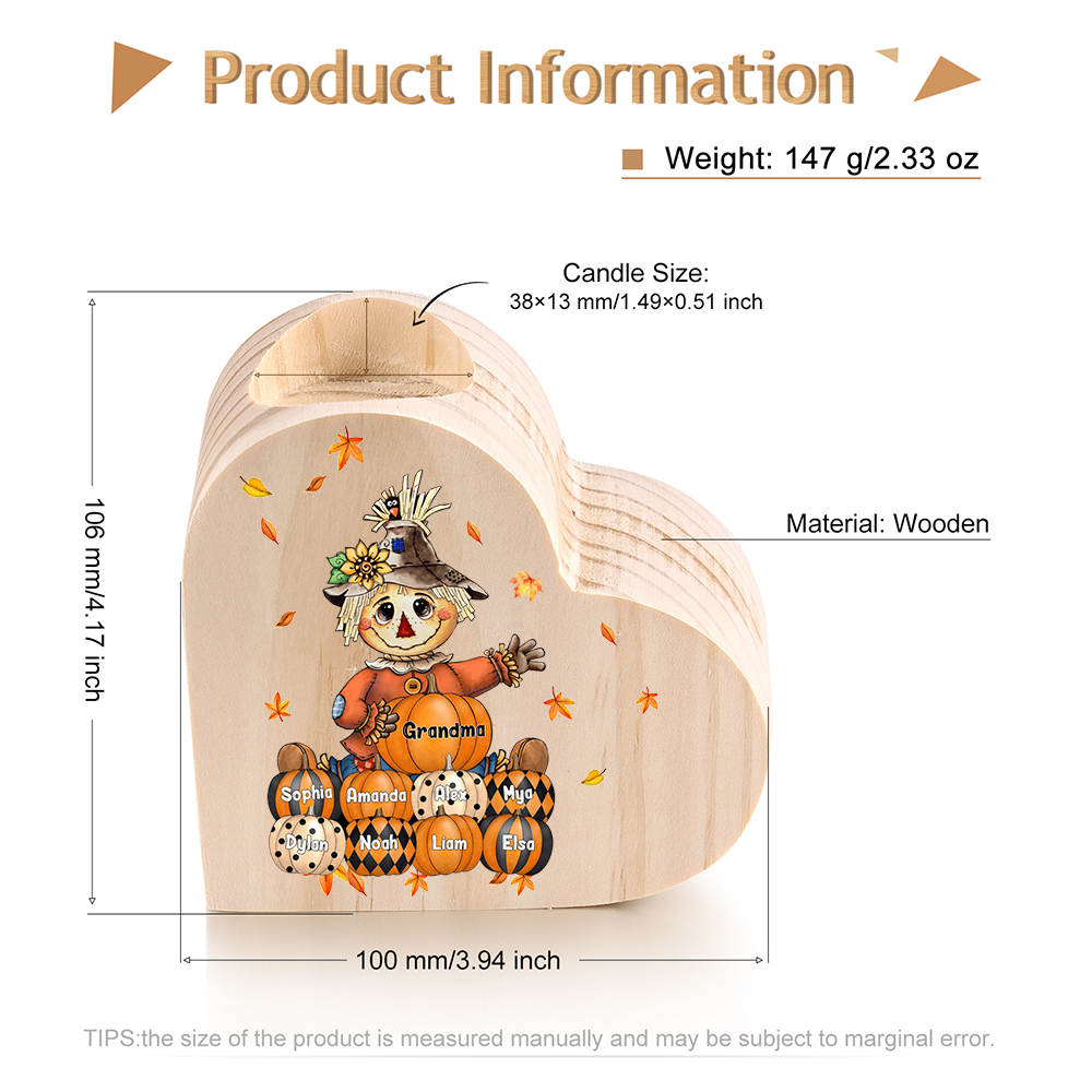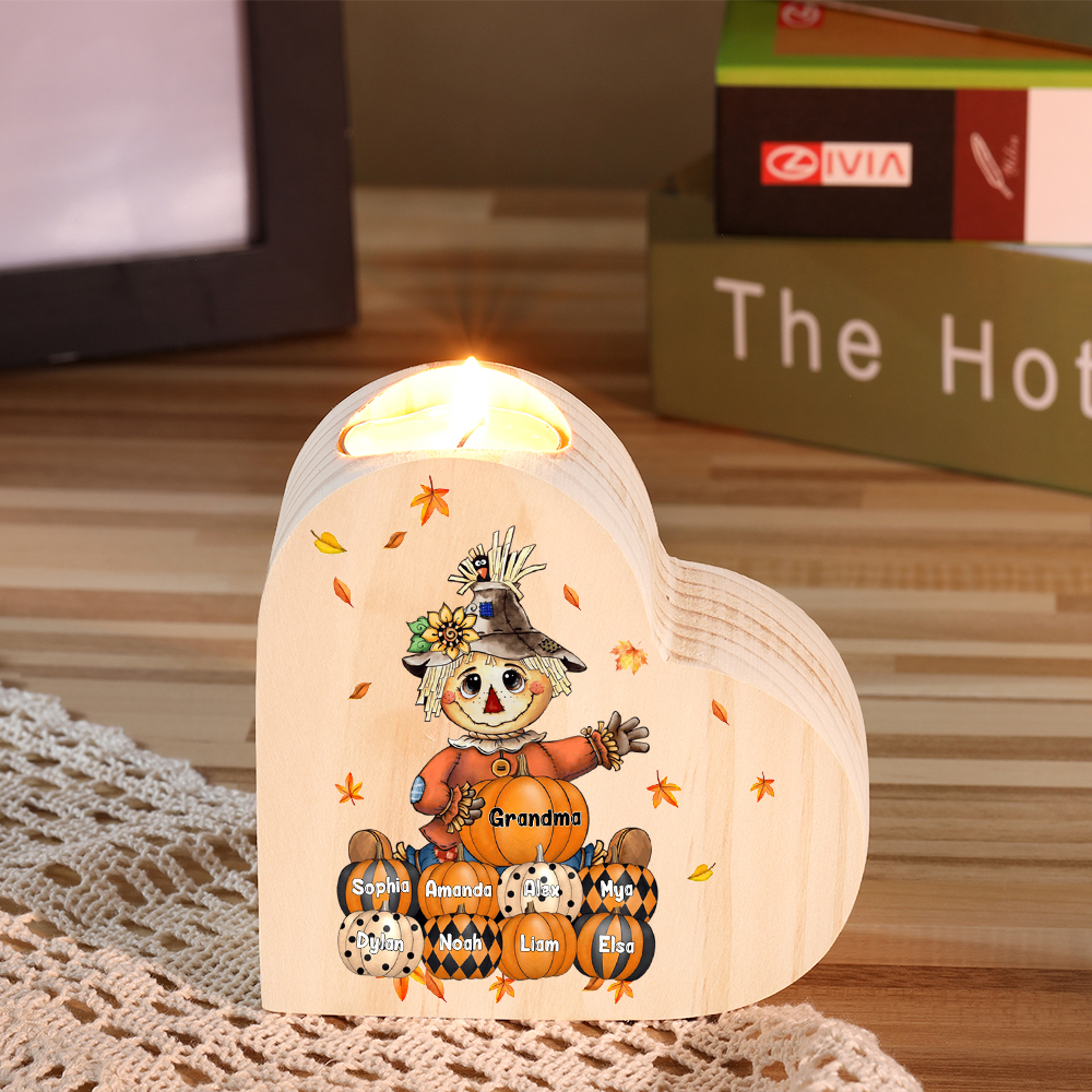 9 Names-Custom Halloween Wooden Candlestick-Personalised Names Pumpkin Heart Candle Holder Halloween Gift for Family