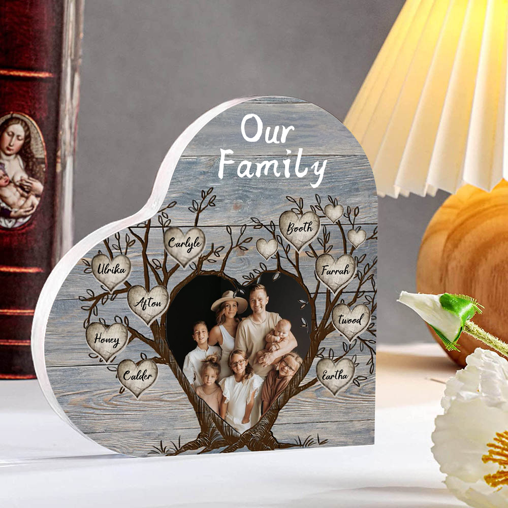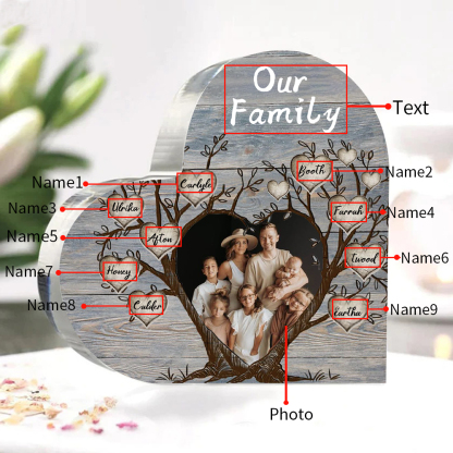 9 Names-Personalised Family Tree Acrylic Ornament-Custom Acrylic Family Heart Keepsake Desktop Ornament for family-Mum/Nan/Nana/Grandma