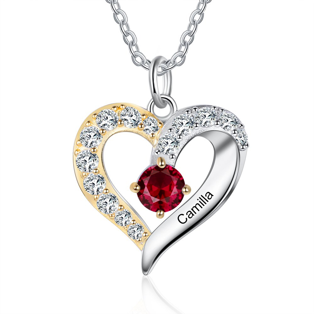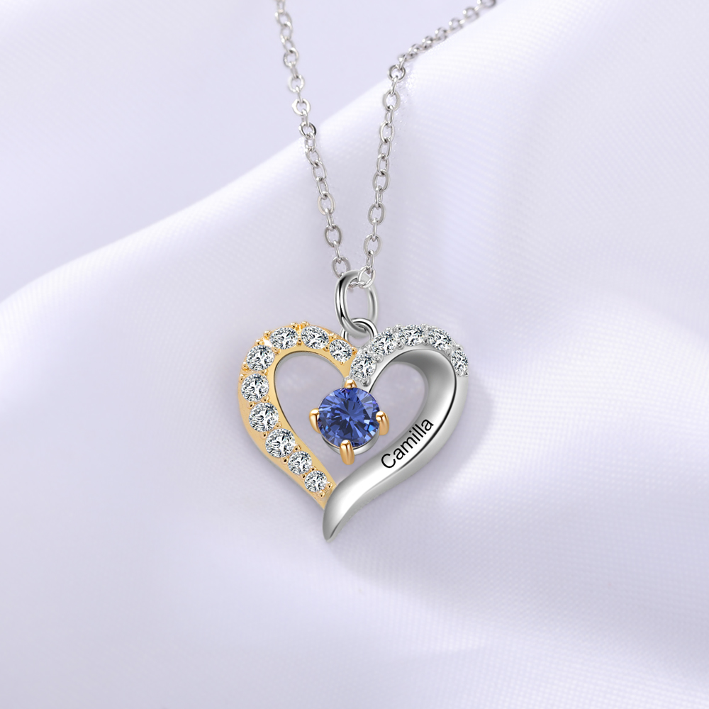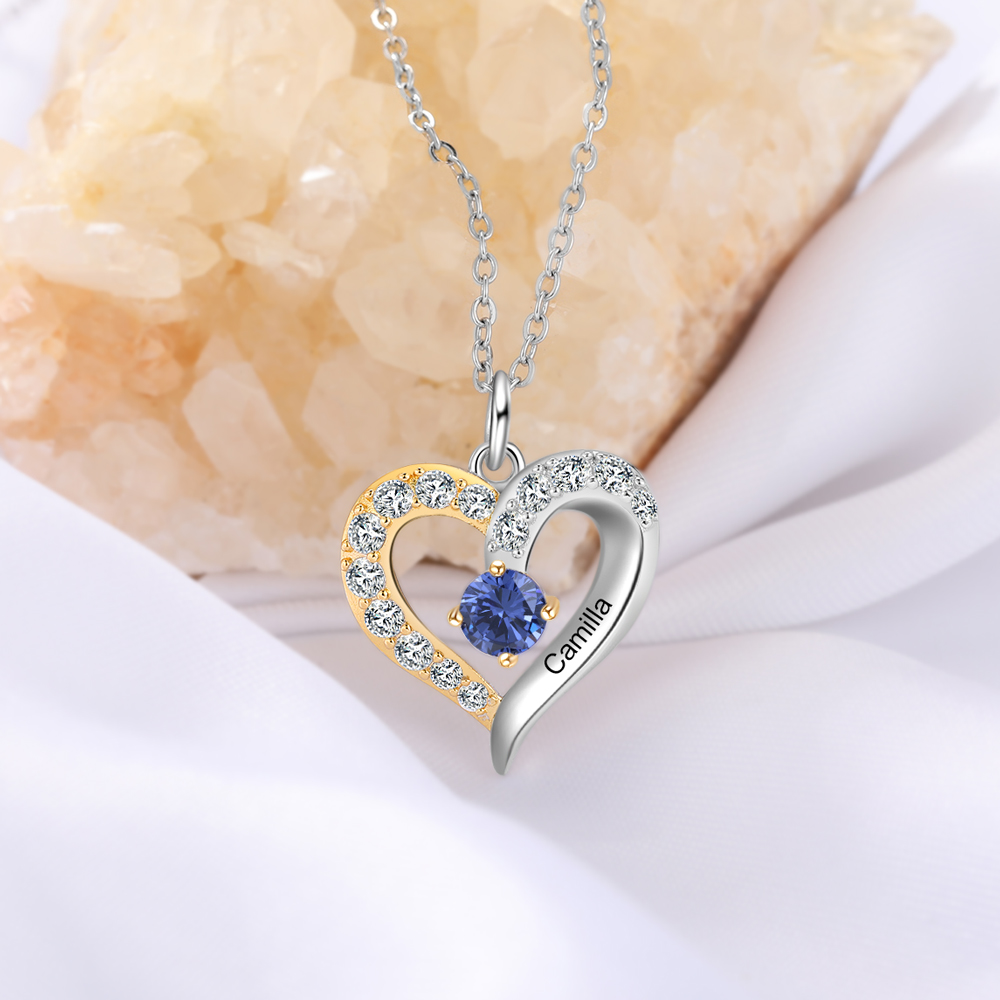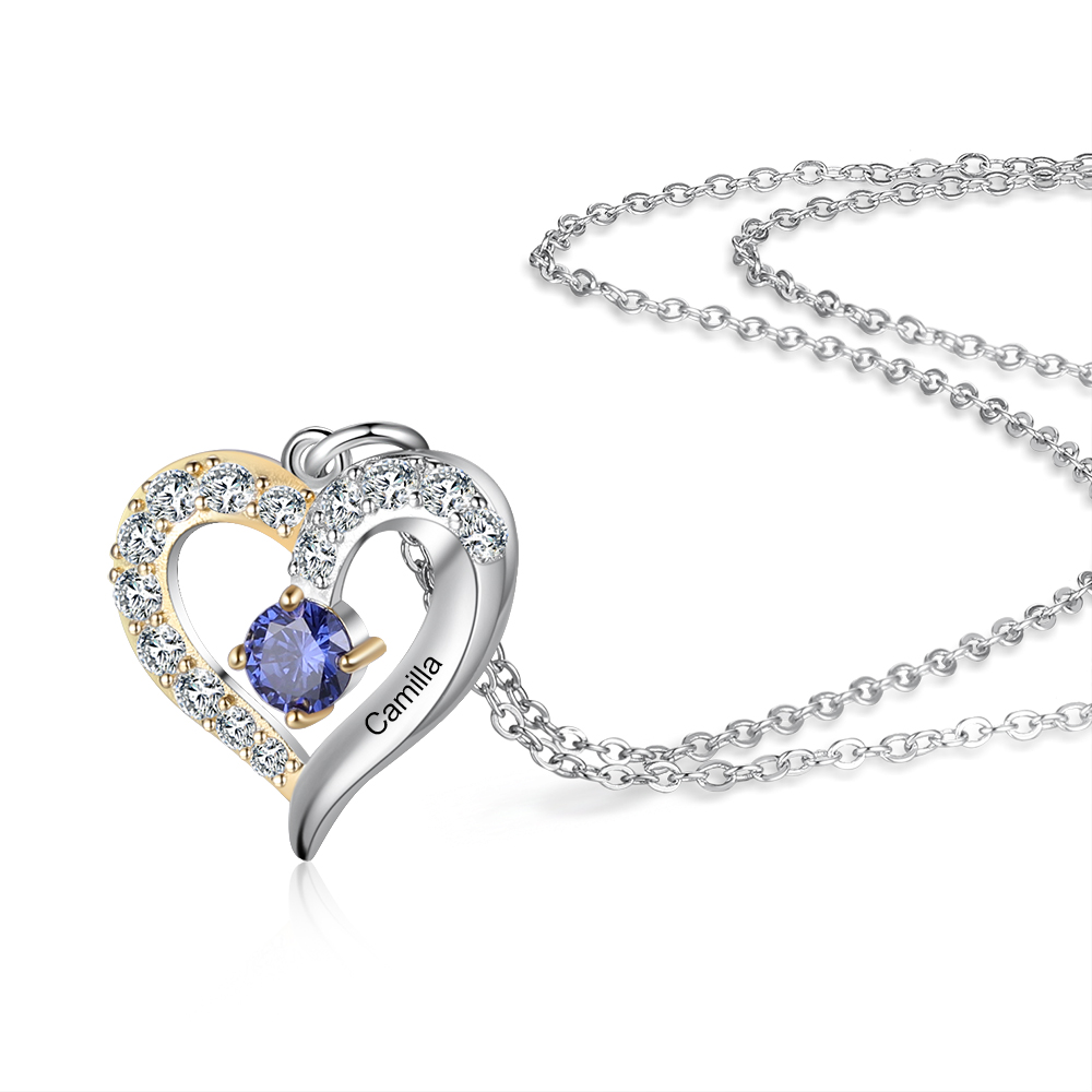 Personalized S925 Heart Necklace With 1 Birthstone Engraved Names Gift For Women
