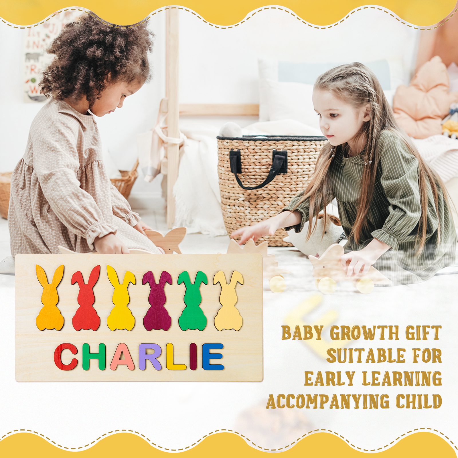 Jessemade Bunny Name Puzzles Personalised Easter Educational Toys for Toddlers Children Gifts