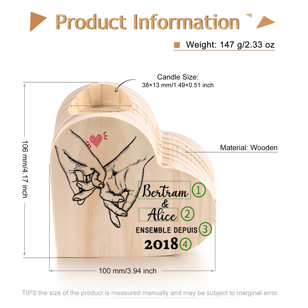 Couple Wooden Heart Candle Holder Pinky Heart Promise Candlesticks