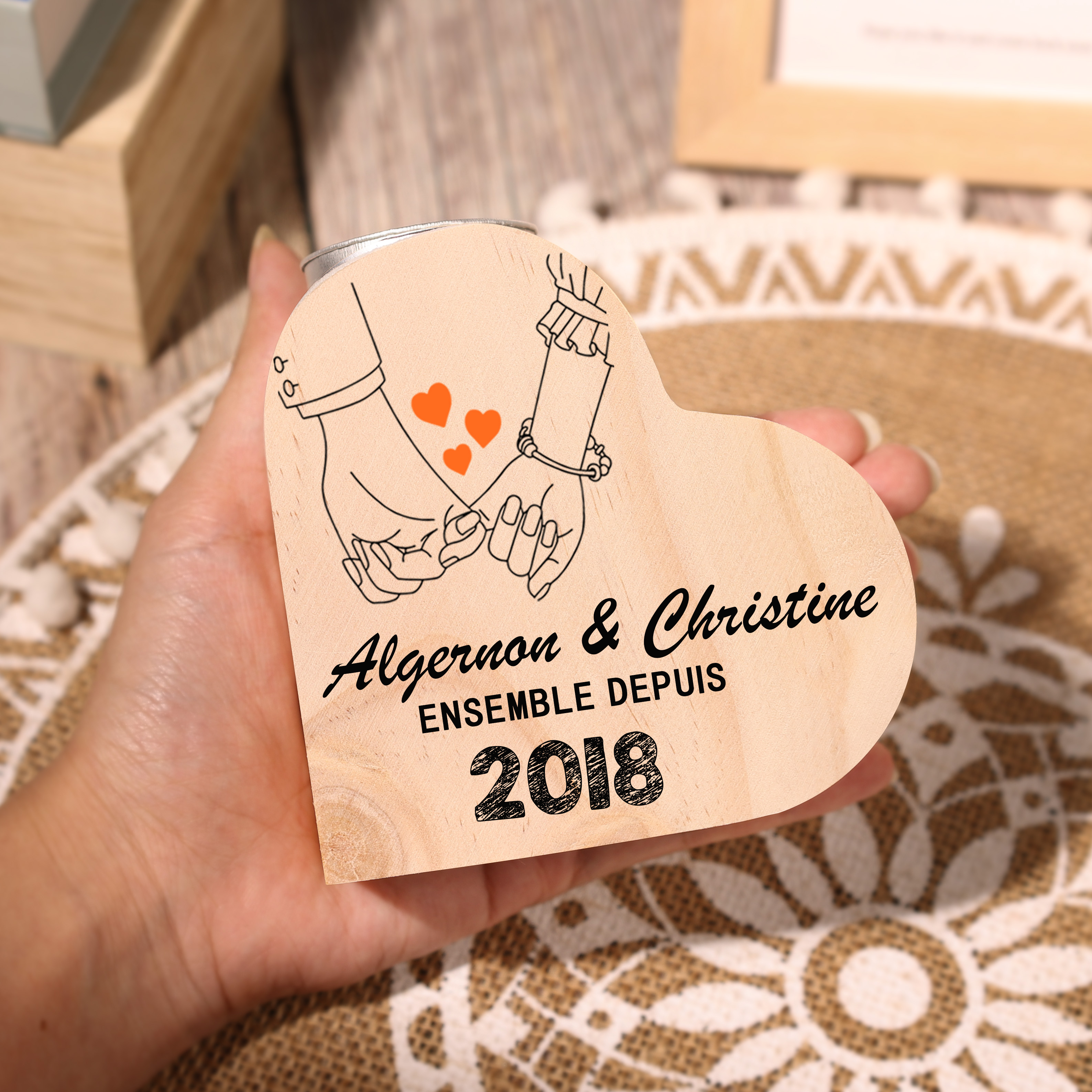 Couple Wooden Heart Candle Holder Pinky Heart Promise Candlesticks